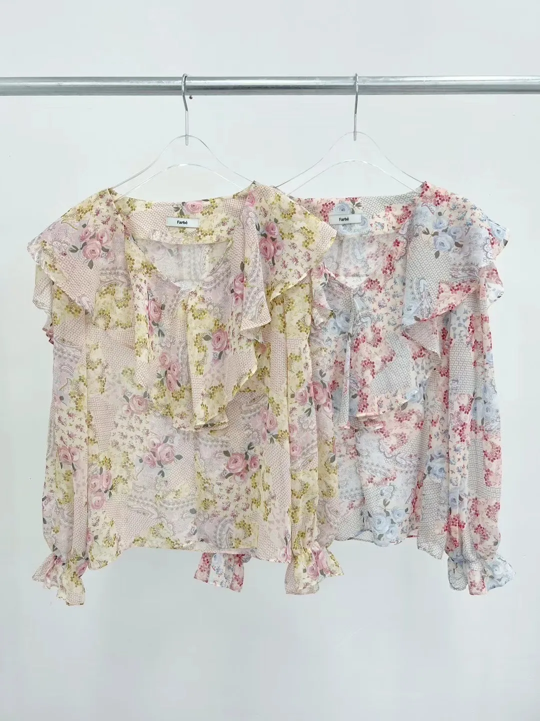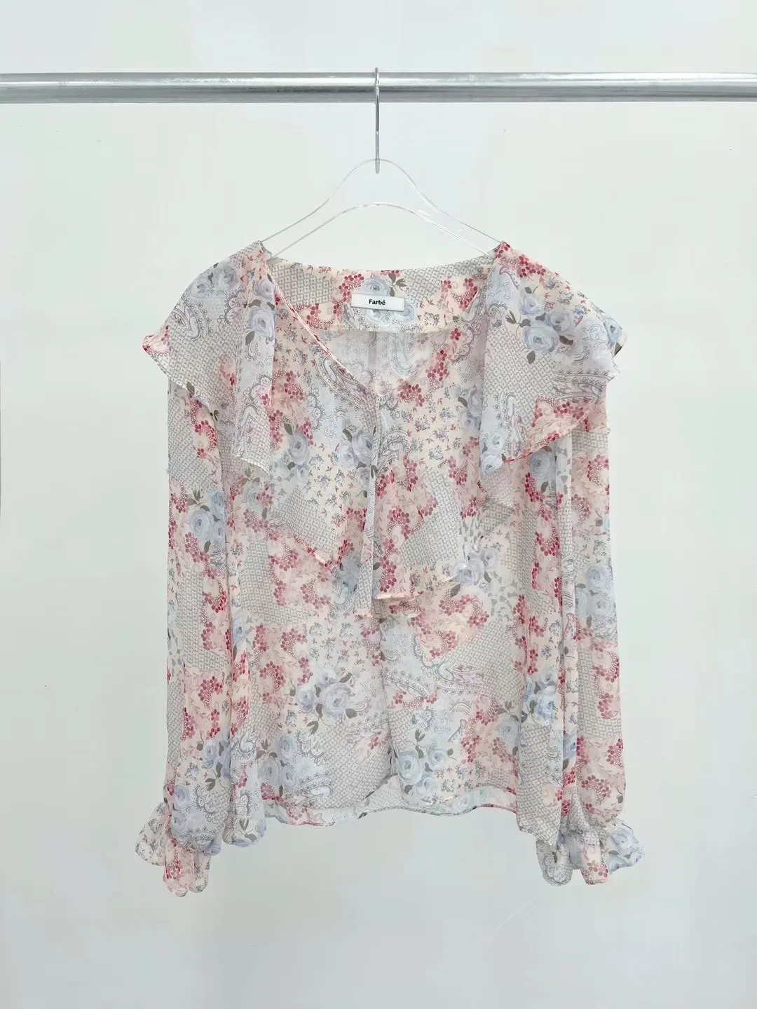 FA136雪紡荷葉浪漫飄逸碎花美衣 粉 藍 官網價$1190 線上價$1160