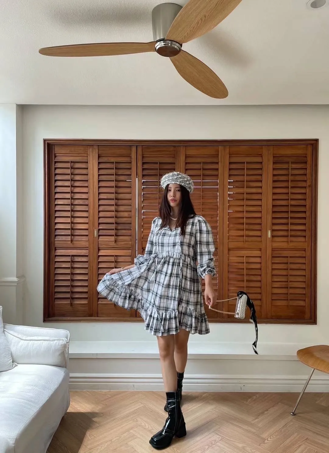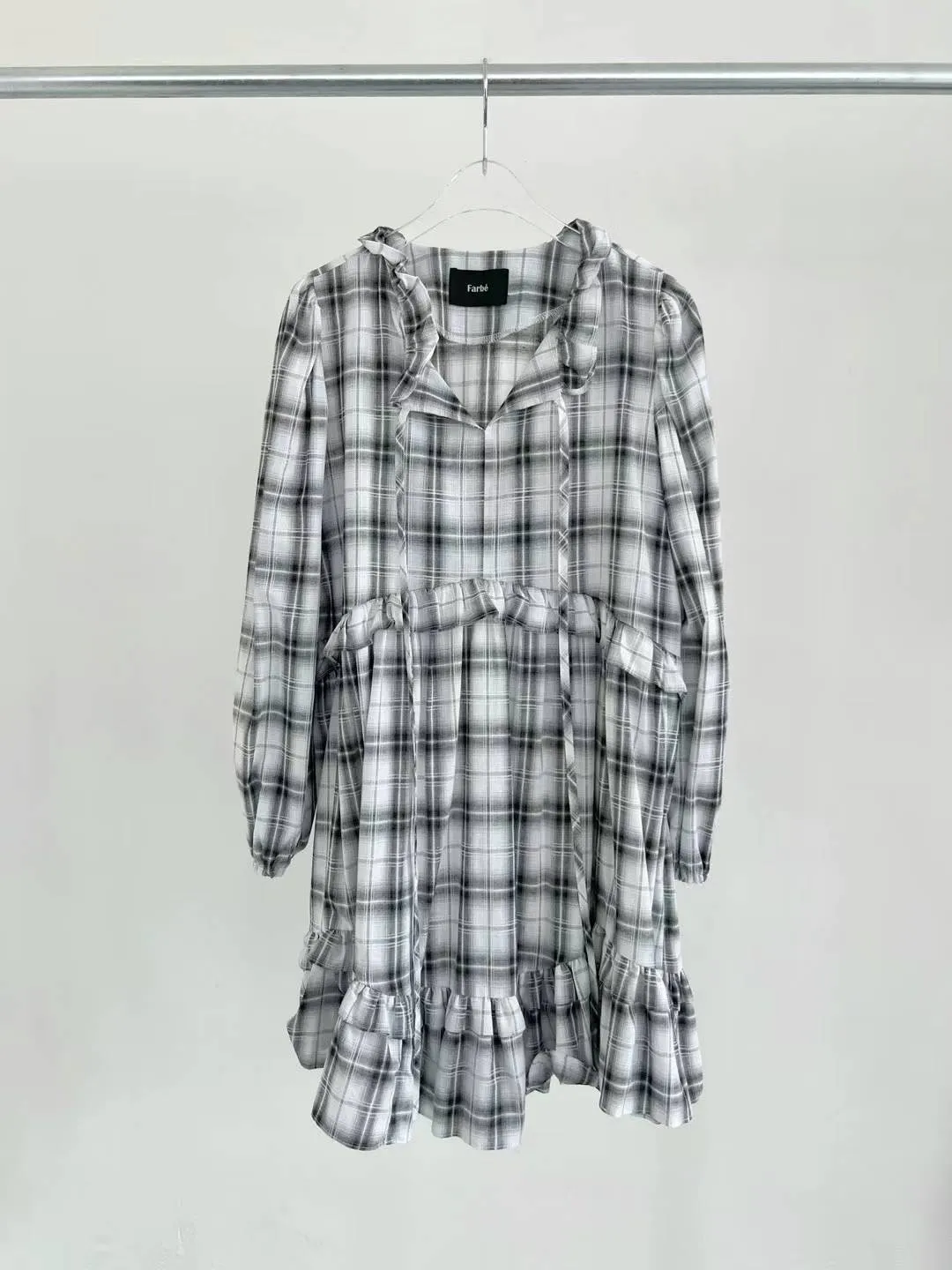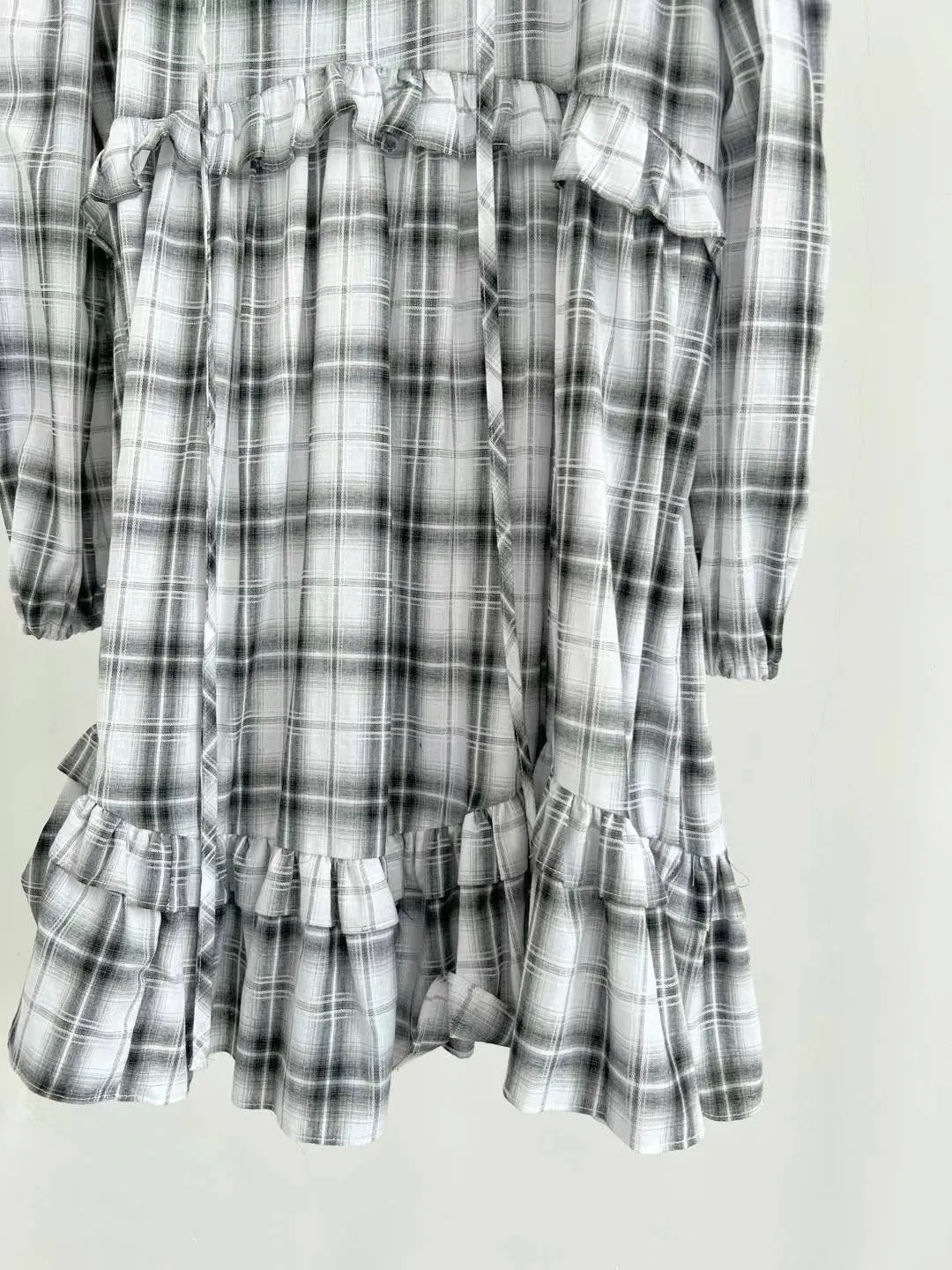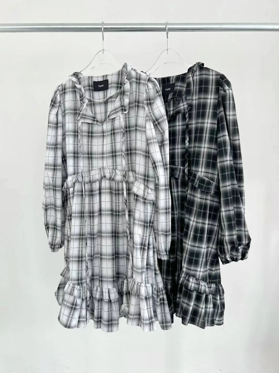 FA139薄款輕盈格紋洋裝 白 黑 官網價$1490 線上價$1460