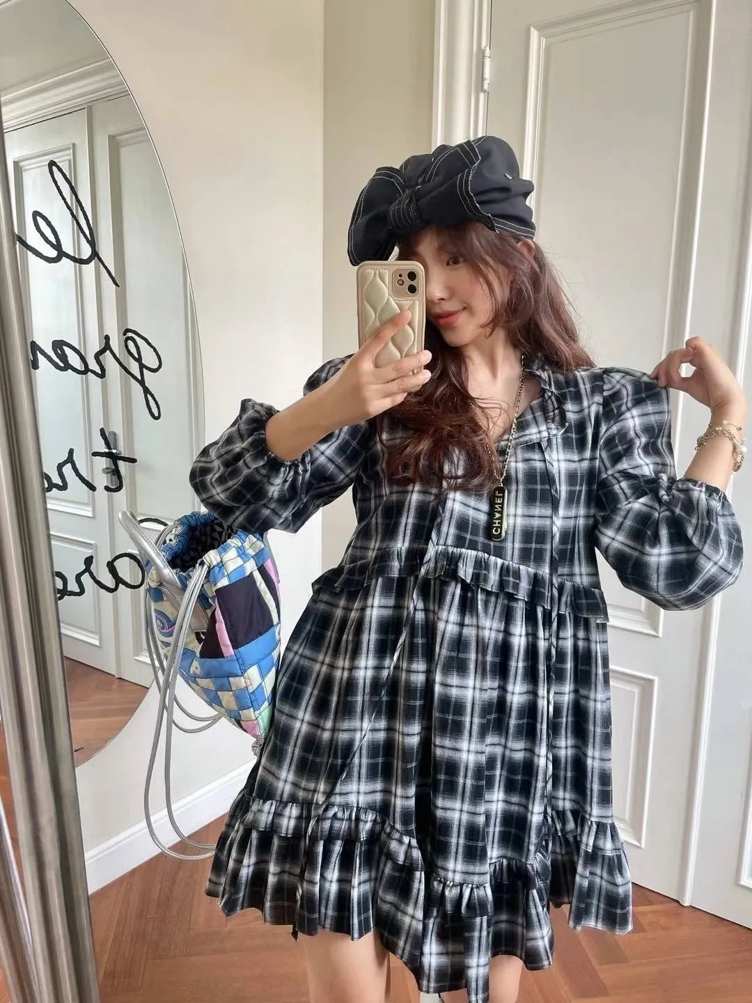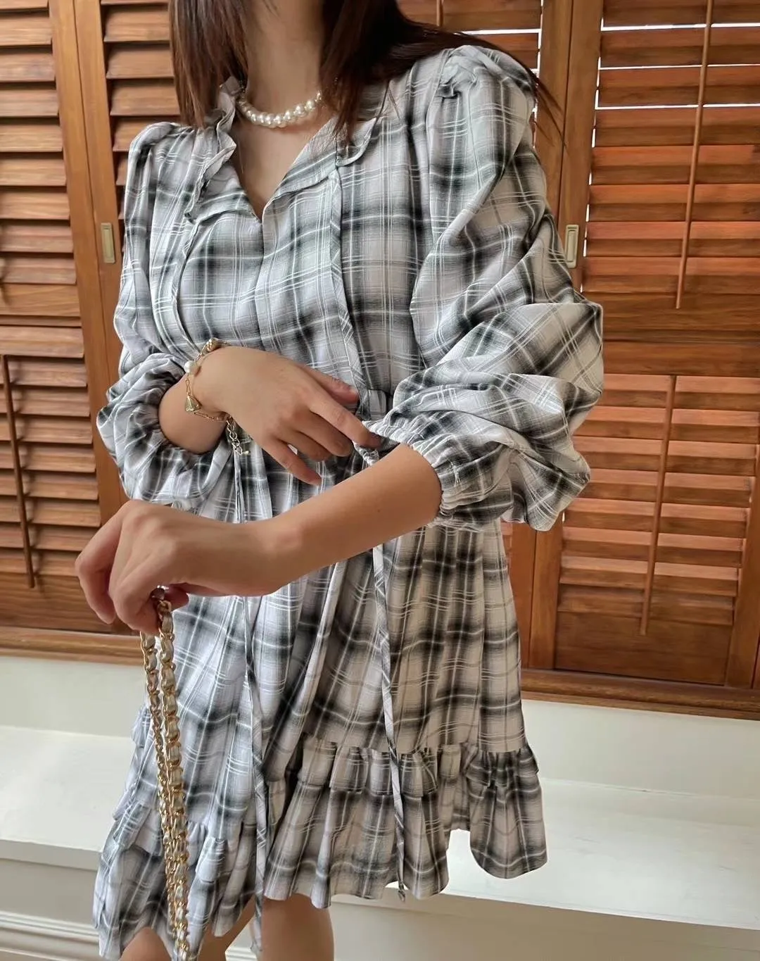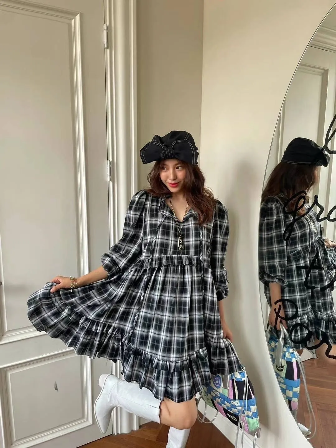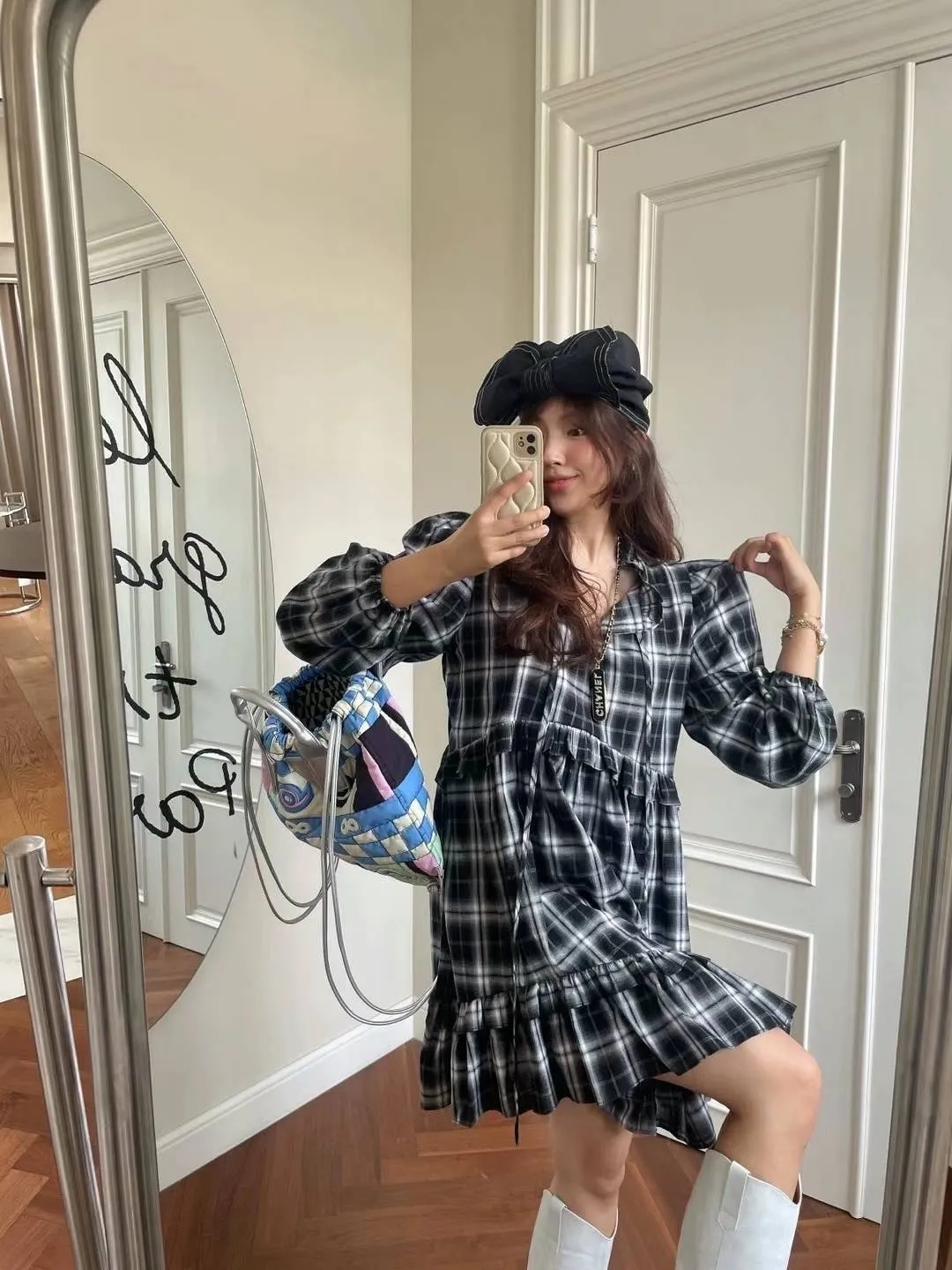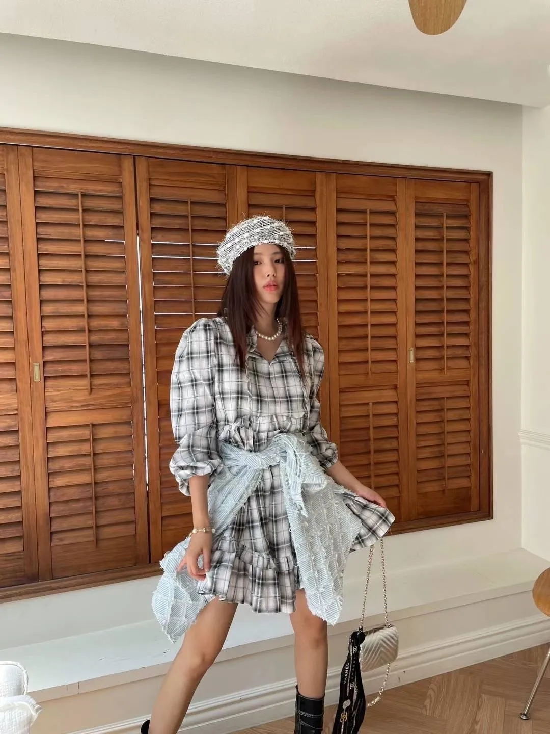 FA139薄款輕盈格紋洋裝 白 黑 官網價$1490 線上價$1460
