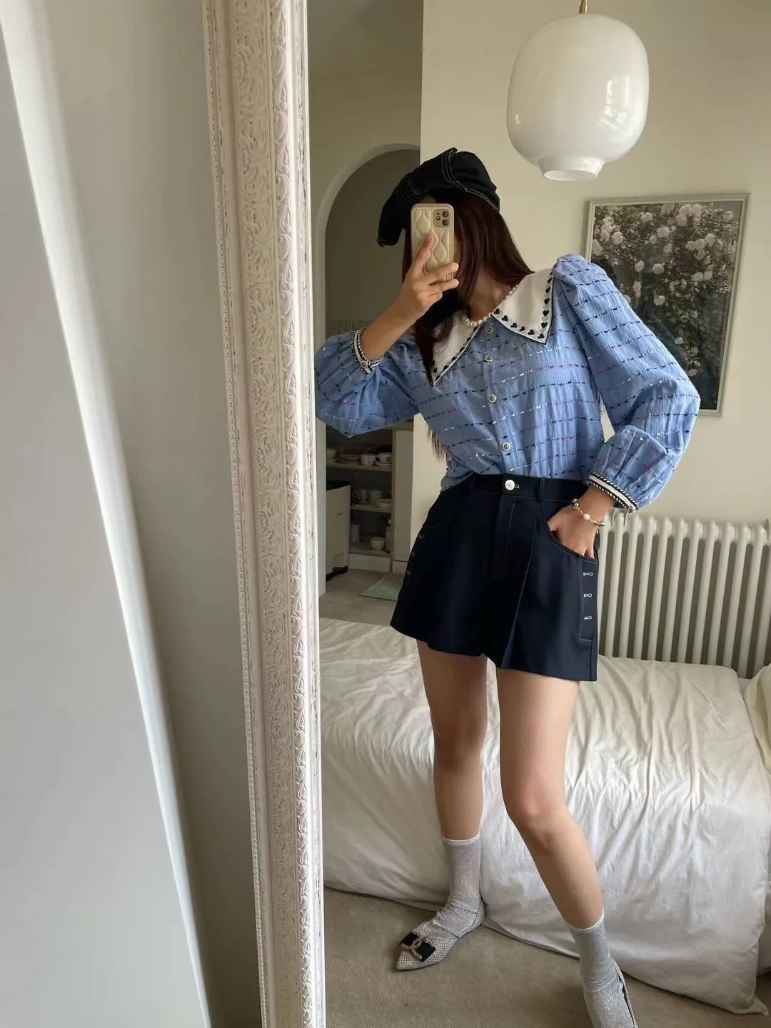 FA141愛麗絲刺繡愛心翻領美衣 藍 黑 官網價$1210 線上價$1180