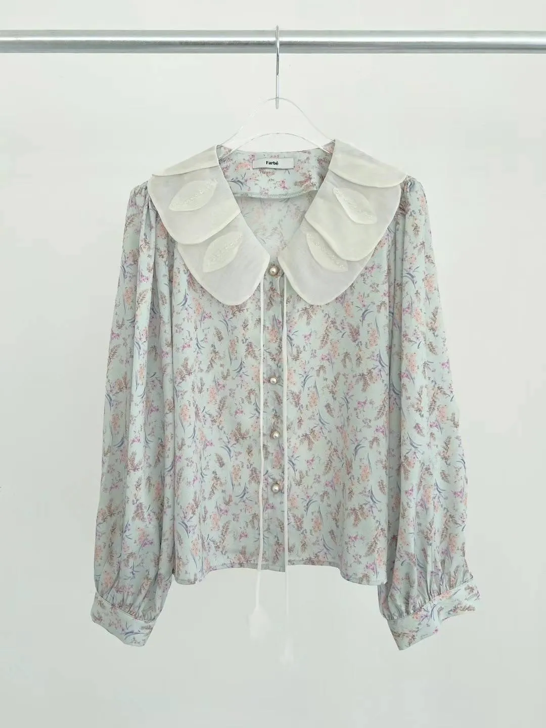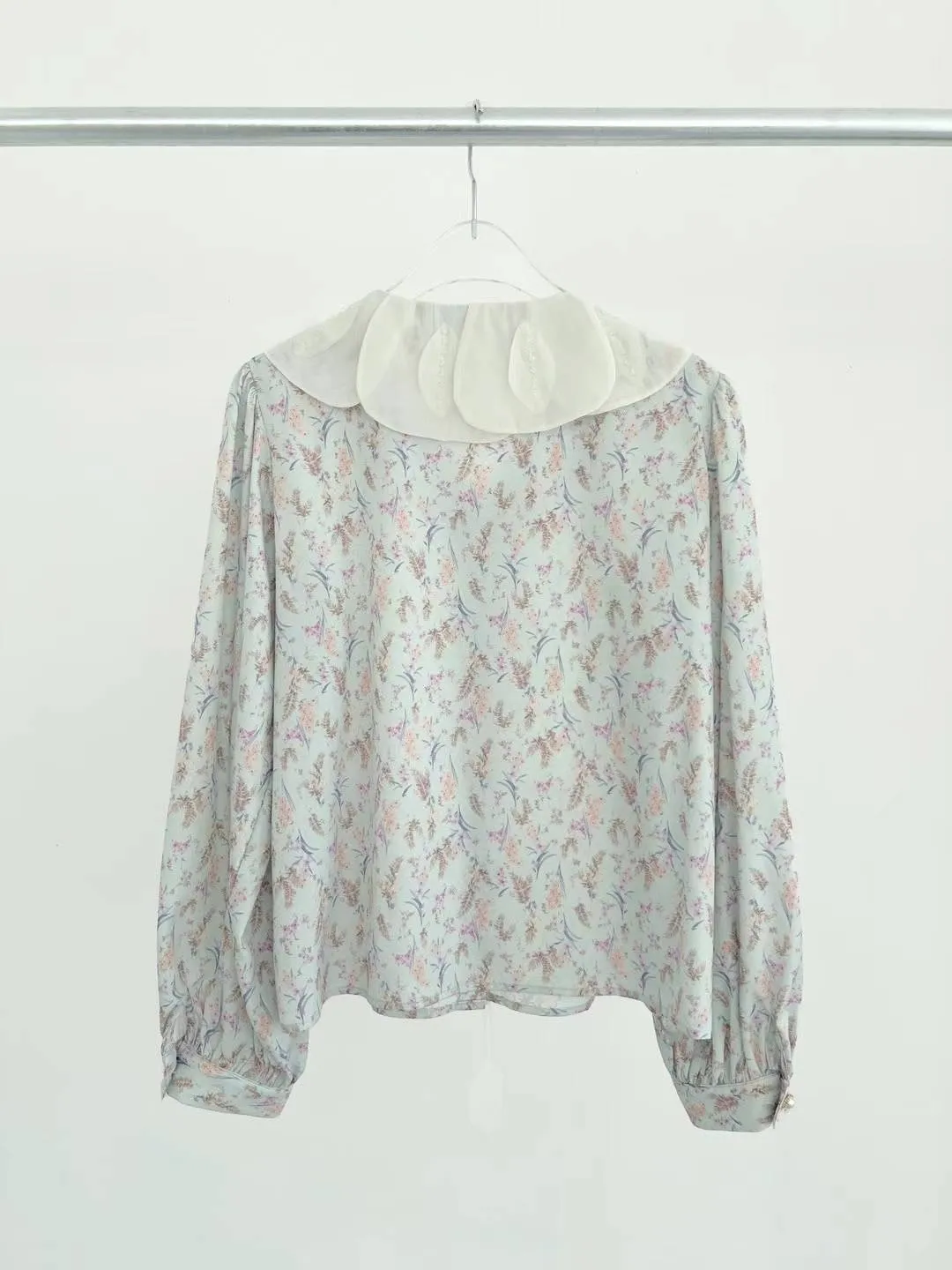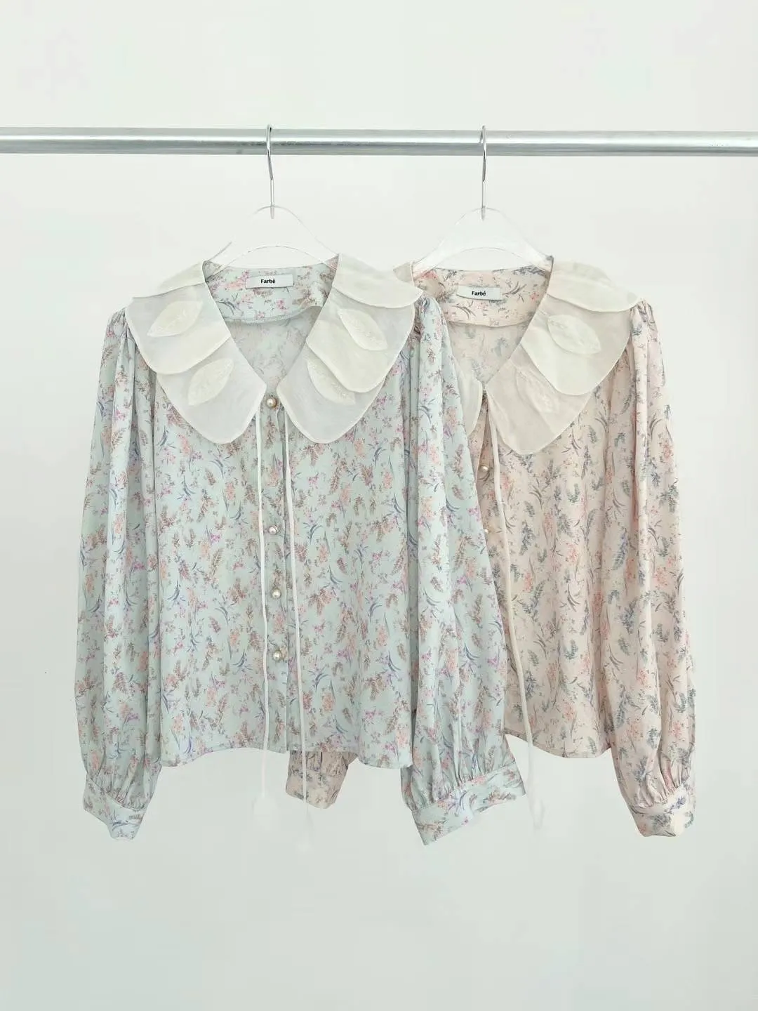 FA142精緻層次美葉翻領碎花上衣 藍 粉 官網價$1210 線上價$1180