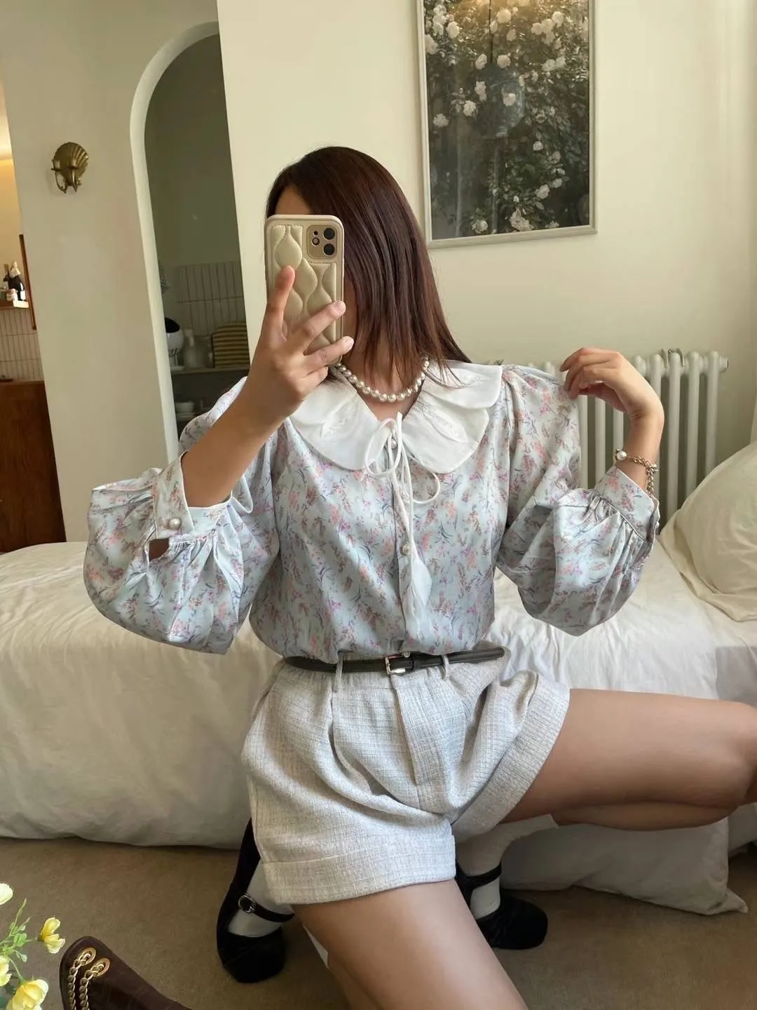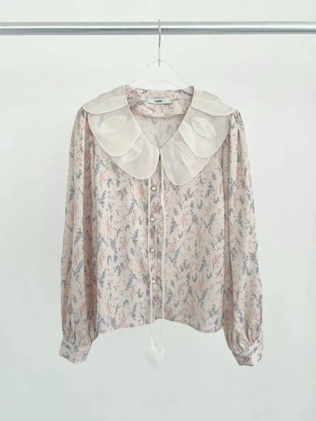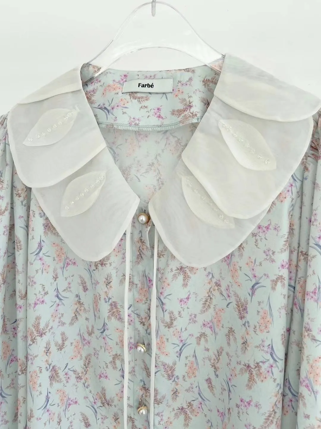 FA142精緻層次美葉翻領碎花上衣 藍 粉 官網價$1210 線上價$1180