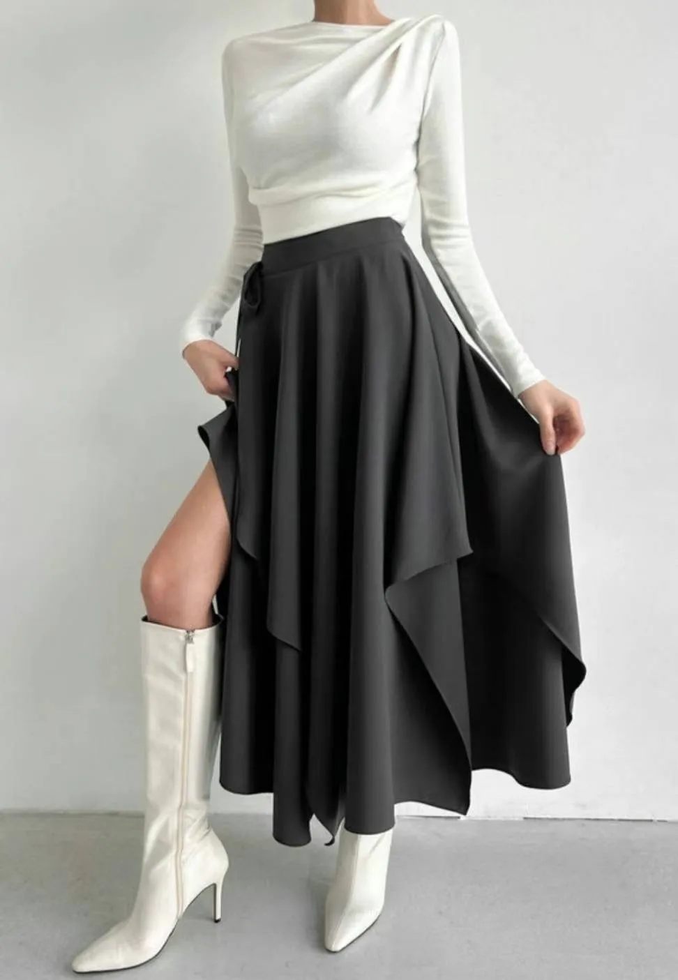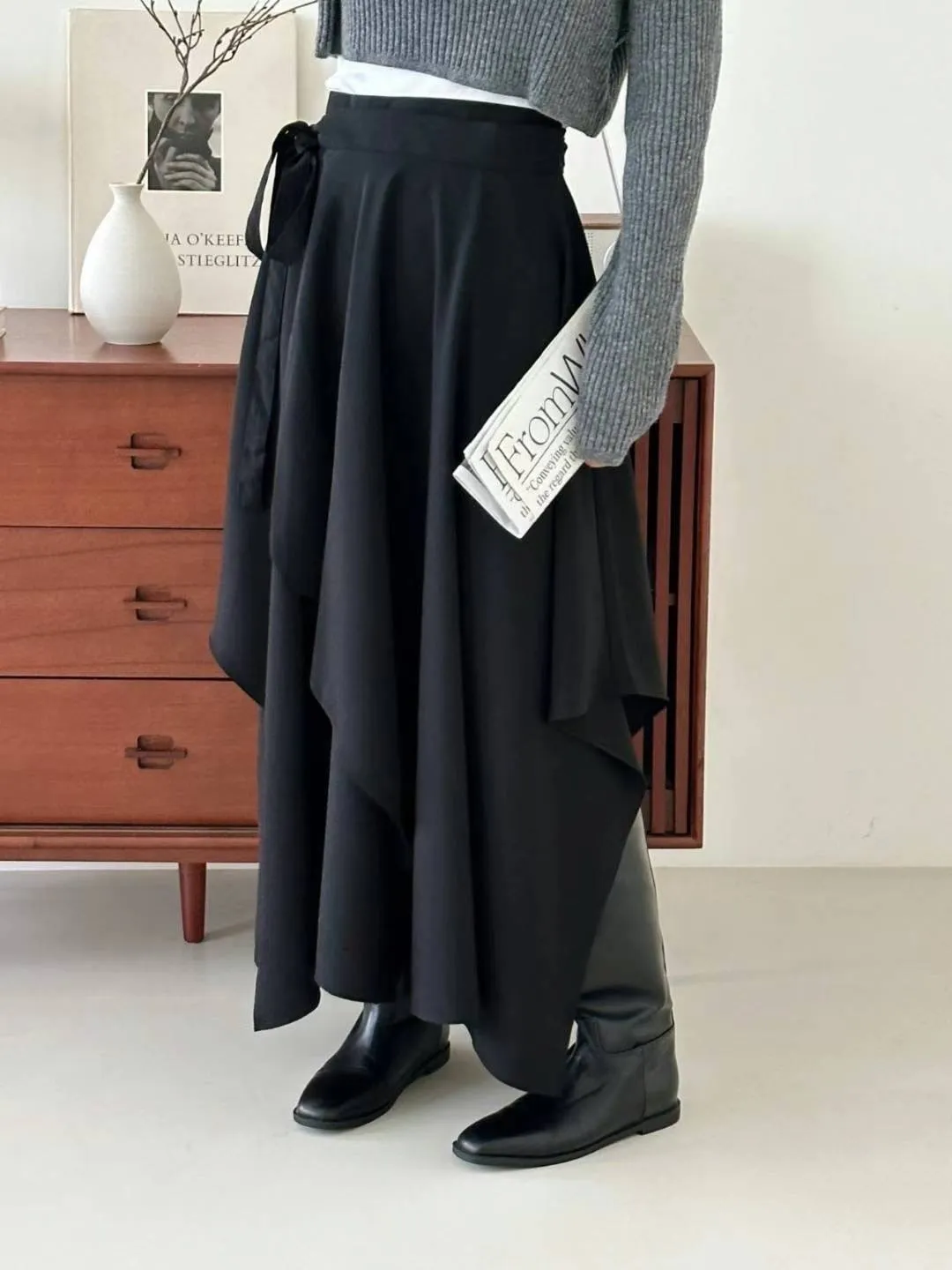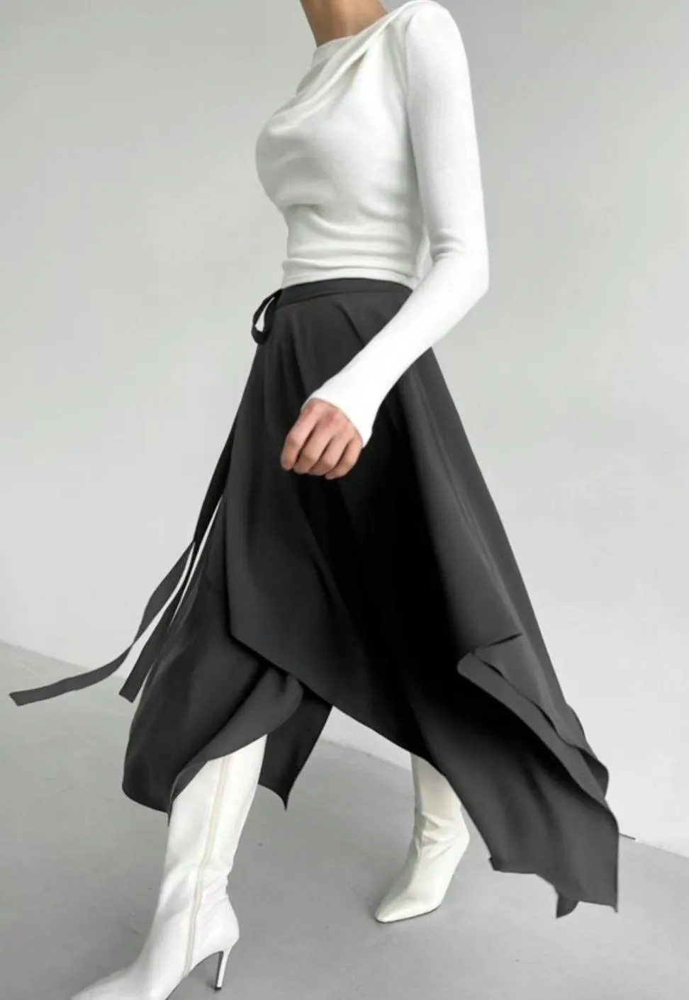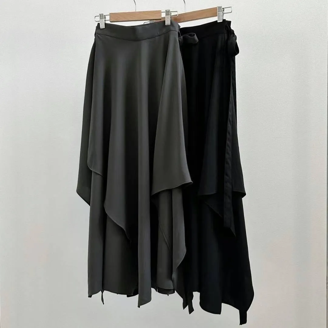 雪紡 厚雪紡份量感不顯小腹 側腰綁帶 一片裙穿脫 不規則下擺