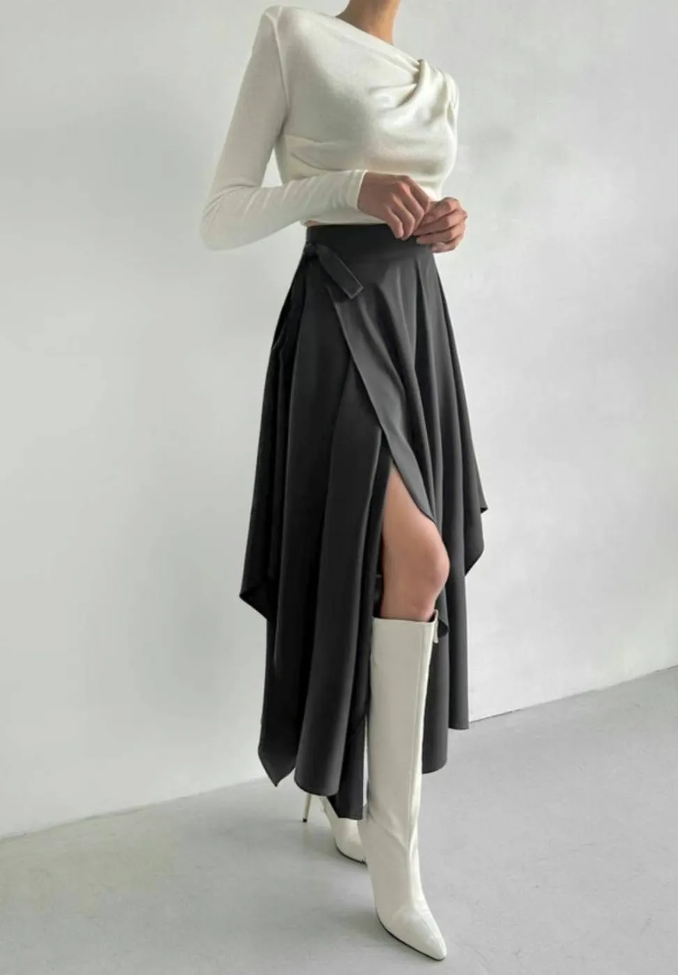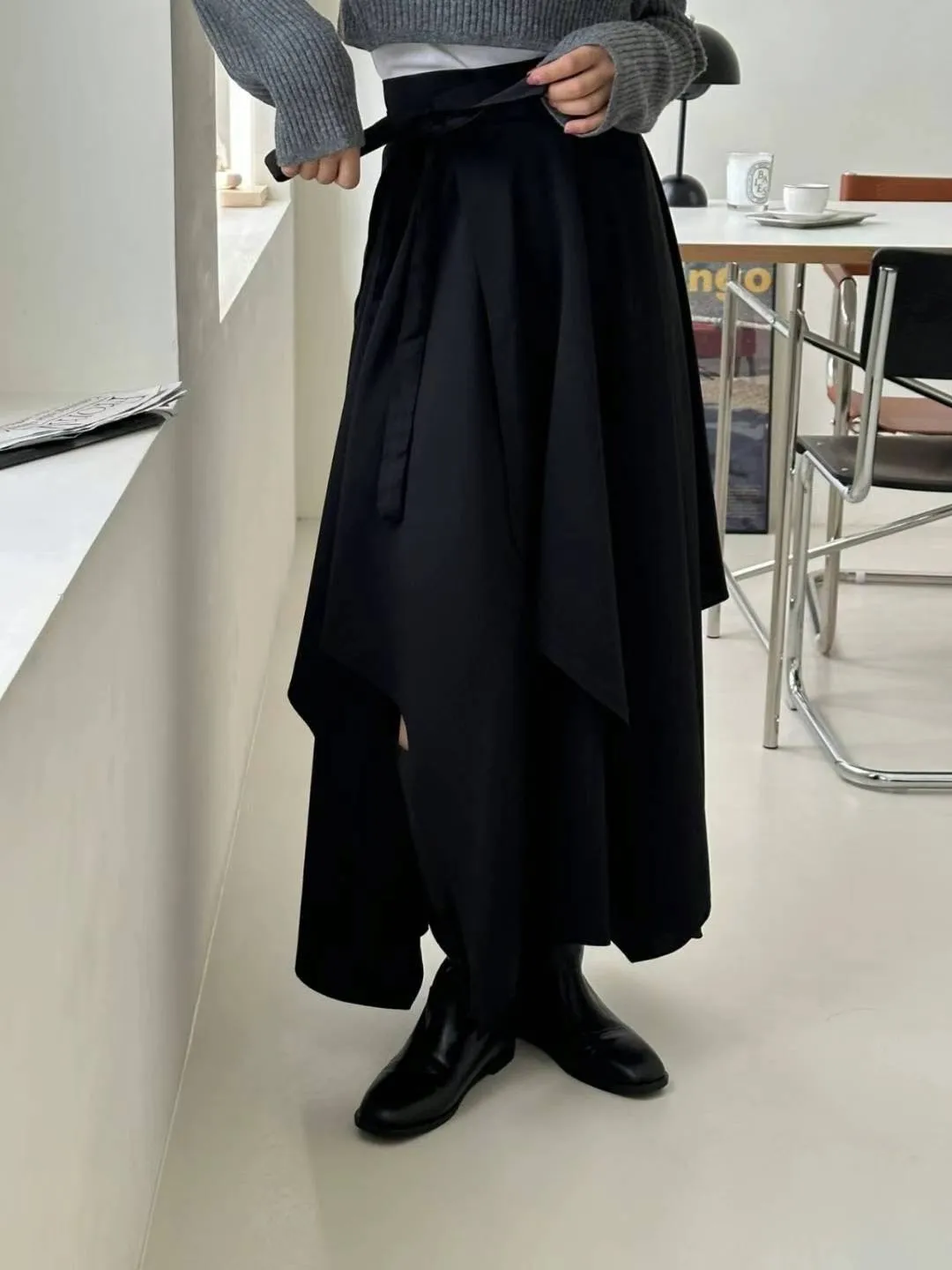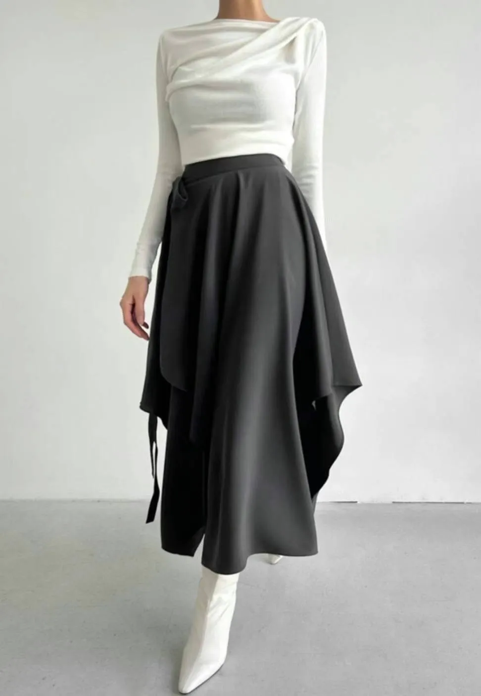 雪紡 厚雪紡份量感不顯小腹 側腰綁帶 一片裙穿脫 不規則下擺