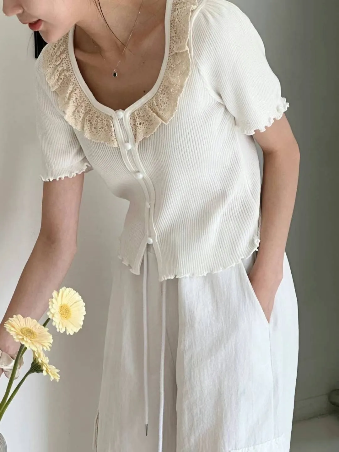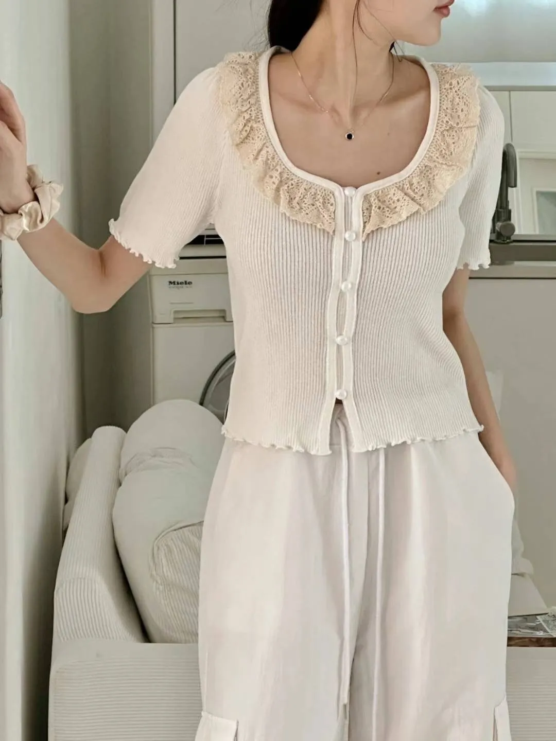 壓克力 精緻布蕾絲 排釦穿脫 大彈性 木耳滾邊 空間舒適