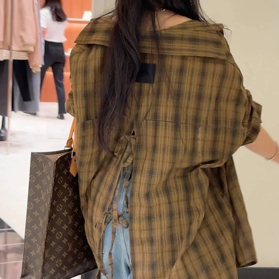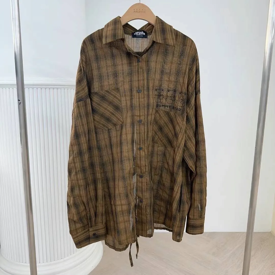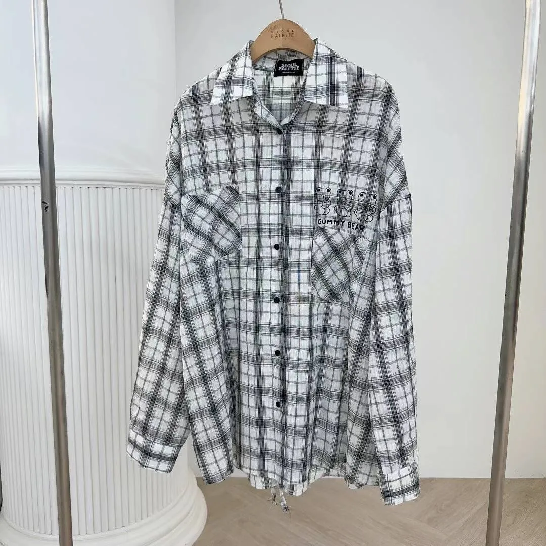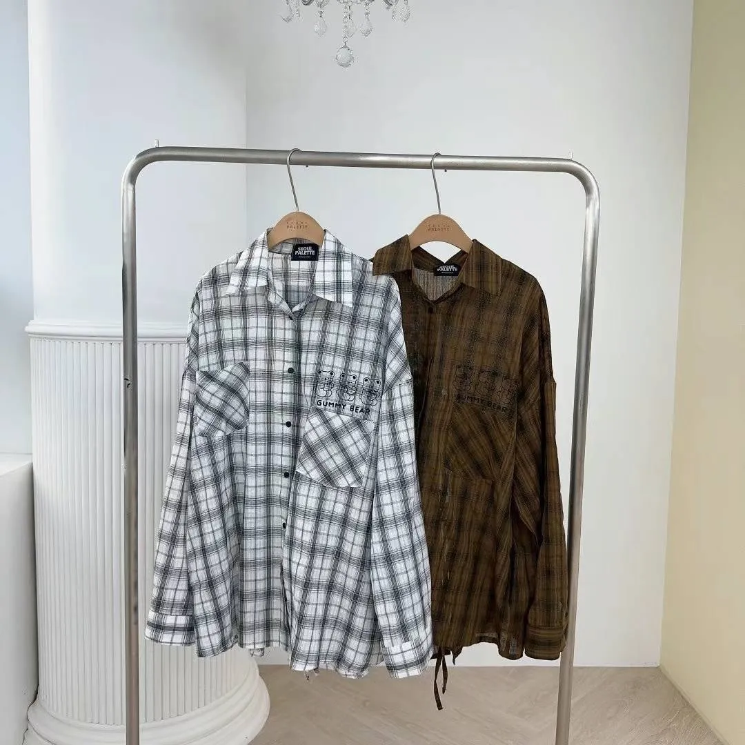 FA210潮流熊熊格紋後開叉襯衫 白 咖 官網價$1180 線上價$1150