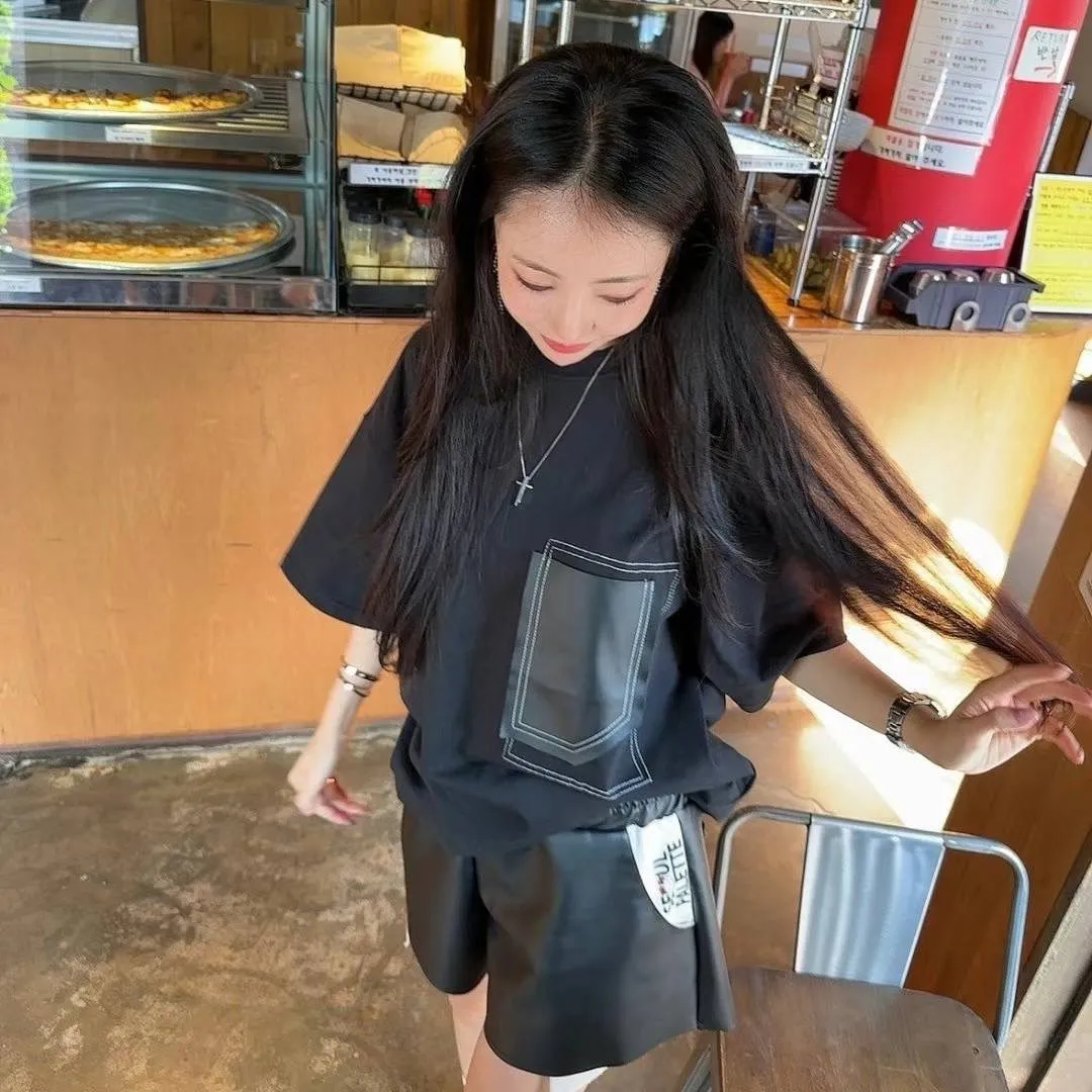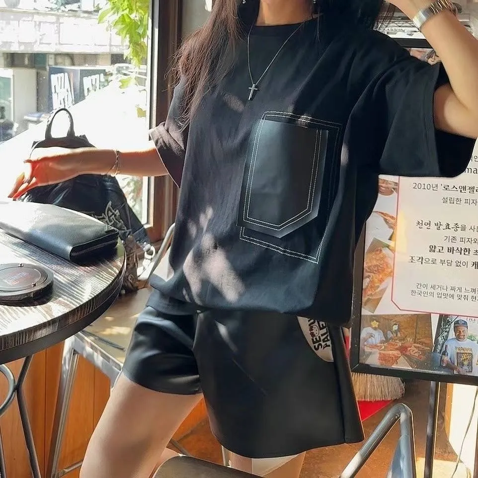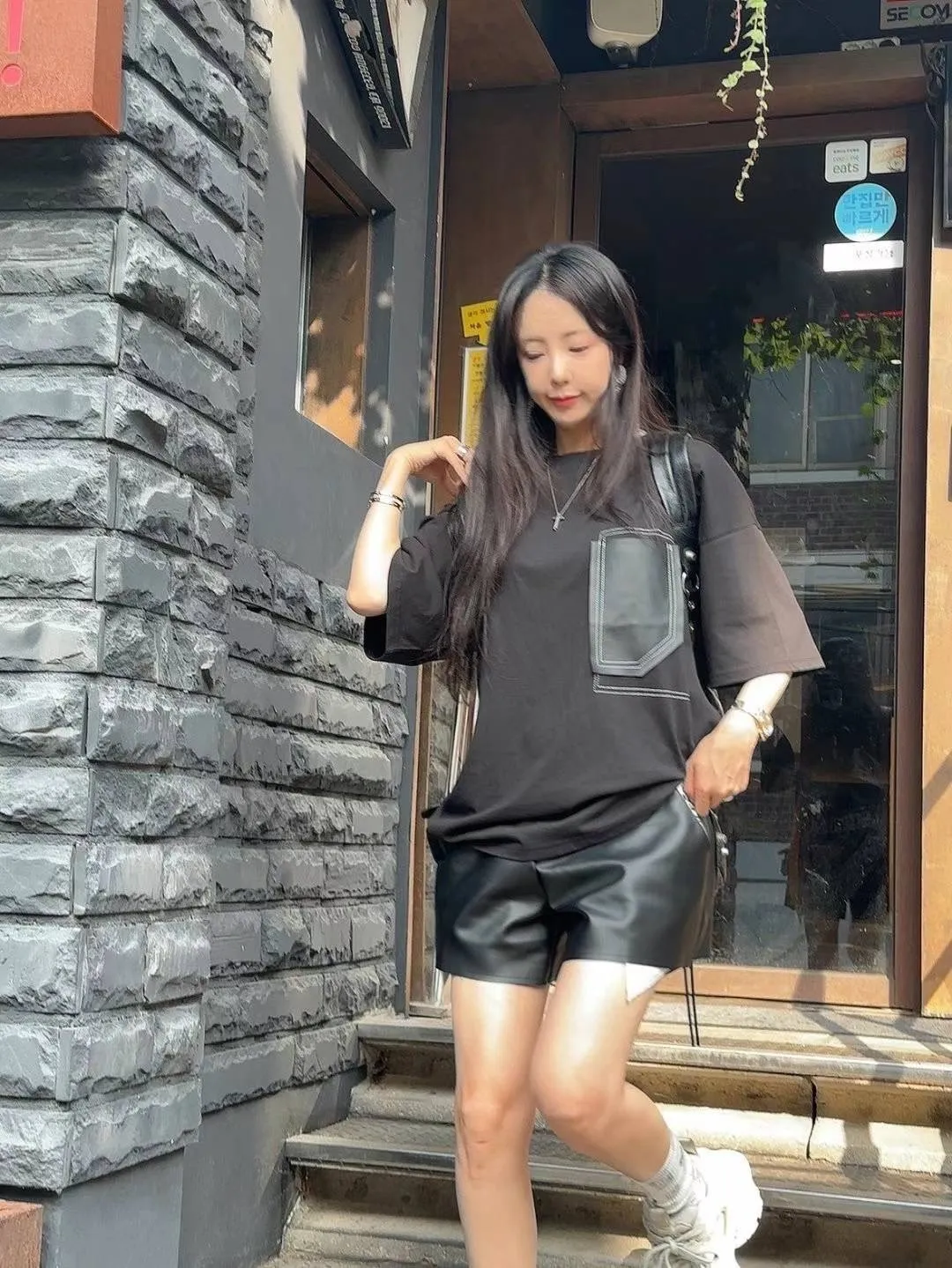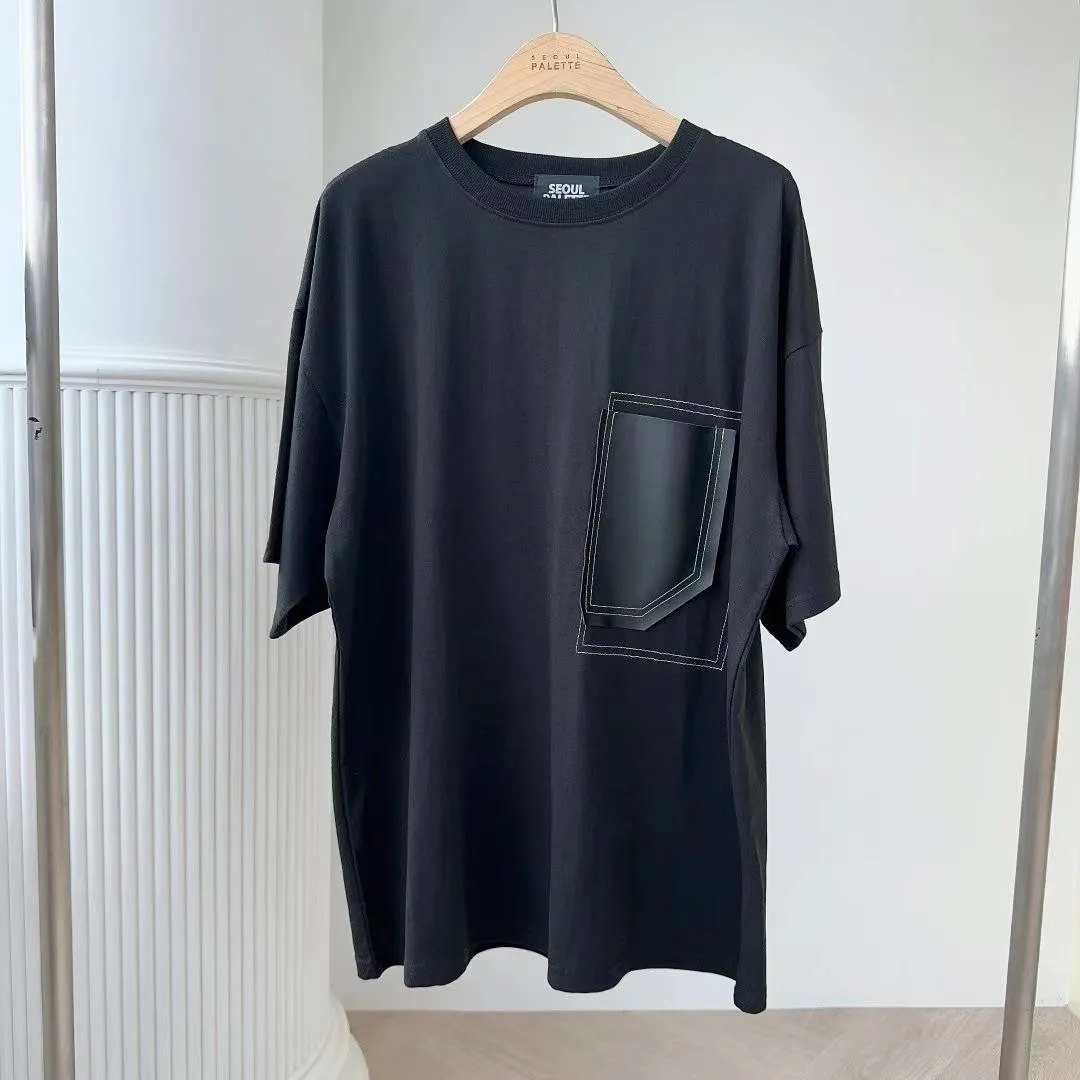 FA219藝術拼接大口袋Tshirt 黑 奶茶 官網價$729 線上價$699