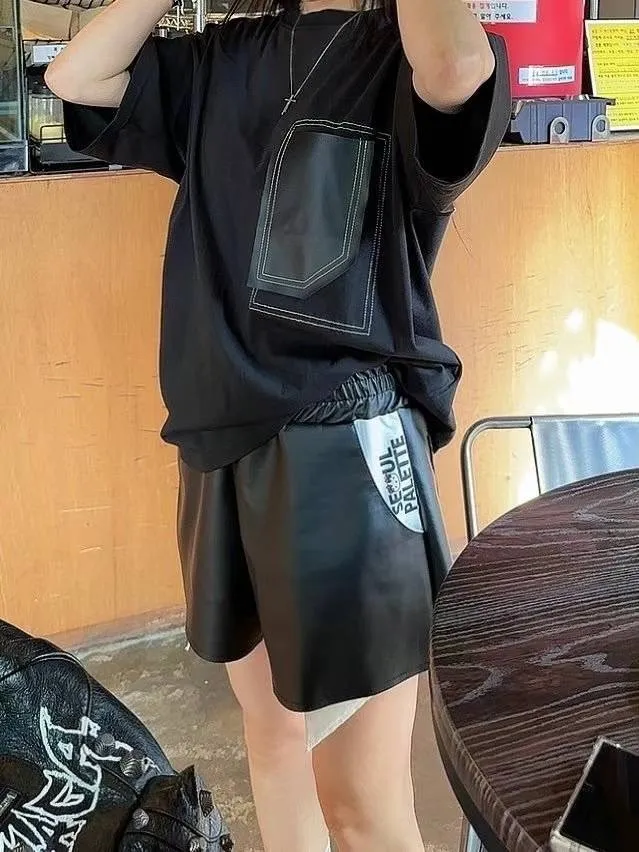 FA220潮流kitty口袋皮革短褲 黑 奶茶 官網價$850 線上價$820