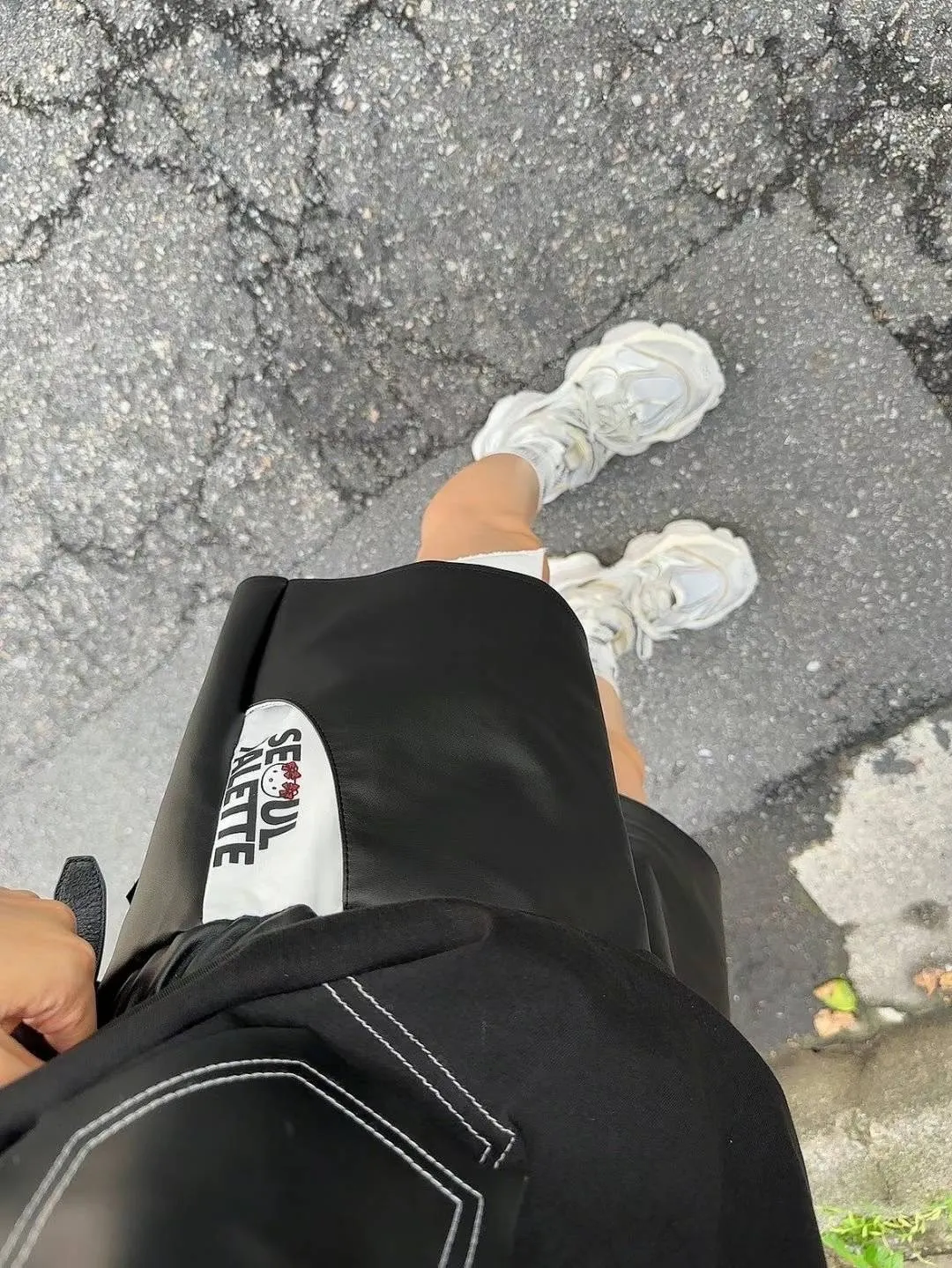 合成皮革 全腰鬆緊 柔軟薄款 口袋有kitty 口袋內側漏外潮流設計