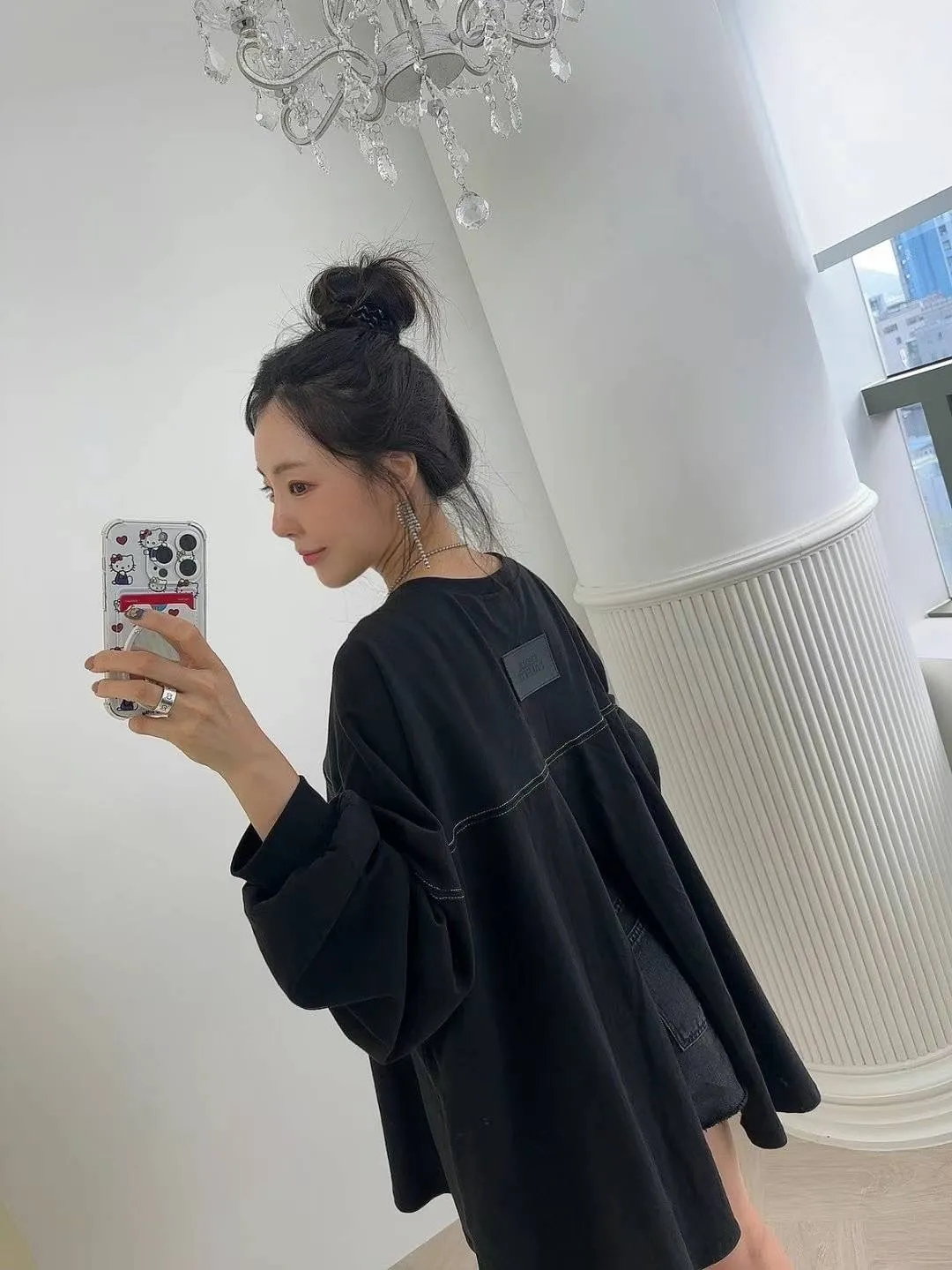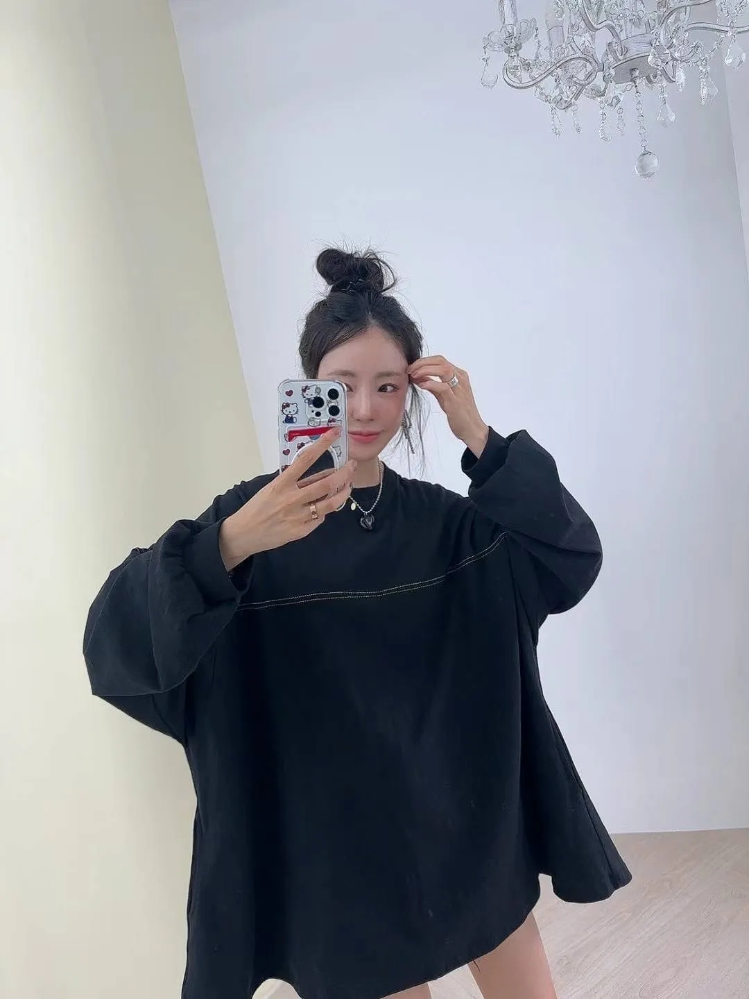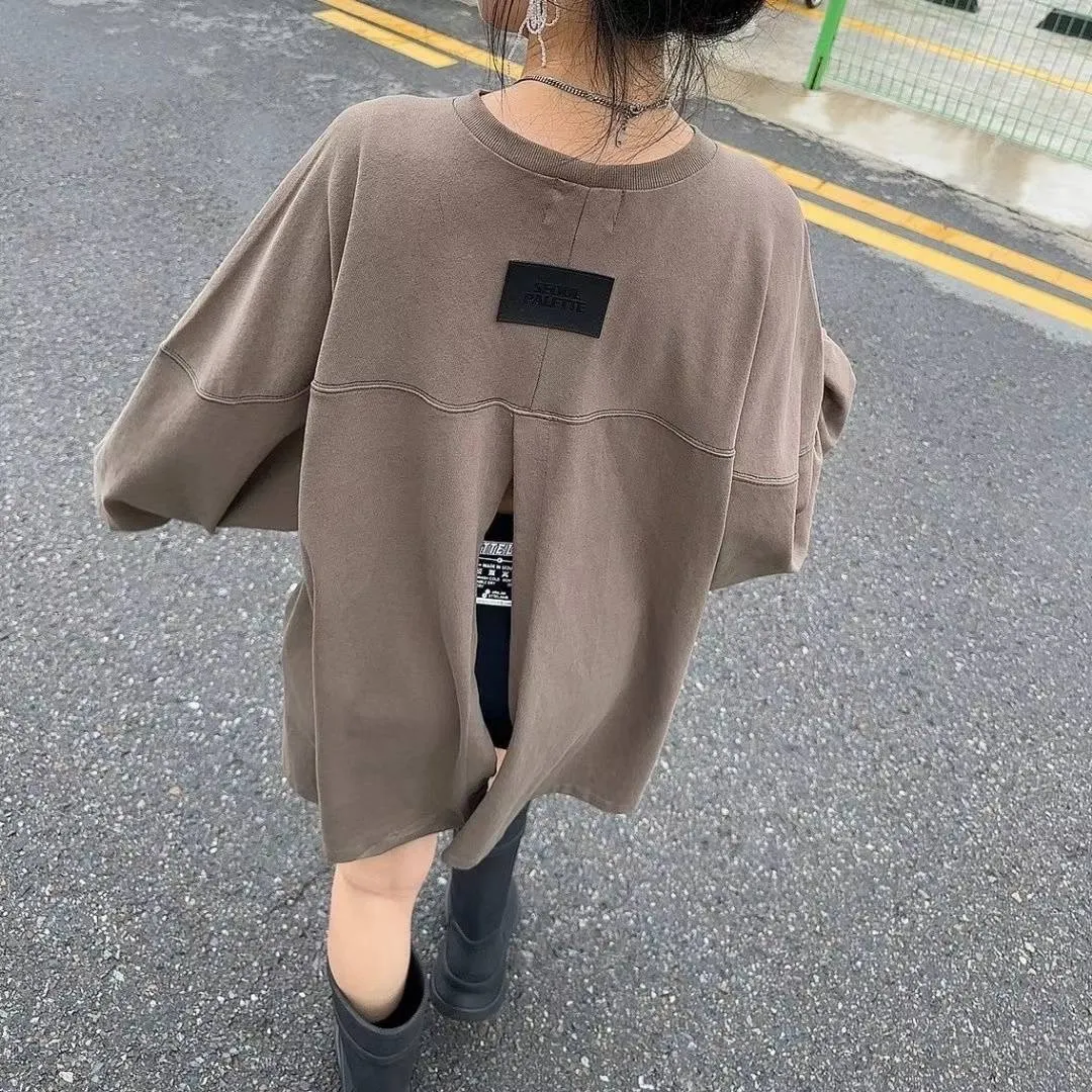 FA221簡單寬鬆口袋後開叉大學T 黑 奶茶 官網價$850 線上價$820
