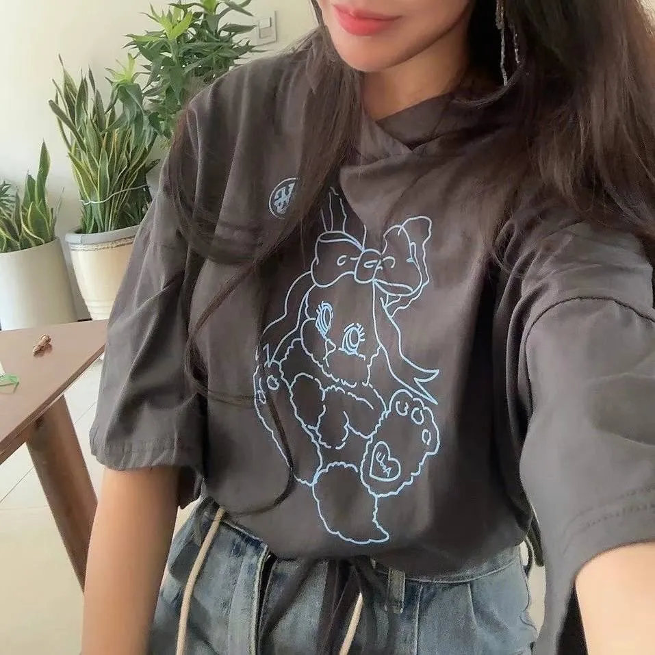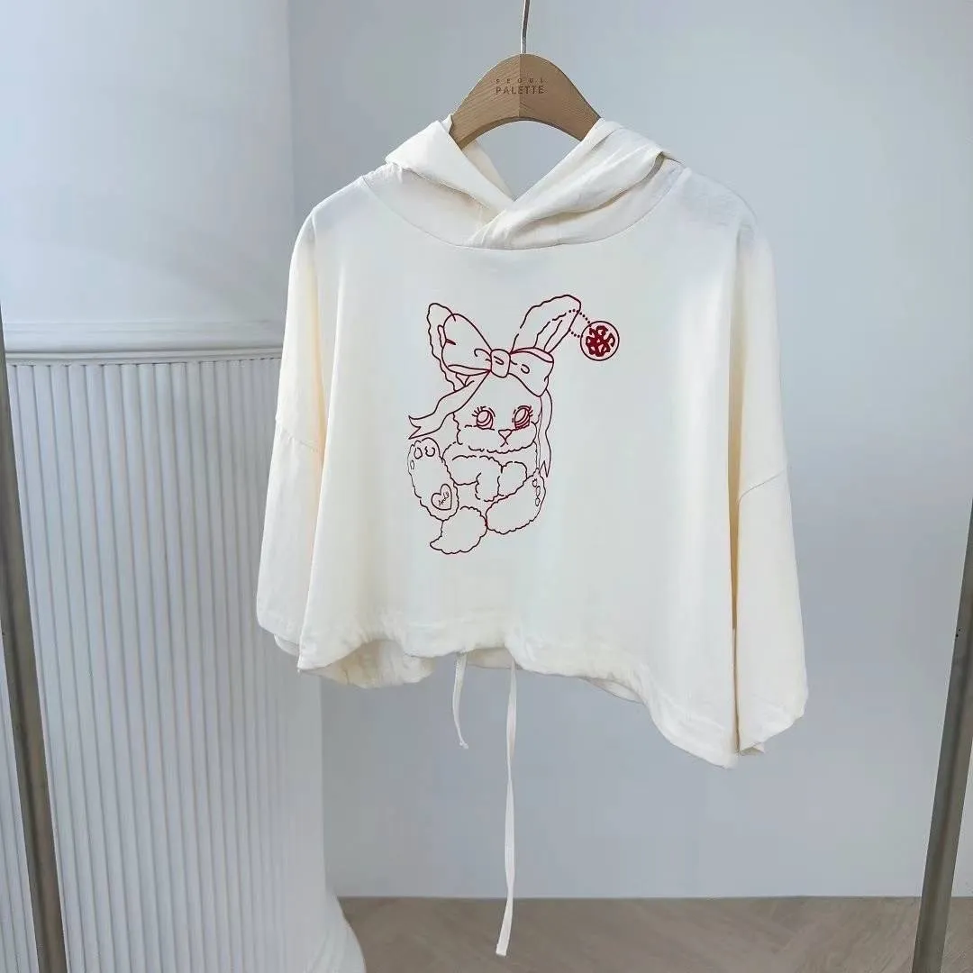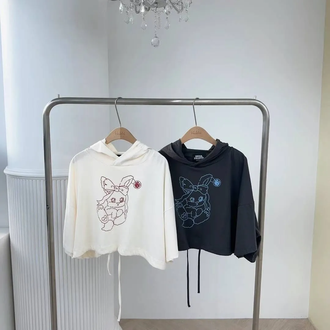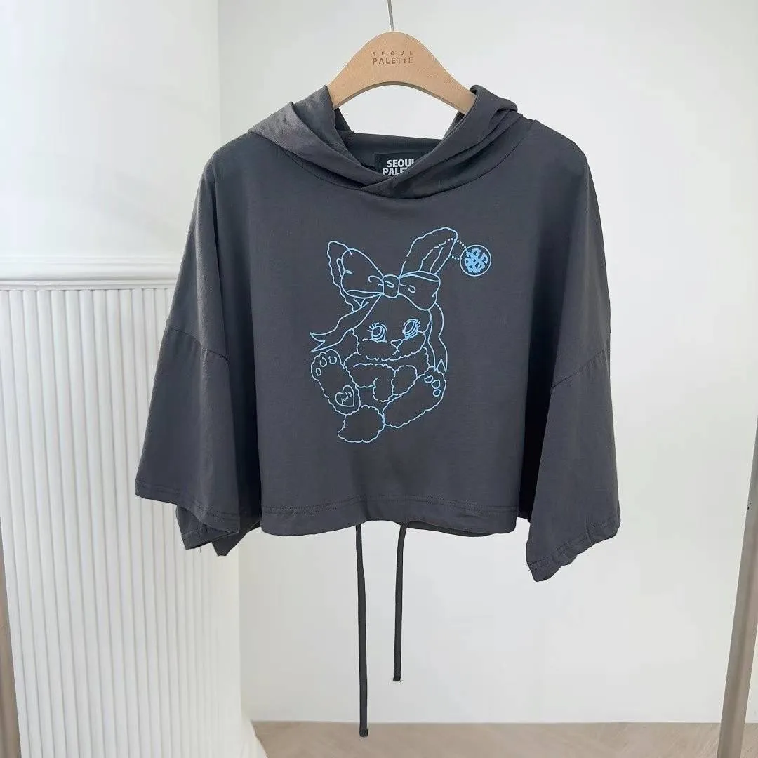 FA229薄款可愛兔兔連帽短版Tshirt 米 灰 官網價$750 線上價$720