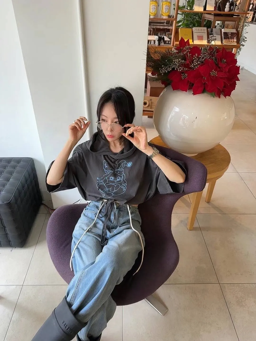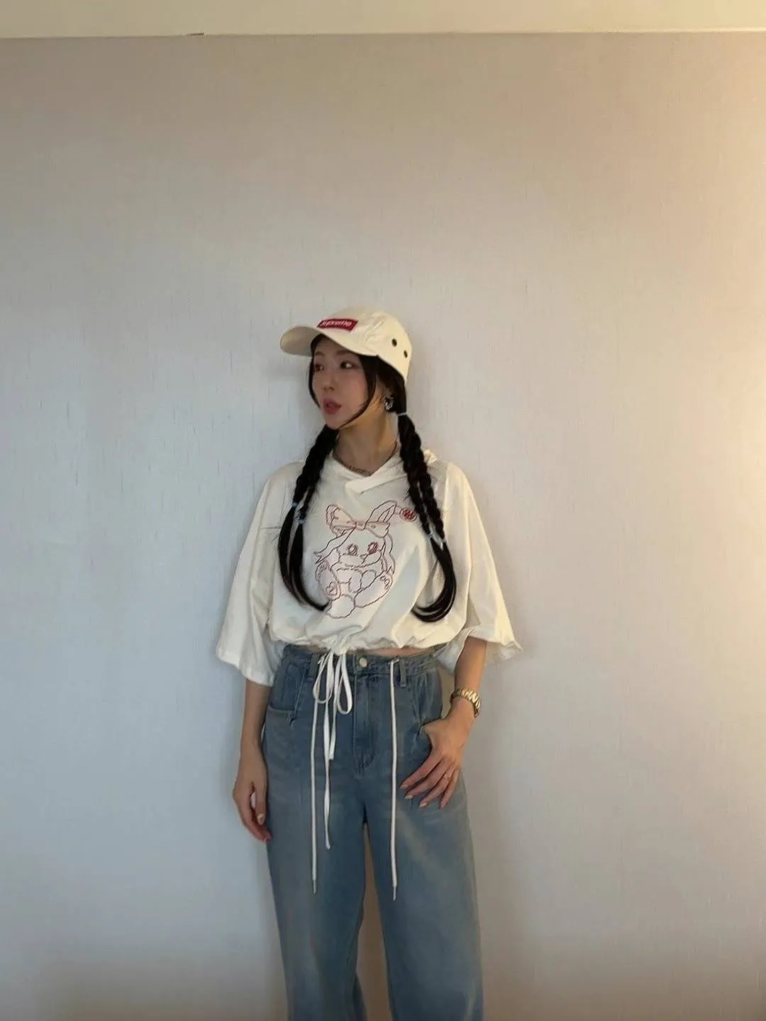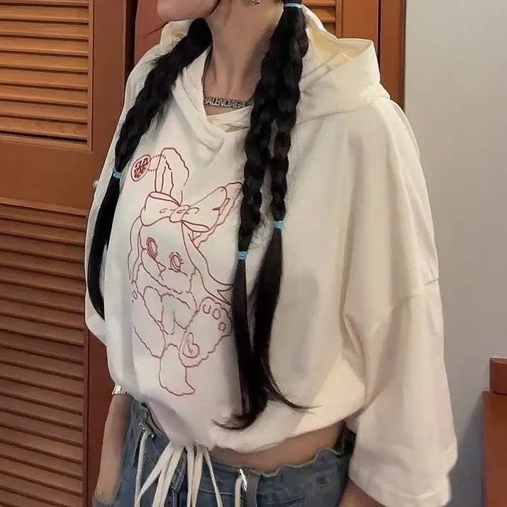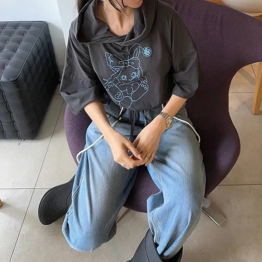 FA229薄款可愛兔兔連帽短版Tshirt 米 灰 官網價$750 線上價$720