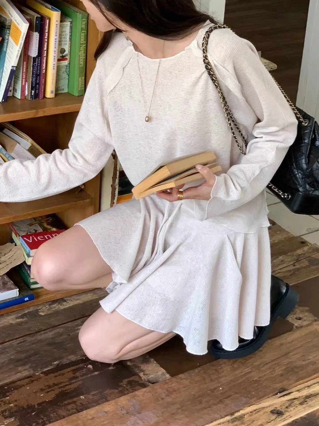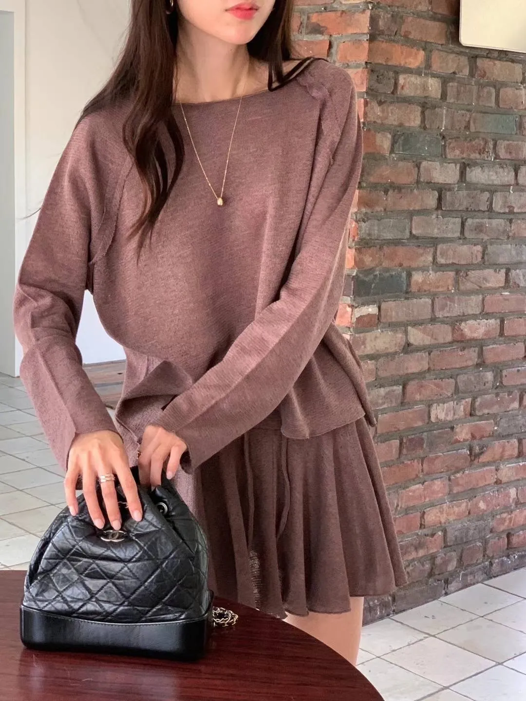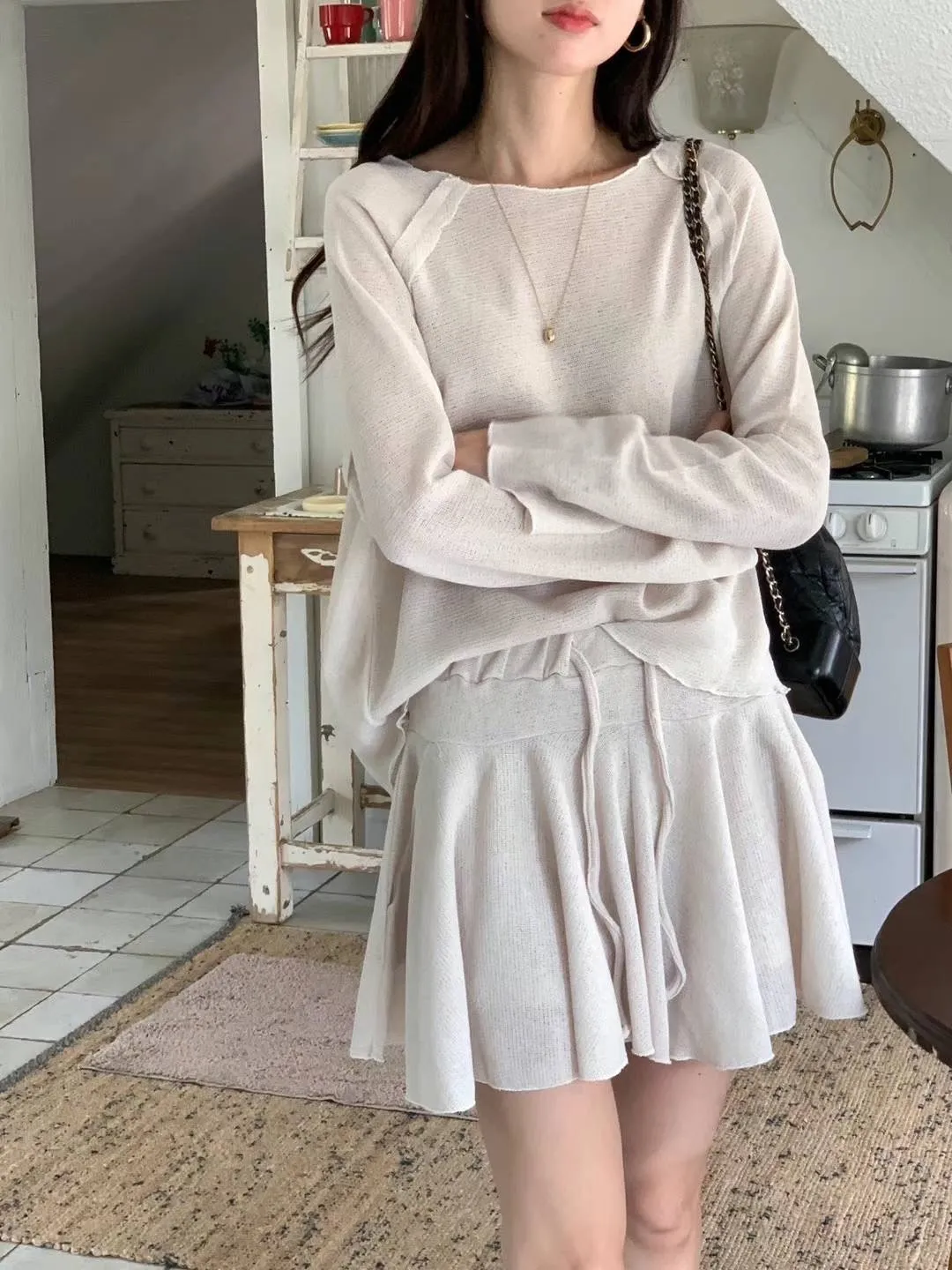 聚酯 薄款透光 針織面料 寬鬆舒適 有彈性 立體斜肩設計 褲裙內裡彈性有口袋