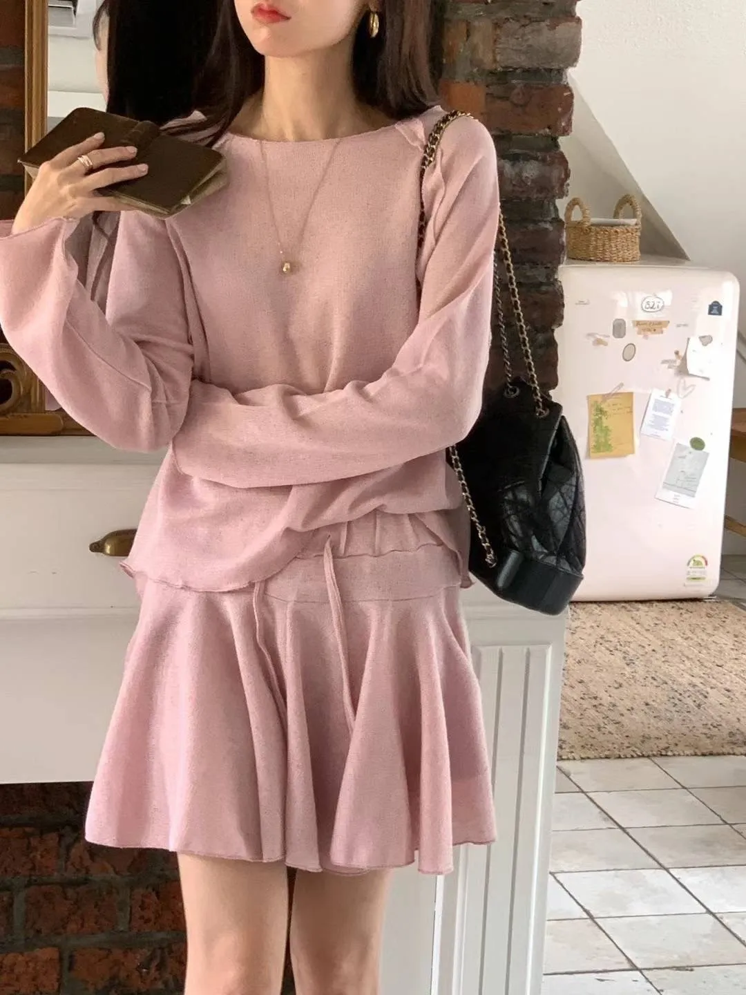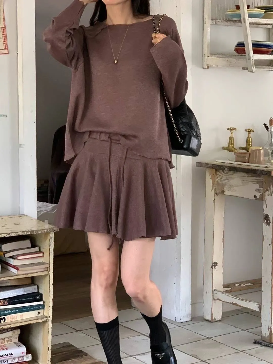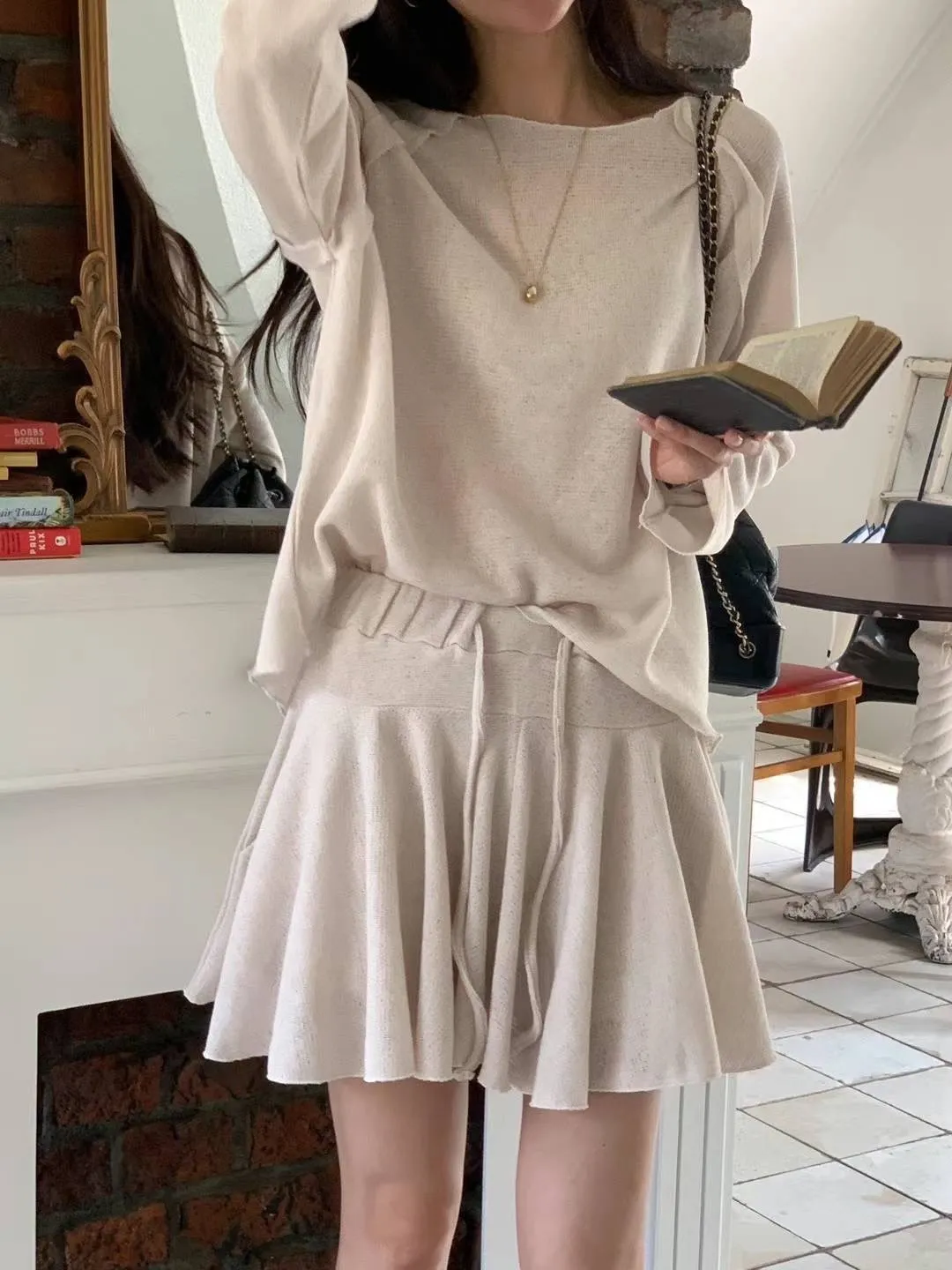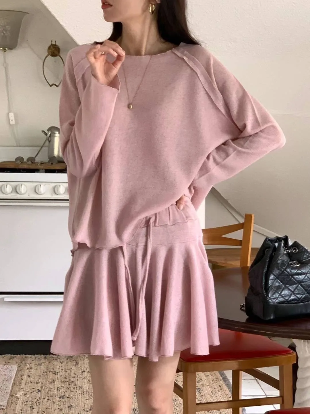 聚酯 薄款透光 針織面料 寬鬆舒適 有彈性 立體斜肩設計 褲裙內裡彈性有口袋