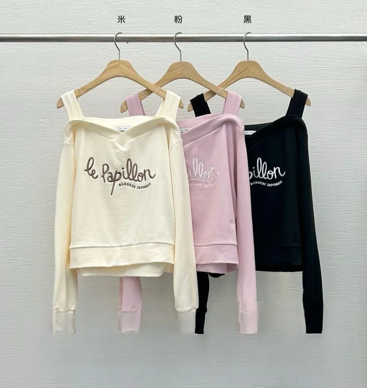 棉,草寫英文 小露鎖骨 袖口下擺鬆緊 女人味休閒小性感