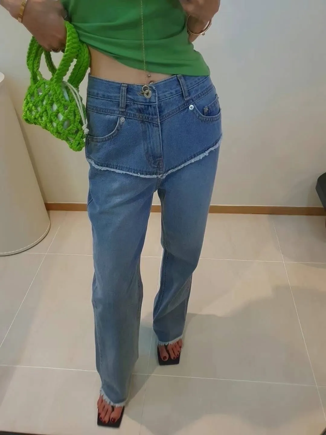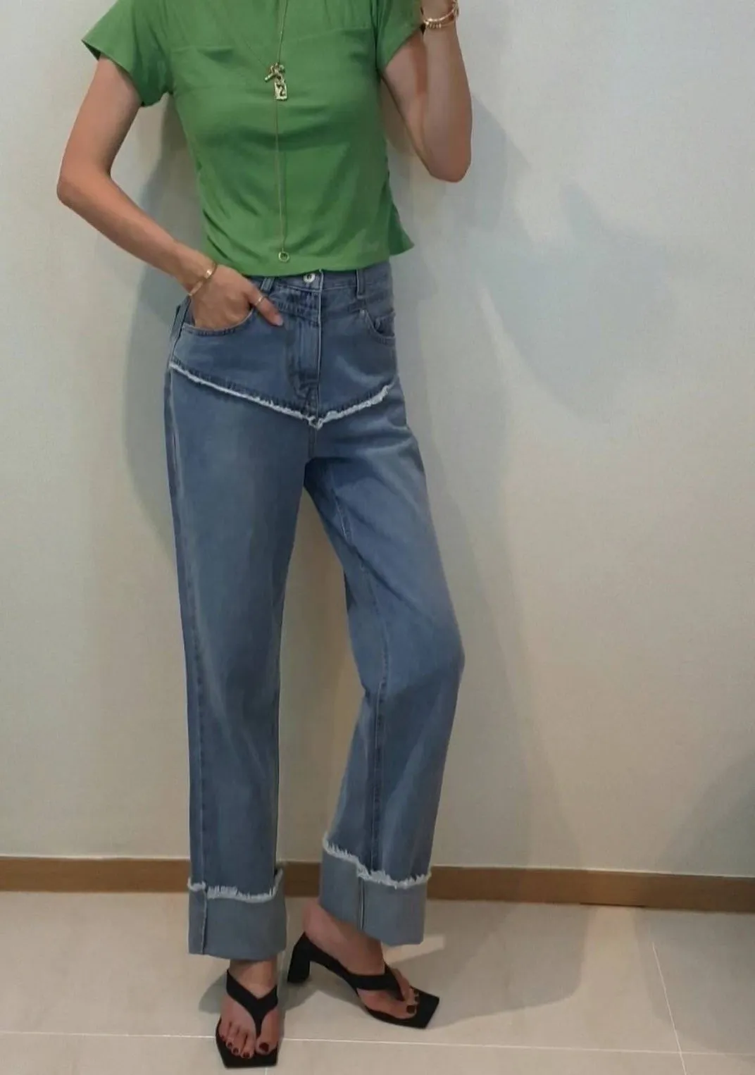 棉 薄款牛仔 釦鍊穿脫 褲管不收邊 顯瘦藏肉 台灣天氣適合