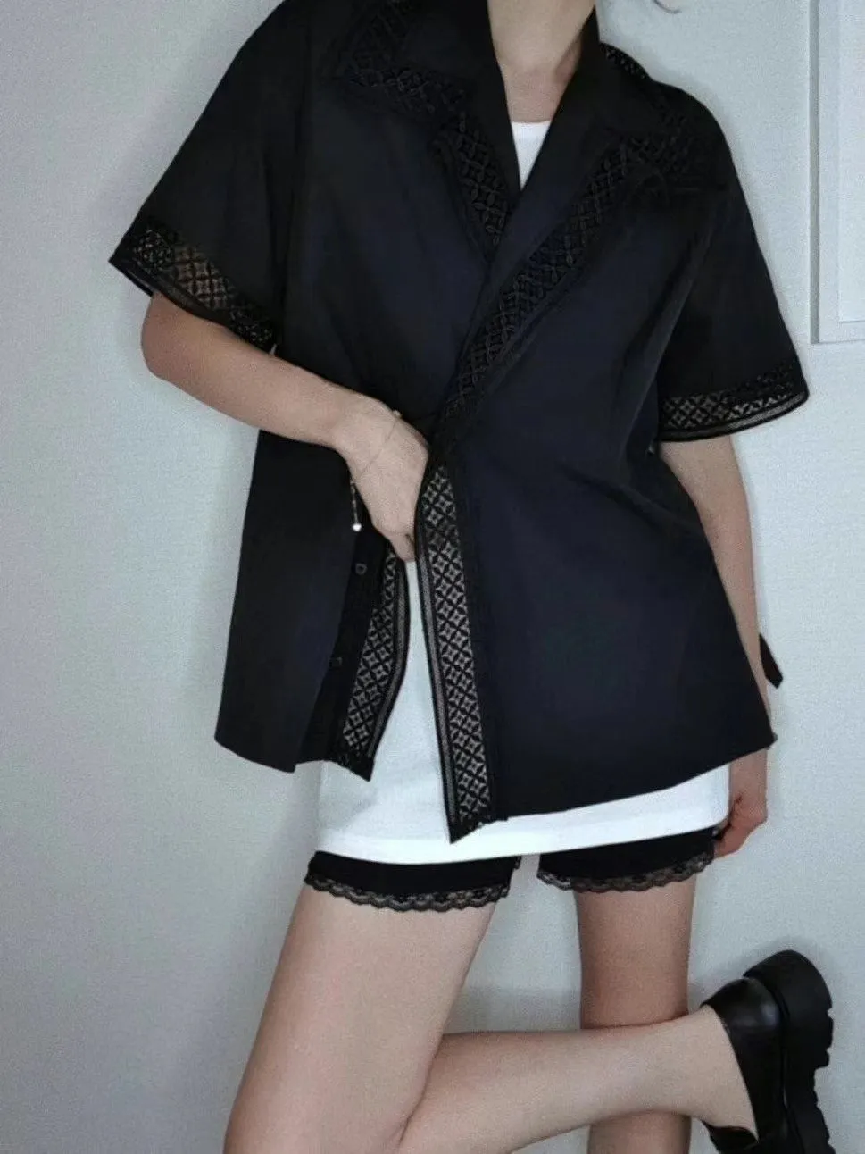 聚酯+尼龍 質感蕾絲 側開叉 釦子穿脫 態度風格 穿到L號