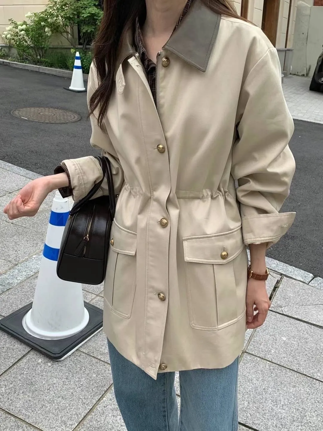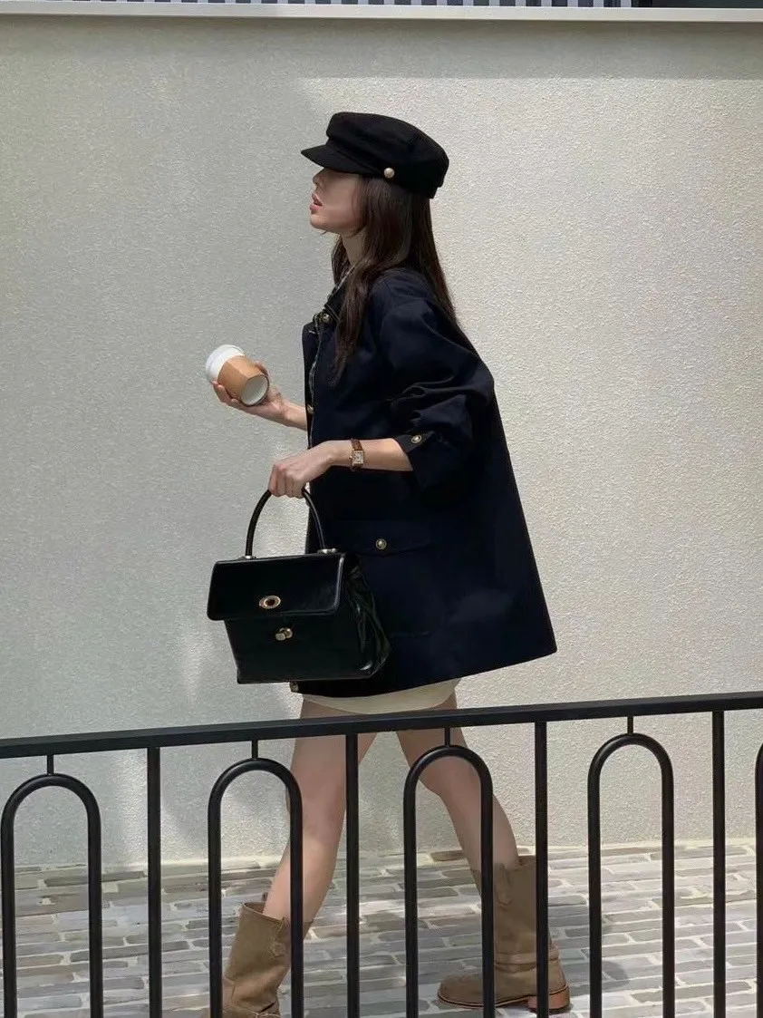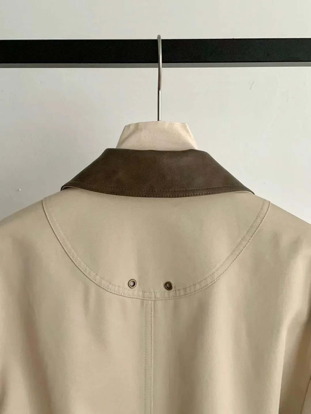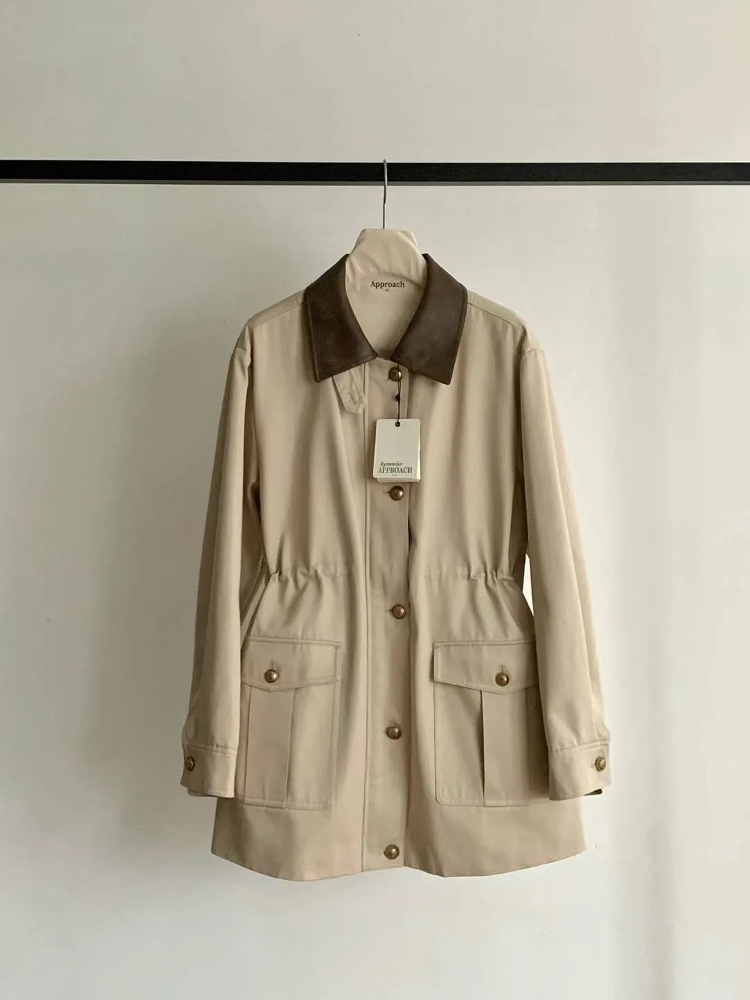 FA315質感皮革領英倫風衣外套 米 藍 官網價$2650 線上價$2620