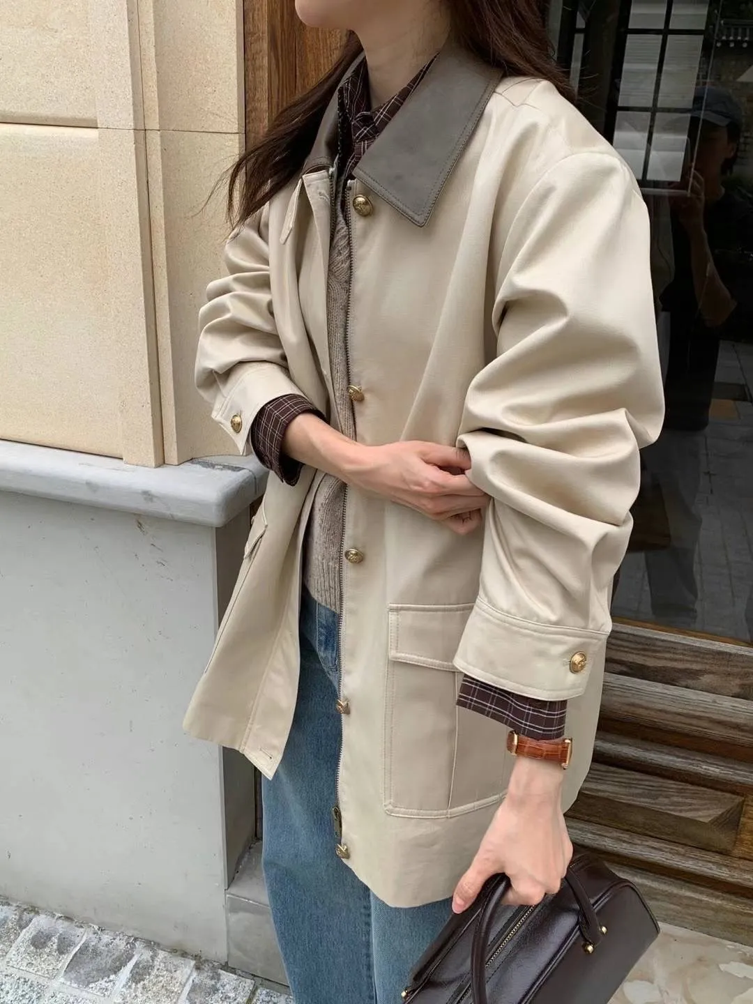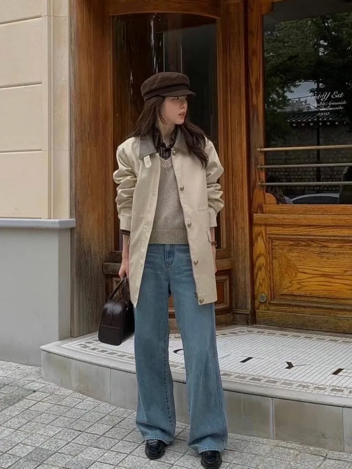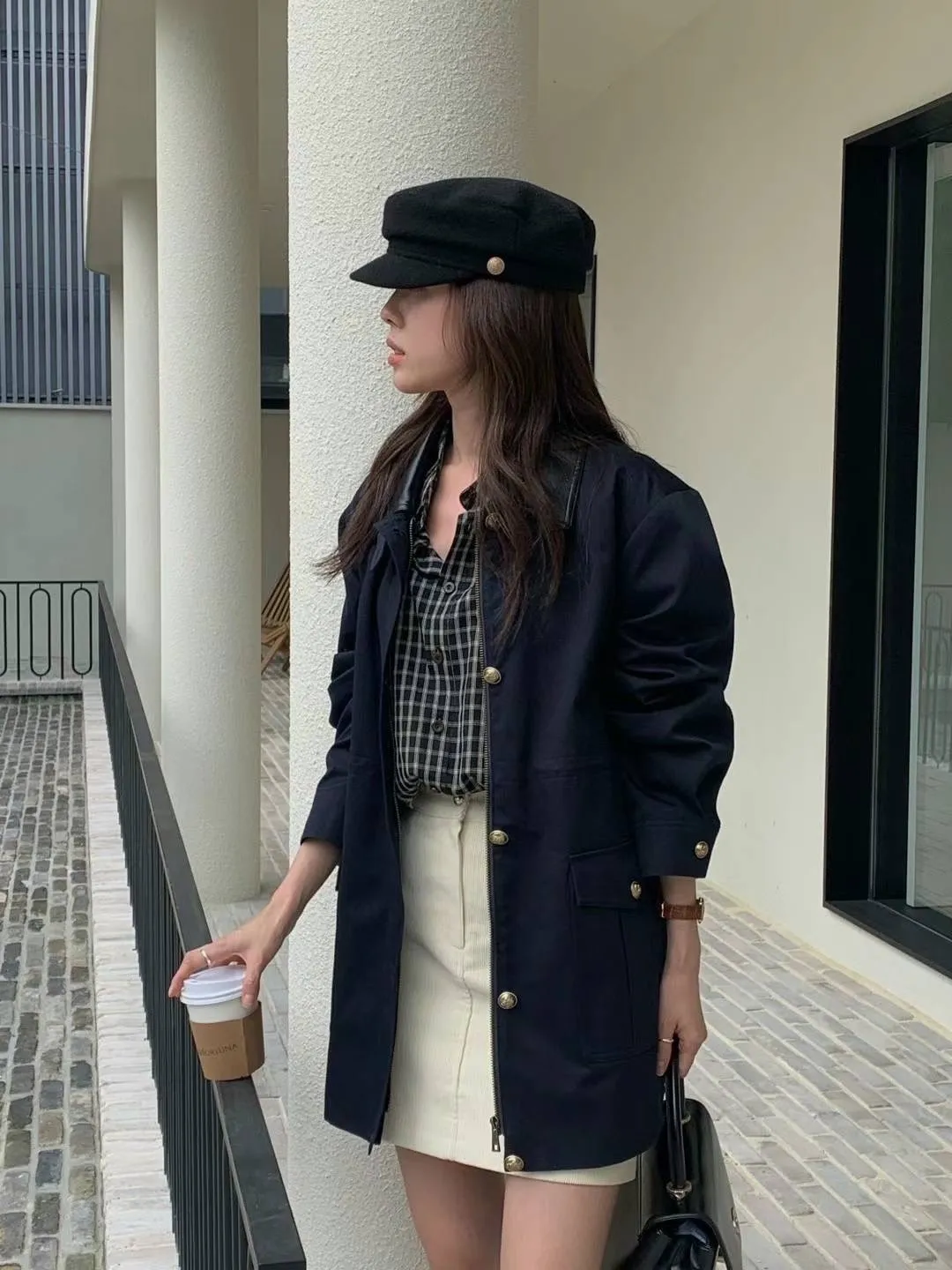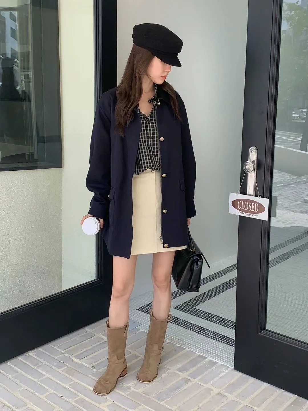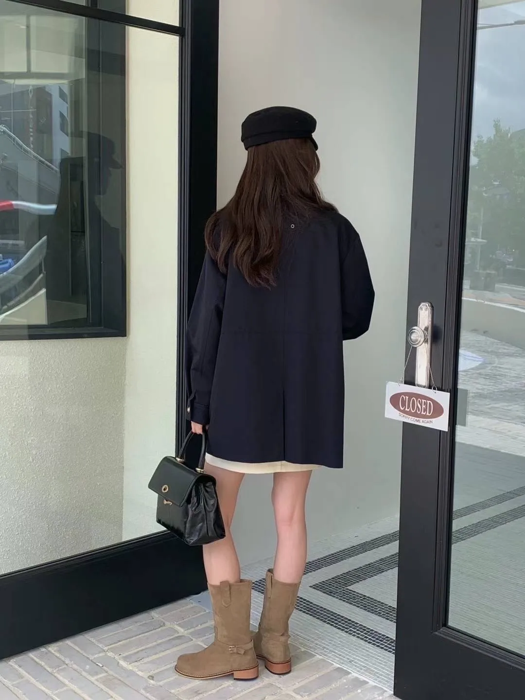 FA315質感皮革領英倫風衣外套 米 藍 官網價$2650 線上價$2620