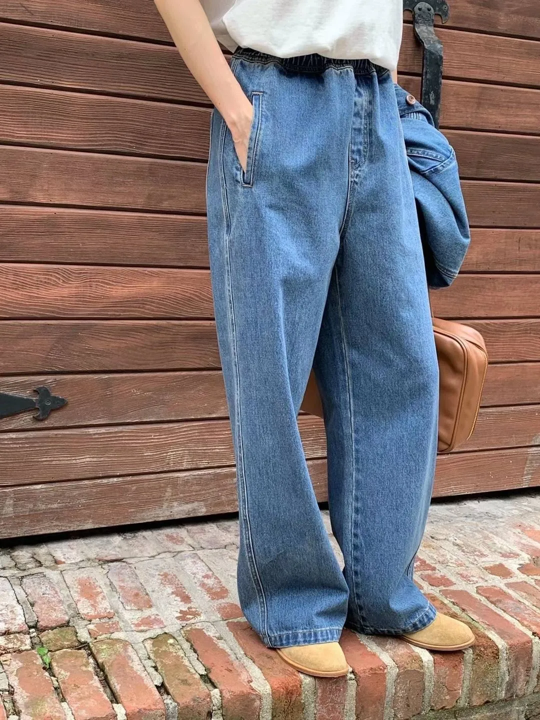 FA326腰抽繩休閒牛仔長褲 S M 官網價$1210 線上價$1180