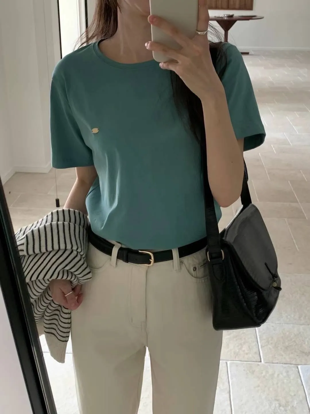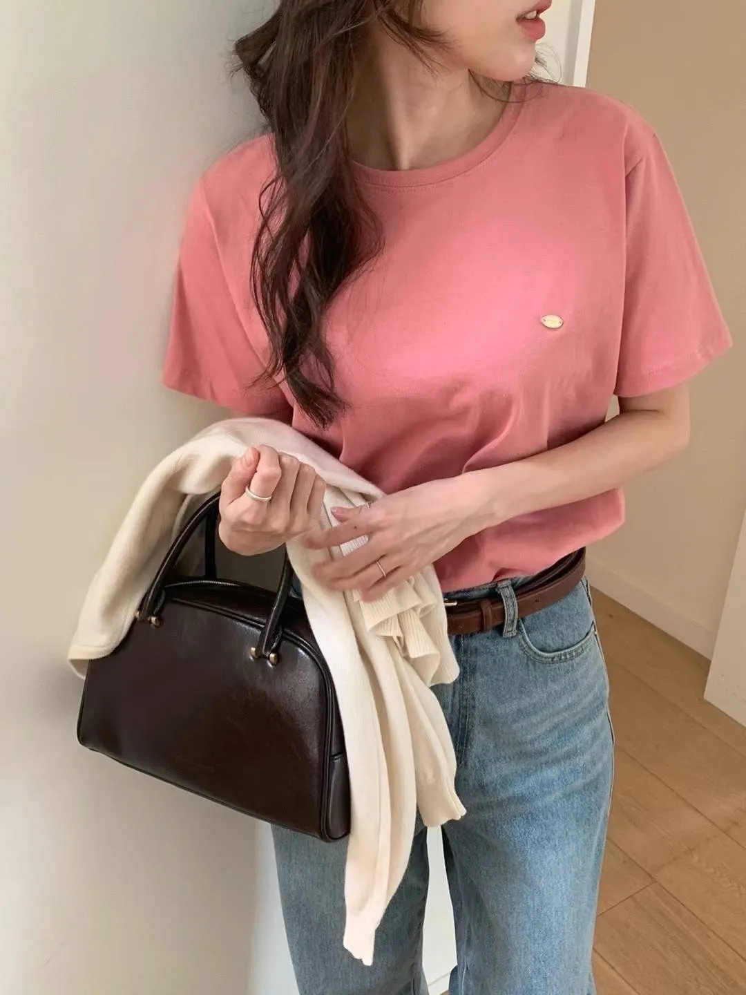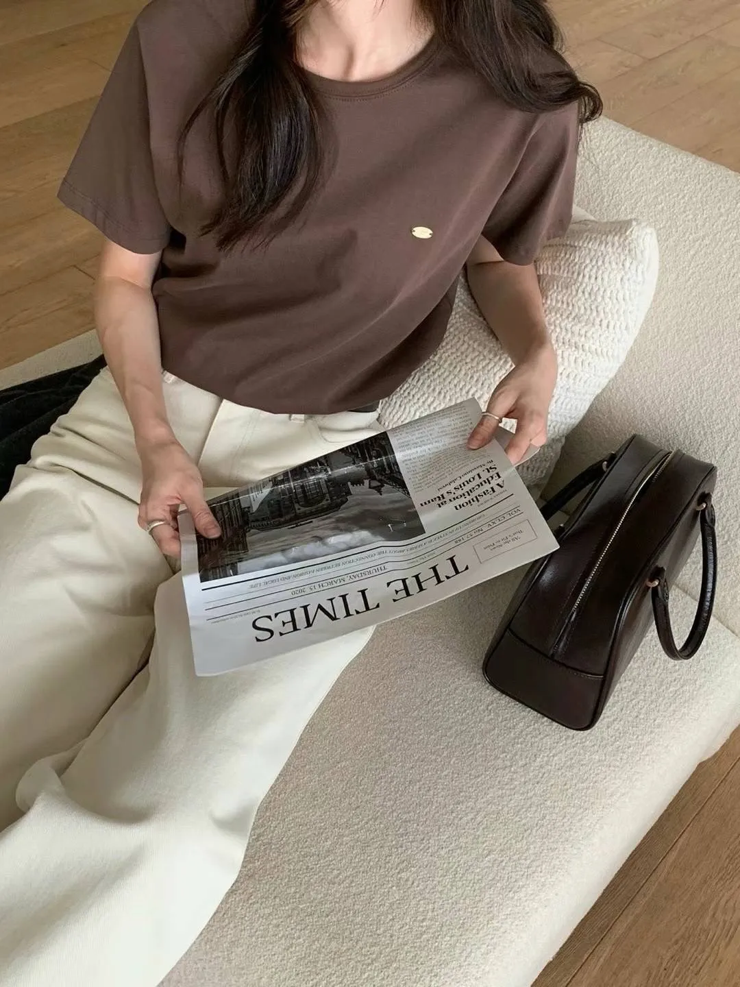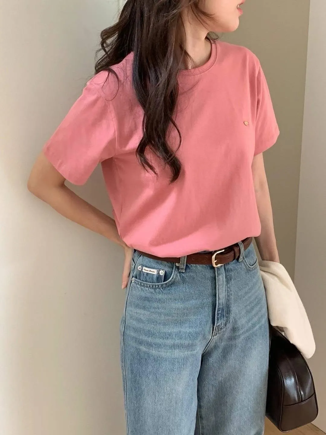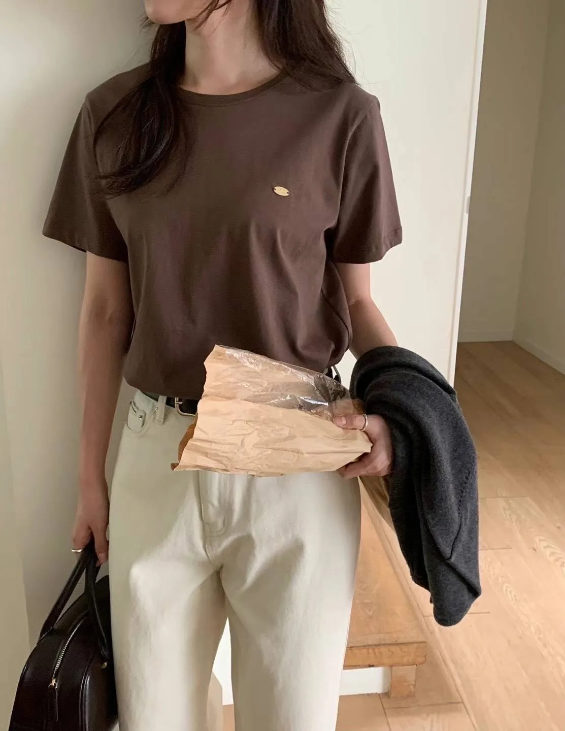FA328高級純粹小金標短袖Tshirt 粉 紅 米 白 灰 咖 黑 淺藍 墨 深藍 官網價$550線上價$520