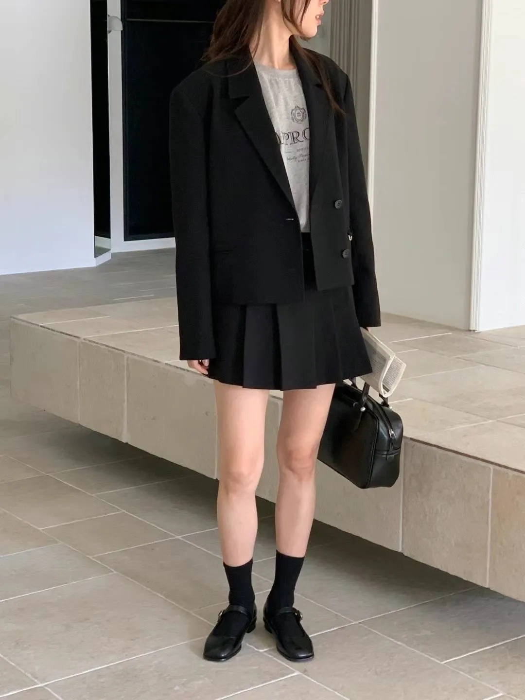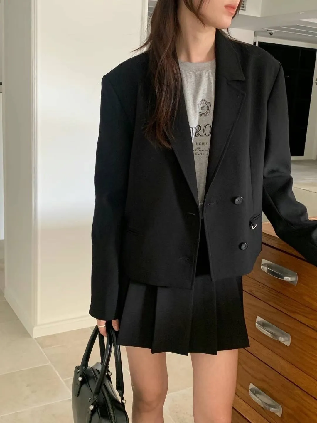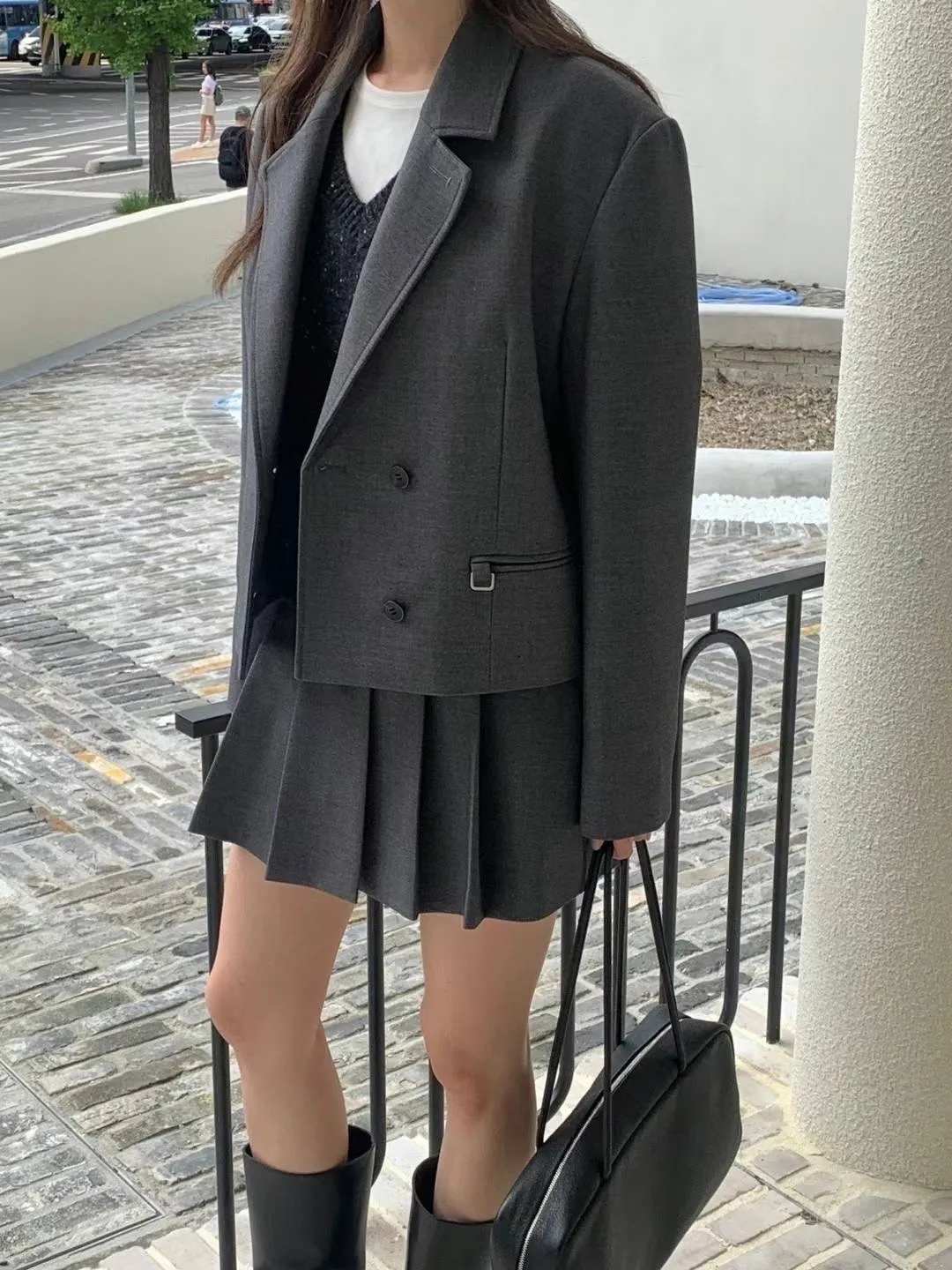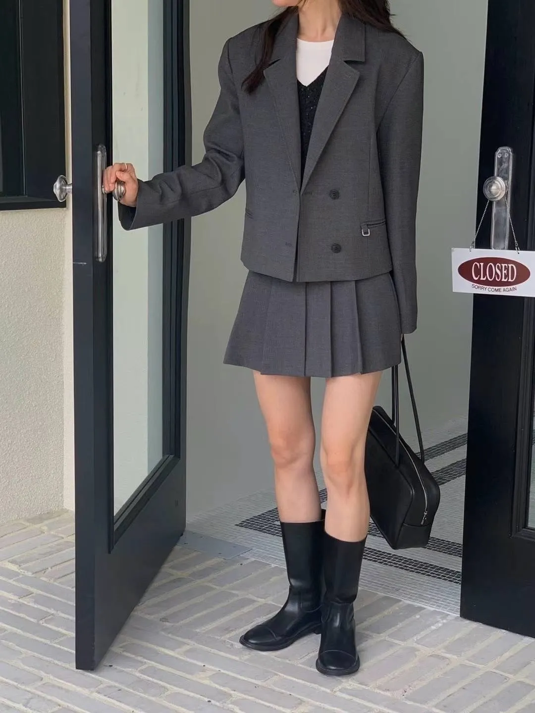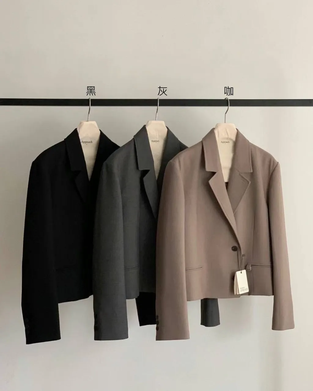 FA337套裝的短版雙釦西裝外套 灰 咖 黑 S M 官網價$2280 線上價$2250