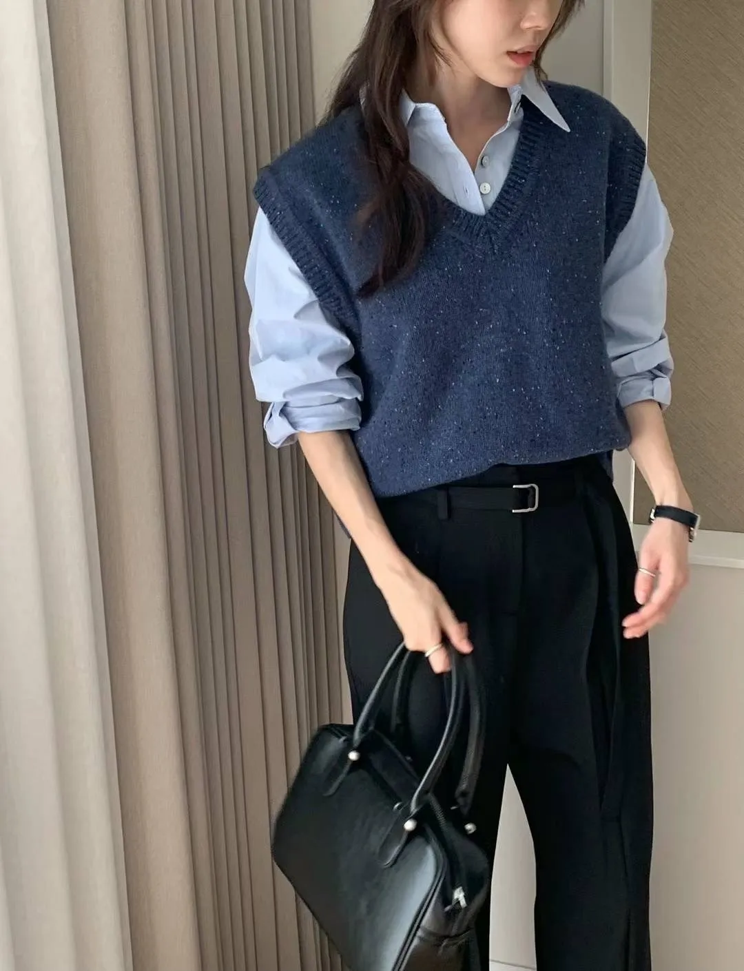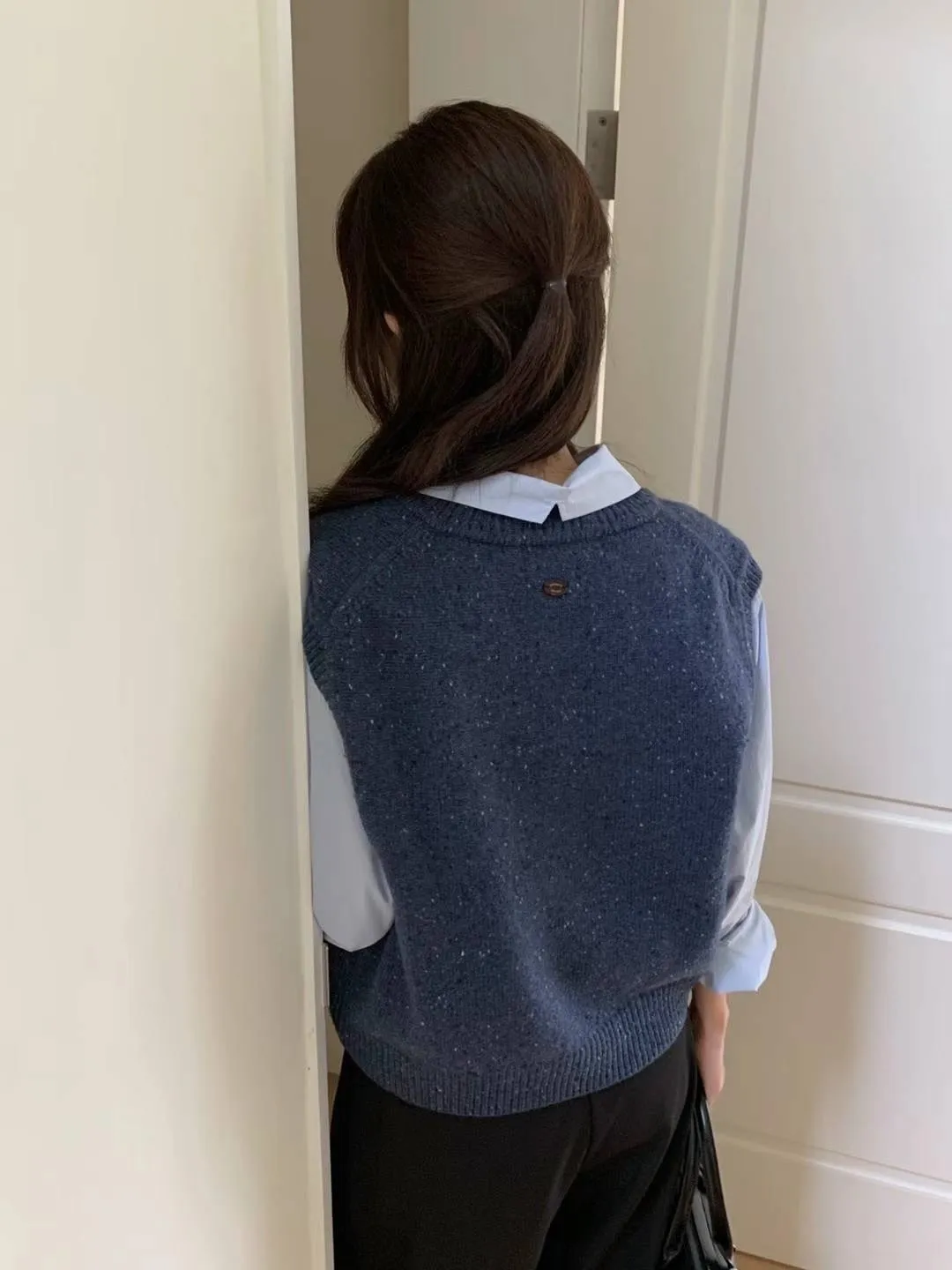 FA339混織星光雪花V領背心 藍 黑 奶茶 官網價$1190 線上價$1160
