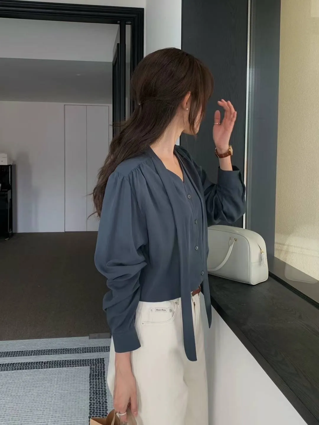 FA340天絲胸綁帶氣質上衣 白 淺藍 墨綠 官網價$1250 線上價$1220