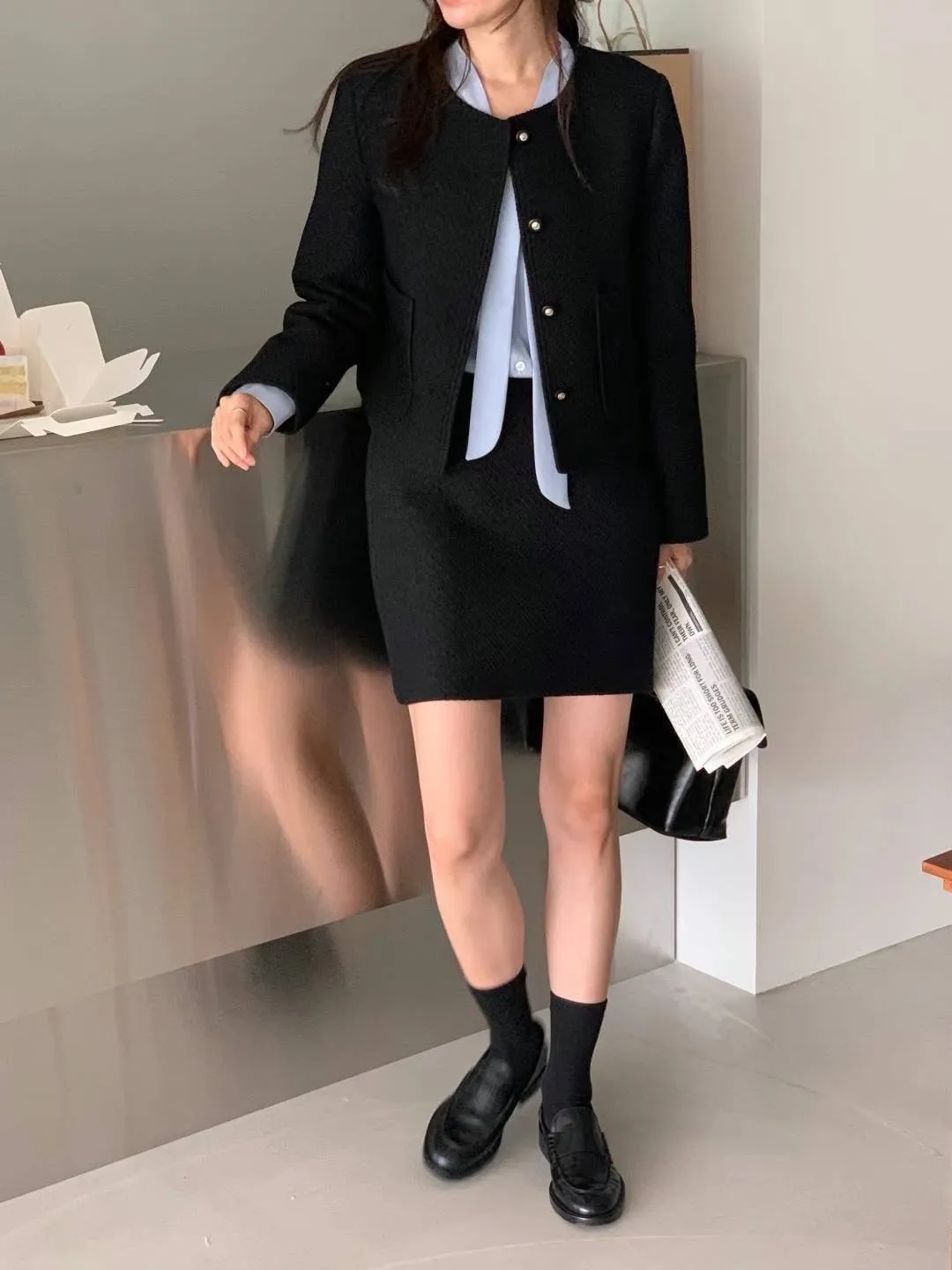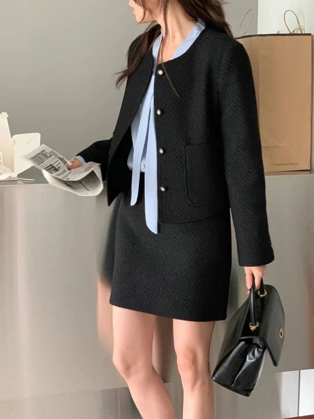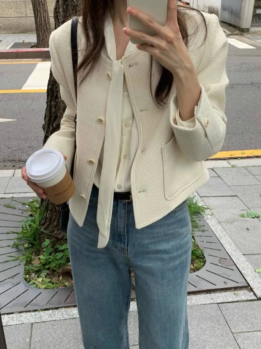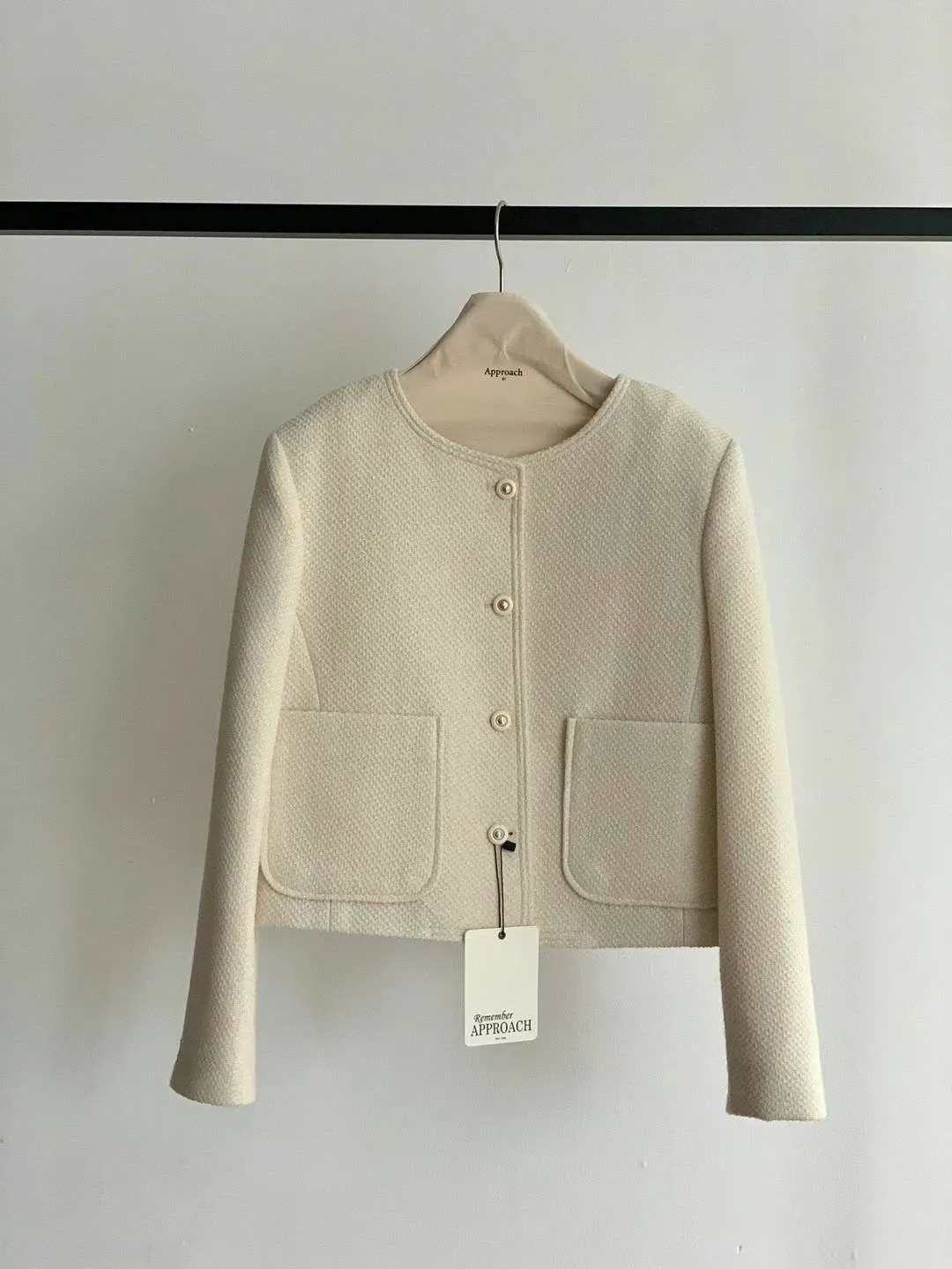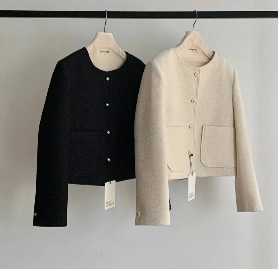 FA341雙口袋小香風外套 米 黑 官網價$2390 線上價$2360