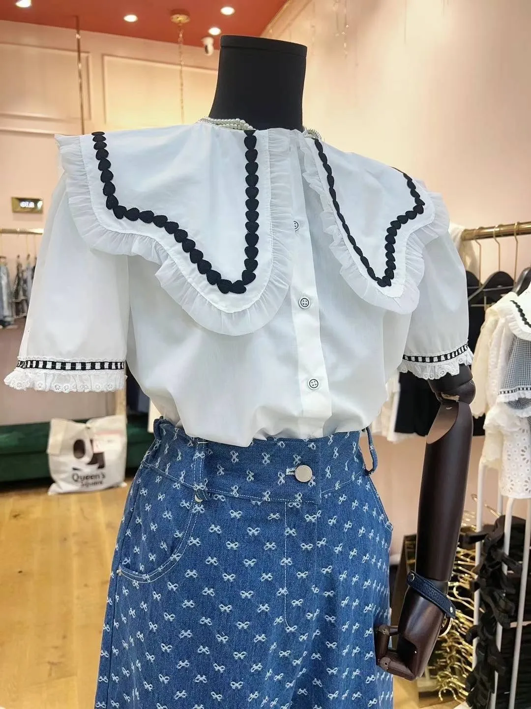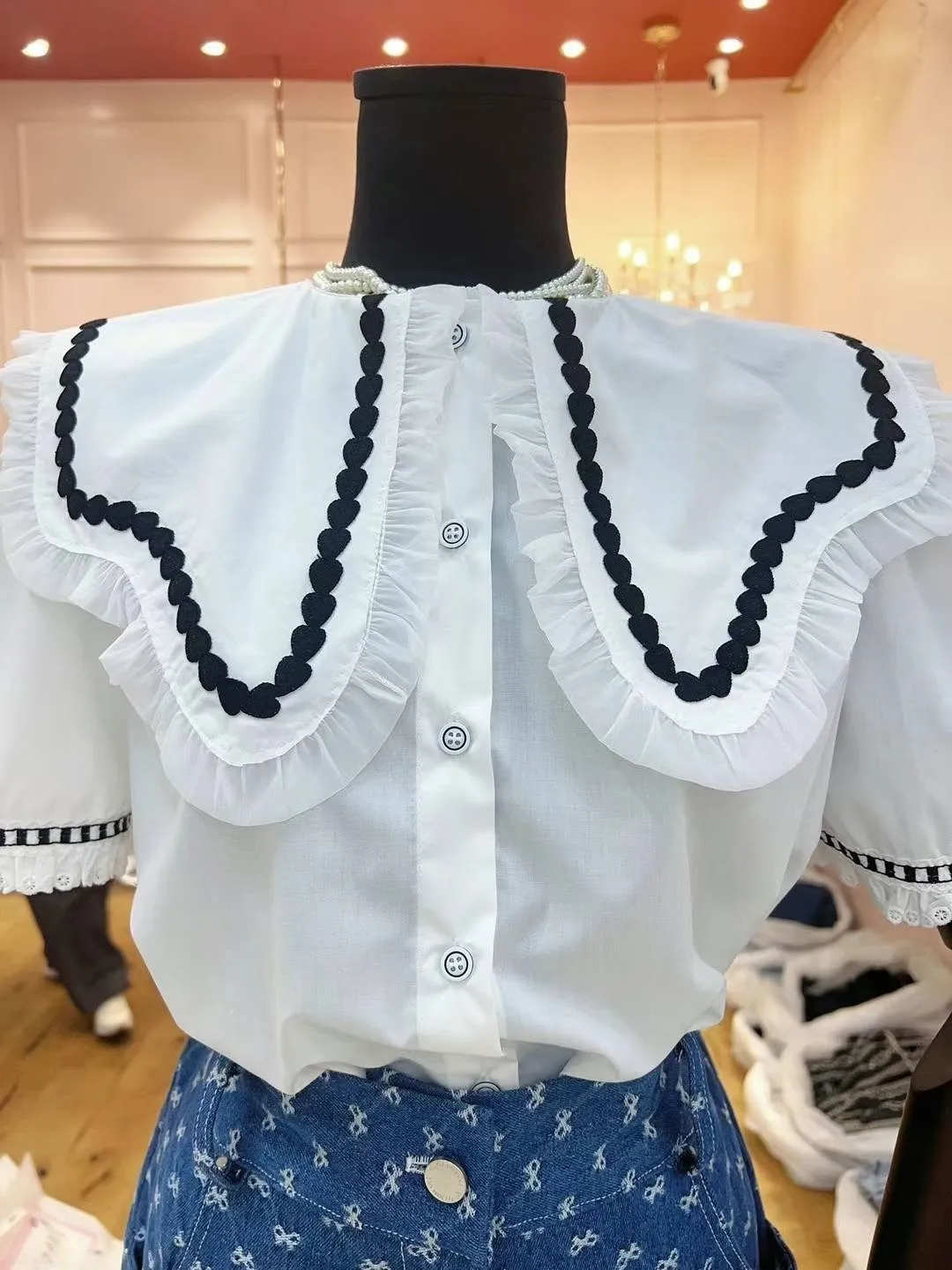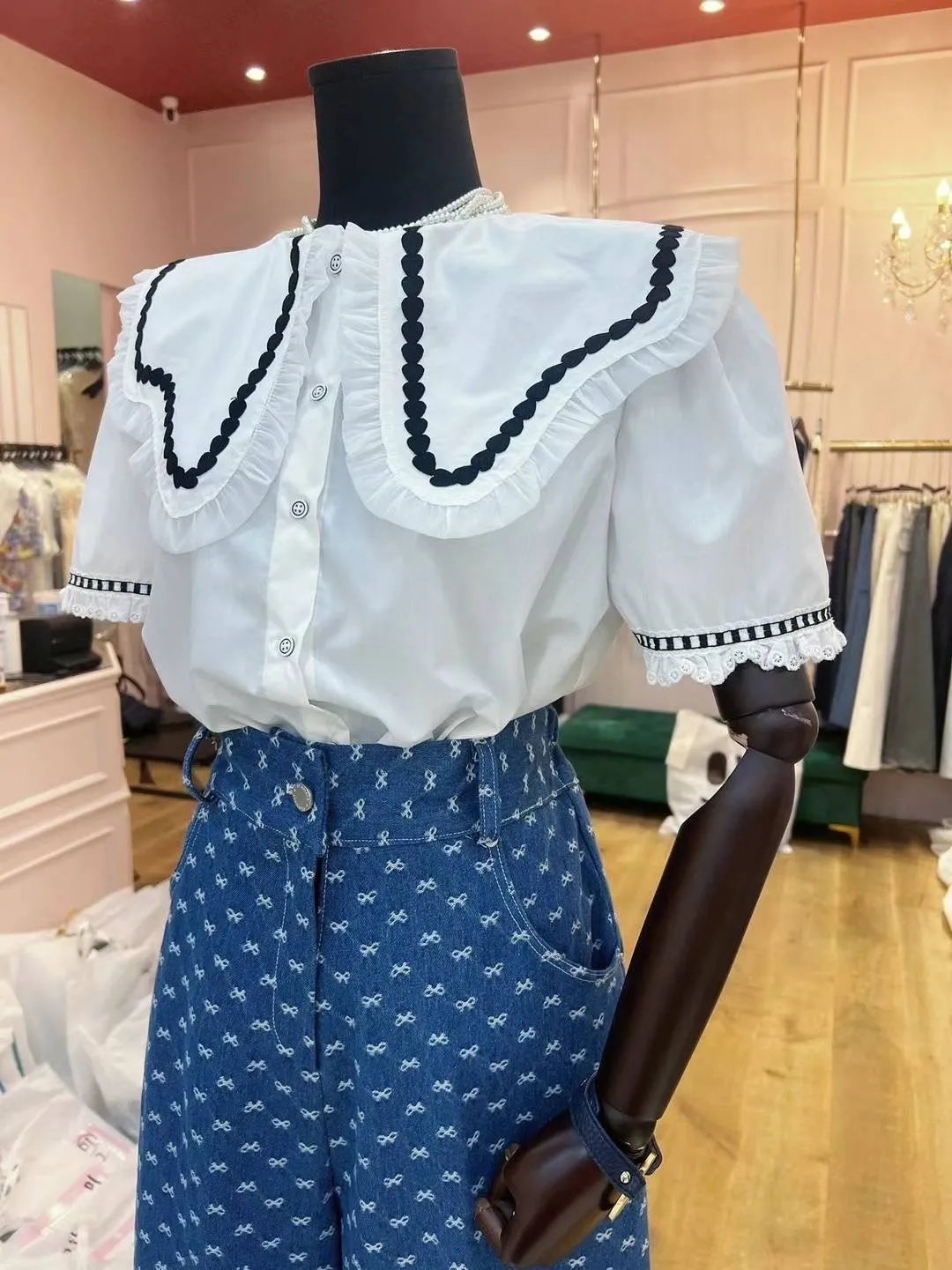聚酯 雪紡翻領 蕾絲袖口 適合台灣夏天 L號友善