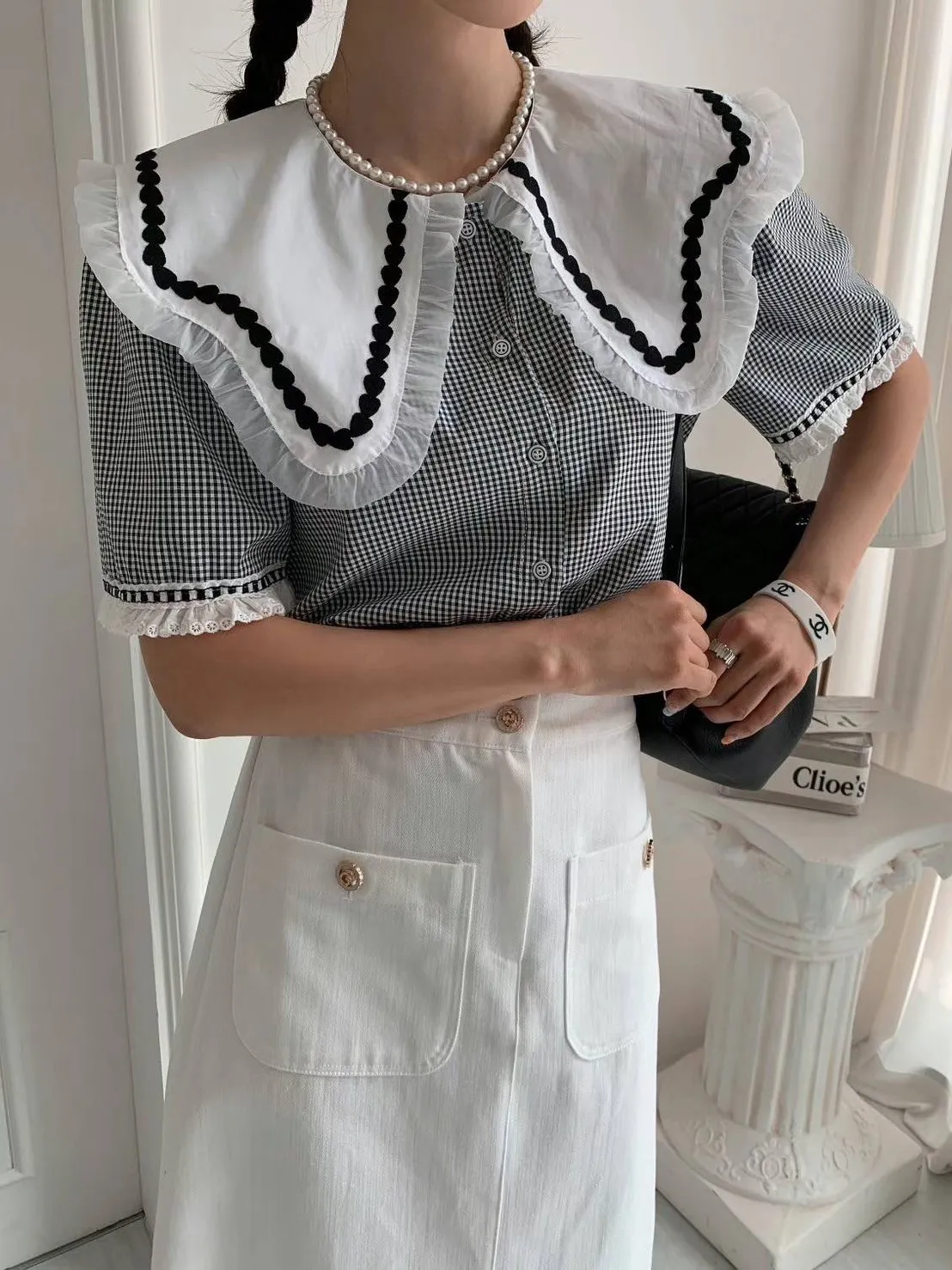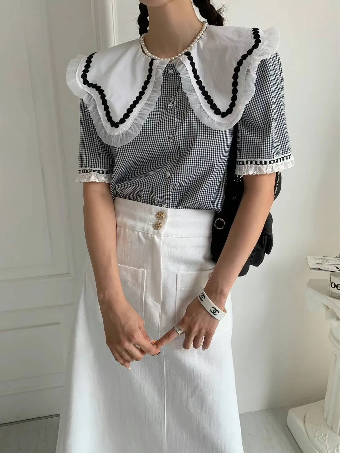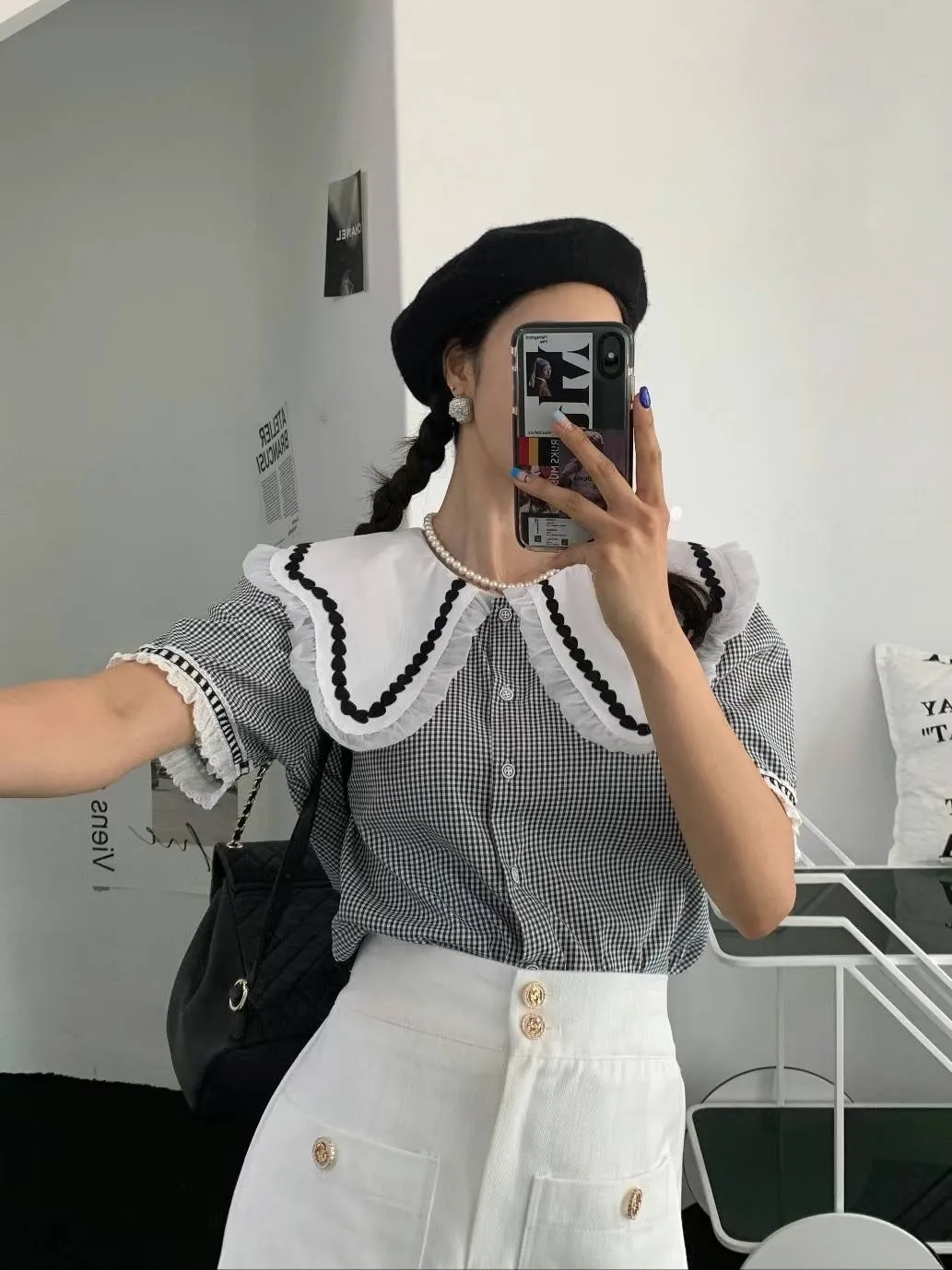 聚酯 雪紡翻領 蕾絲袖口 適合台灣夏天 L號友善
