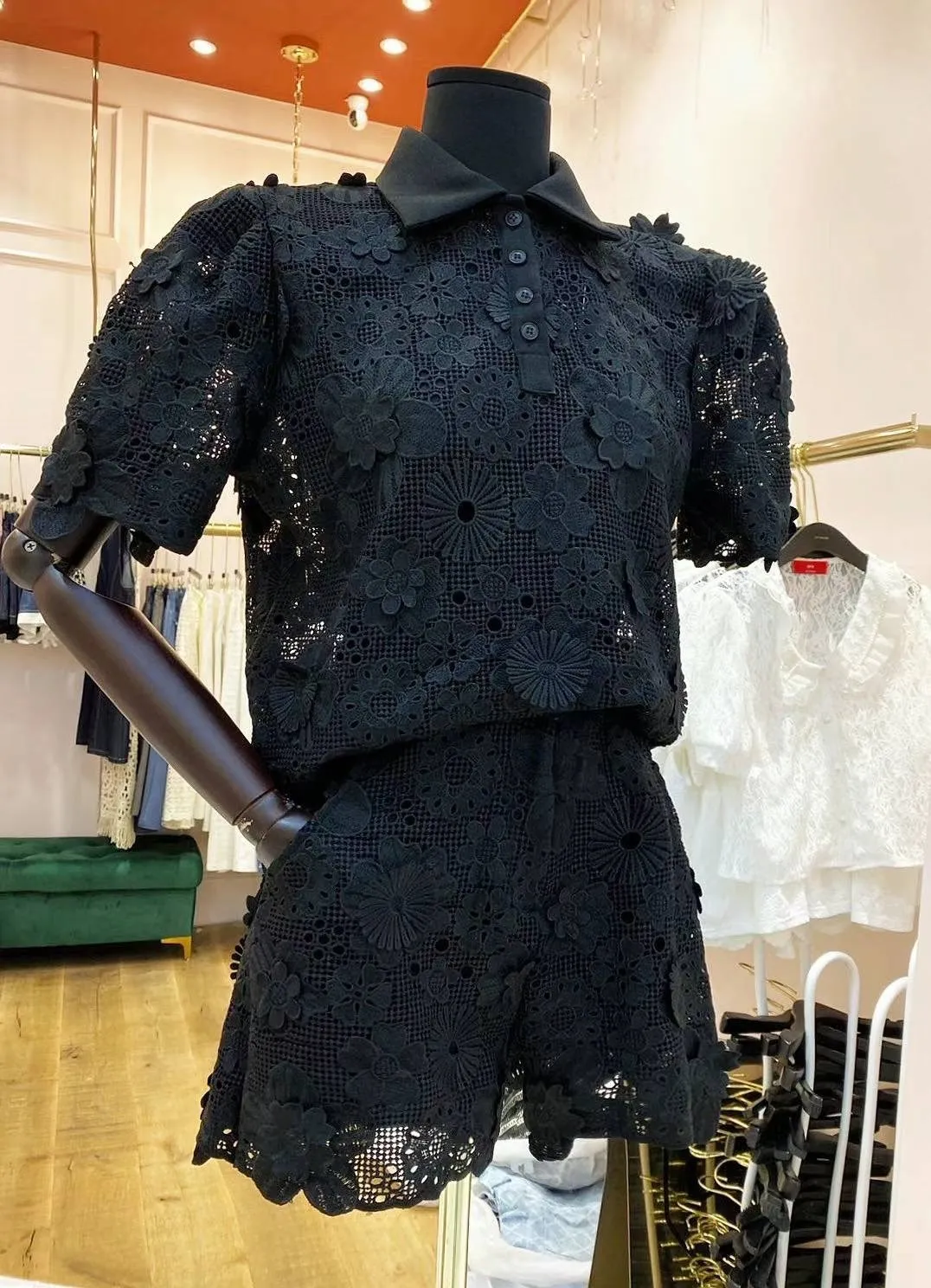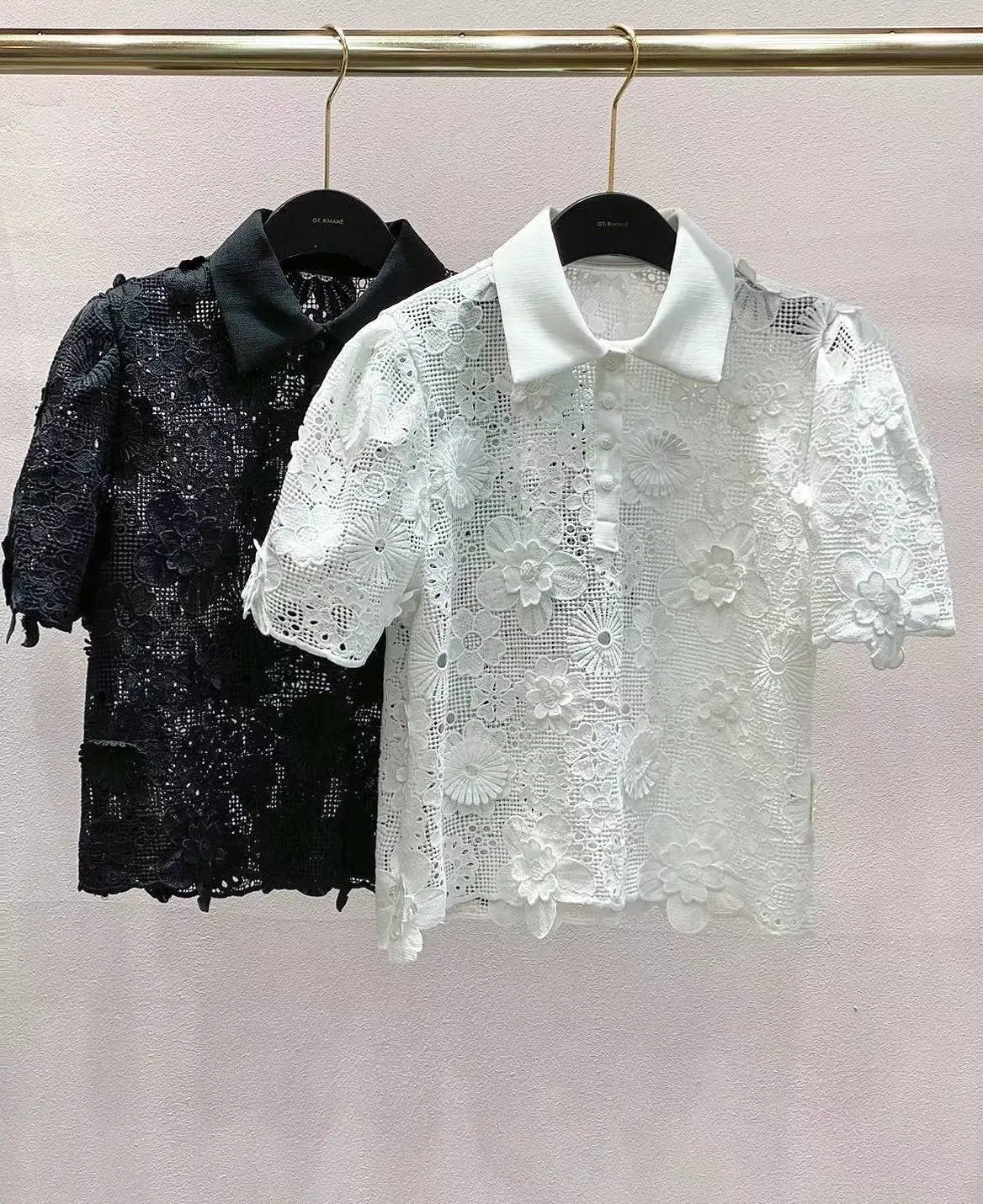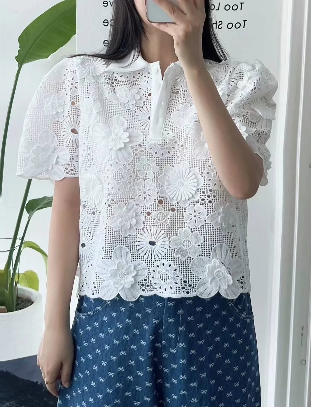 棉蕾絲 透光質感 可愛翻領 立體花朵不刺癢