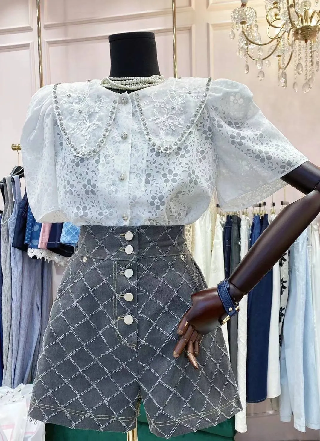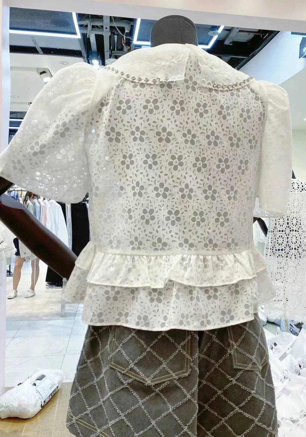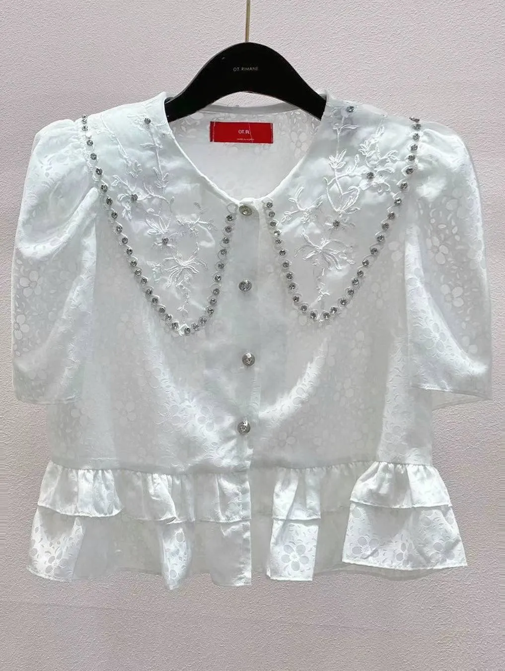 聚酯+歐根紗 精緻透光面料 鑲鑽美領 極薄面料 有墊肩