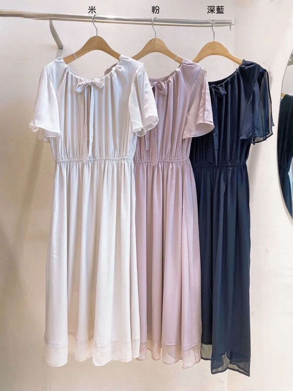 雪紡 腰有鬆緊 飄逸質感 琦琦口中的黑 是很深的深藍 適合台灣天氣