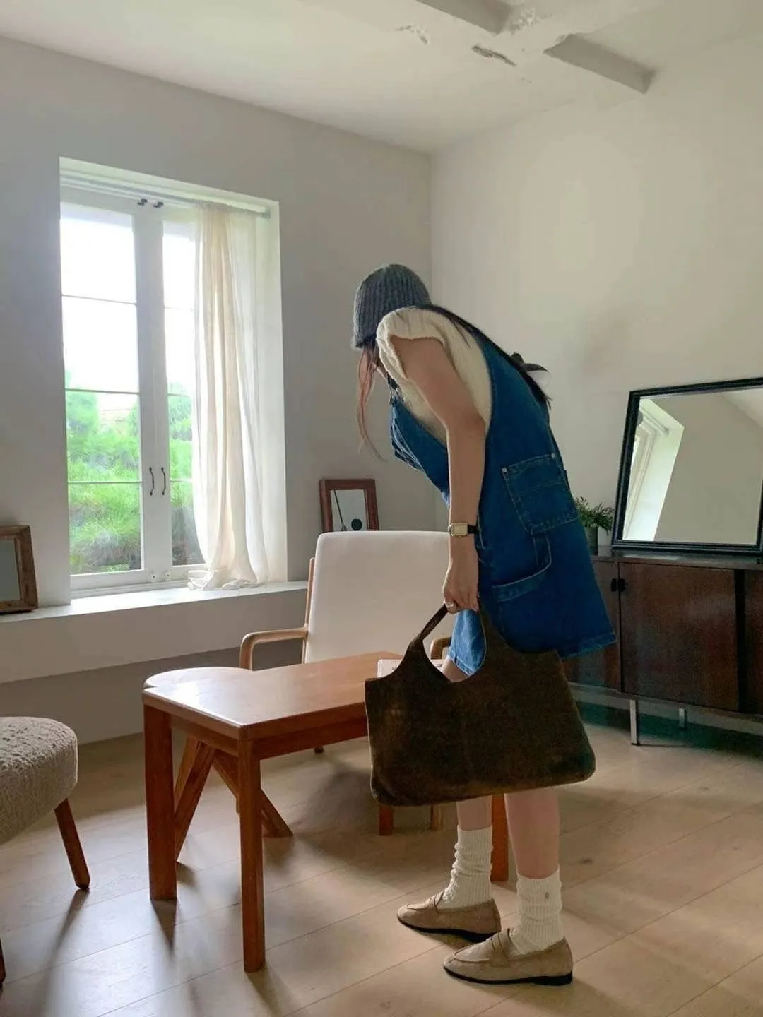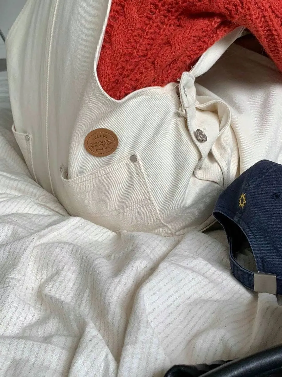 棉 滑順濕潤 肩帶可調 側腰三釦 有口袋 背後皮革標