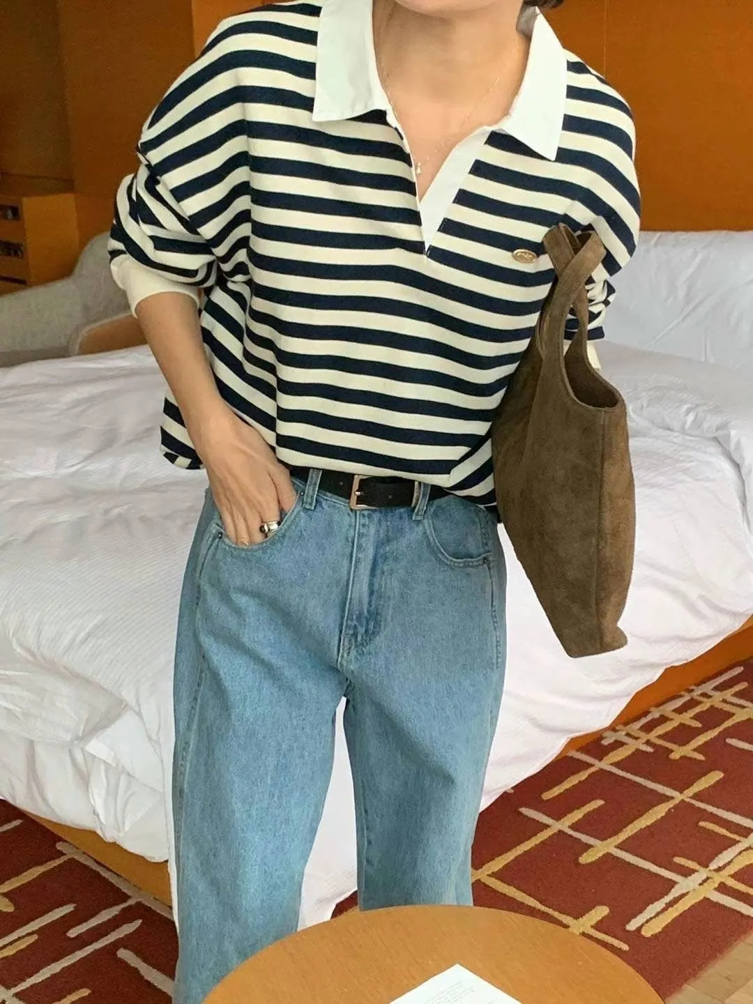 以下條紋藍穿搭👇🏻