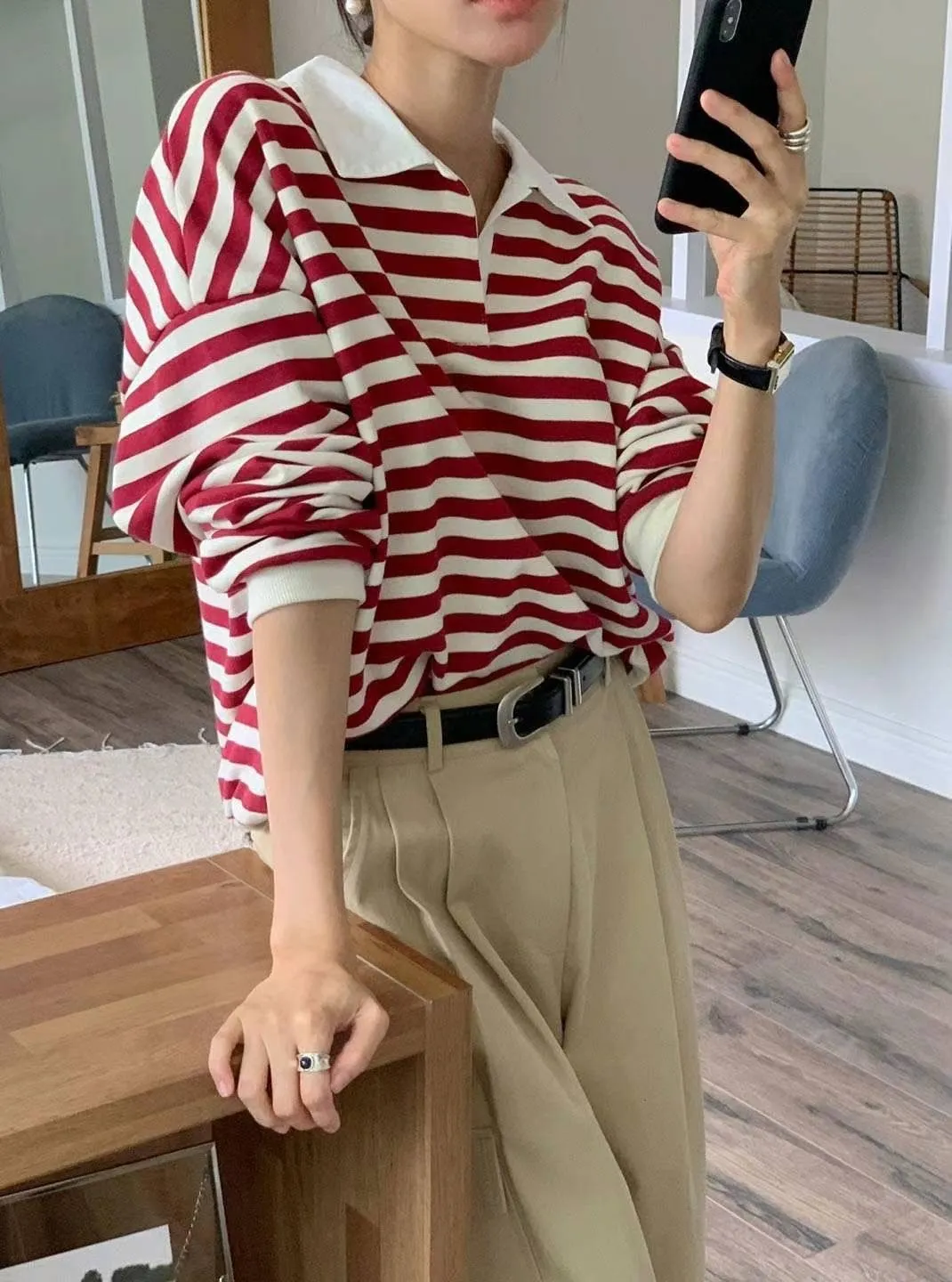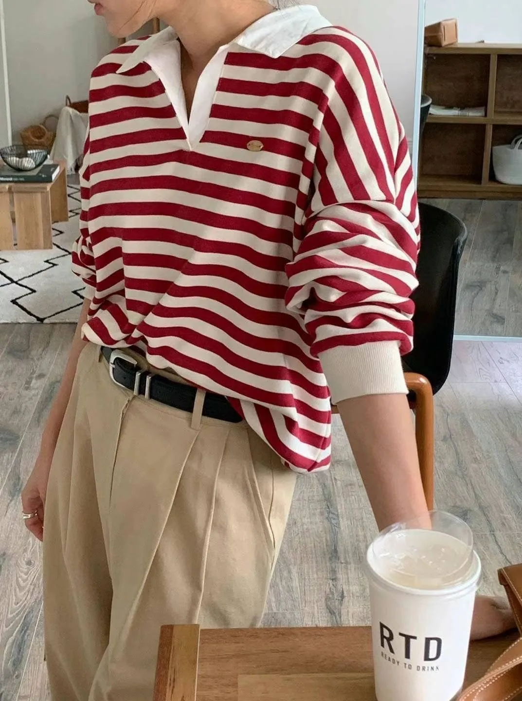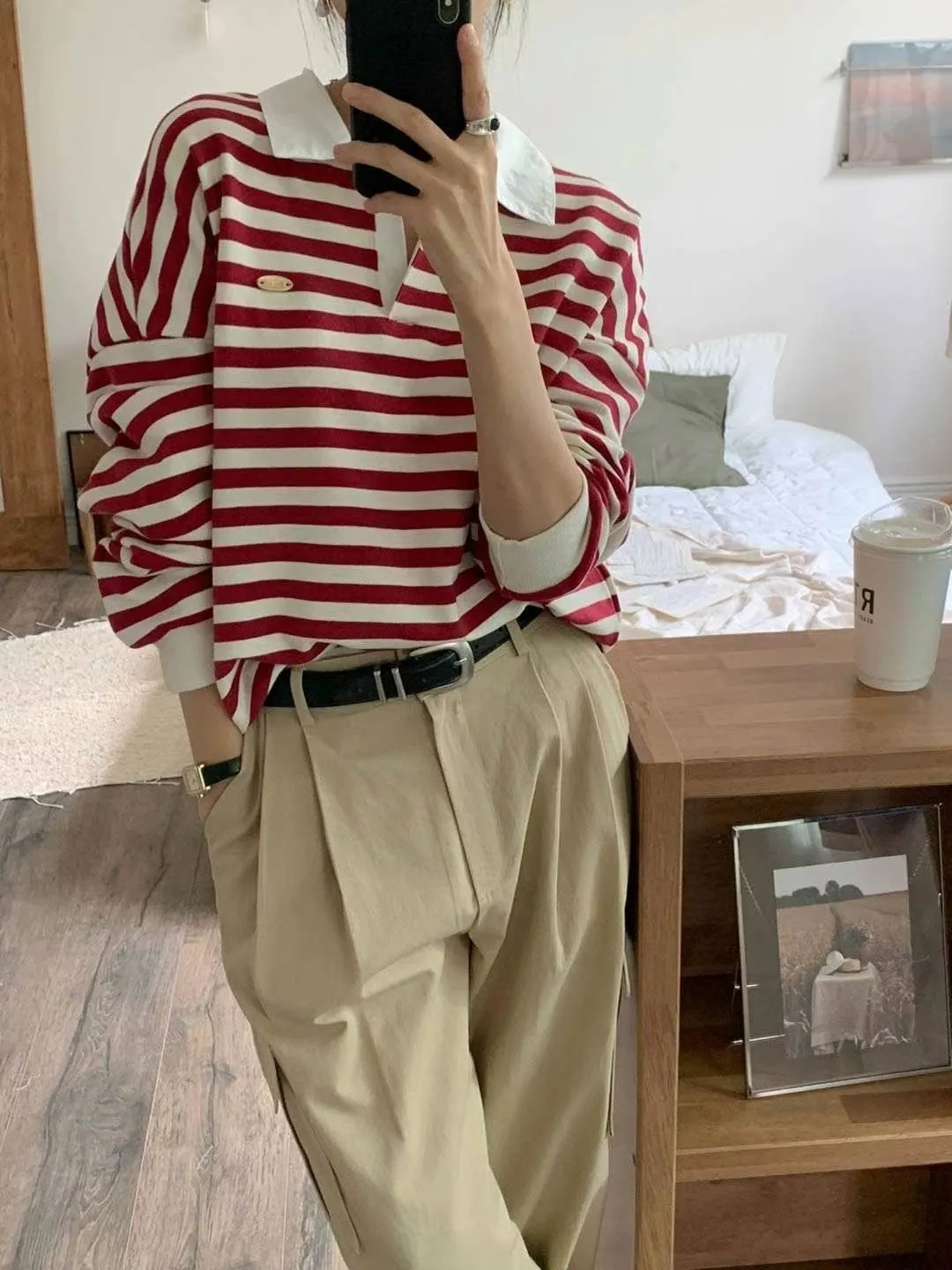 以下條紋紅穿搭👇🏻
