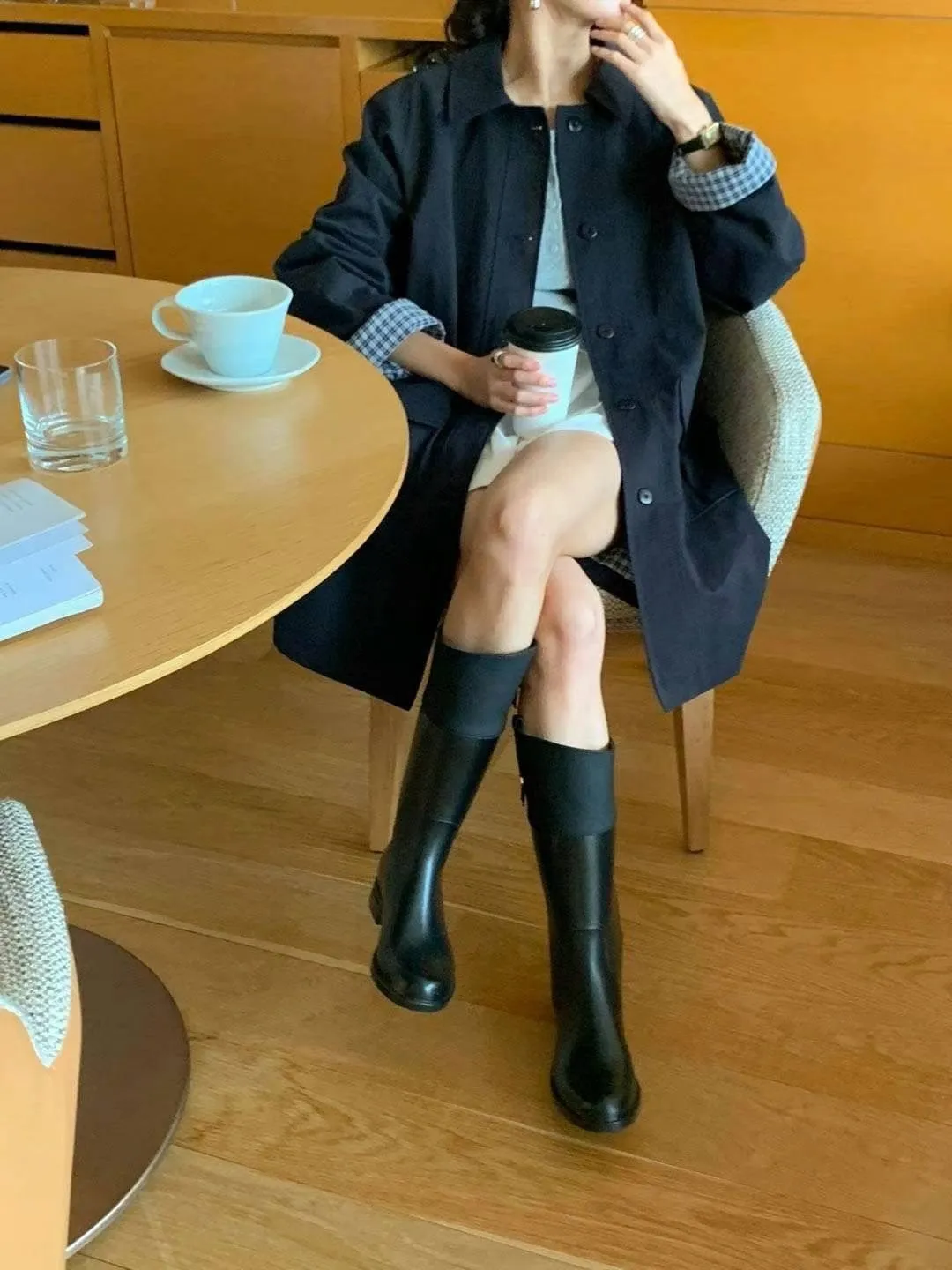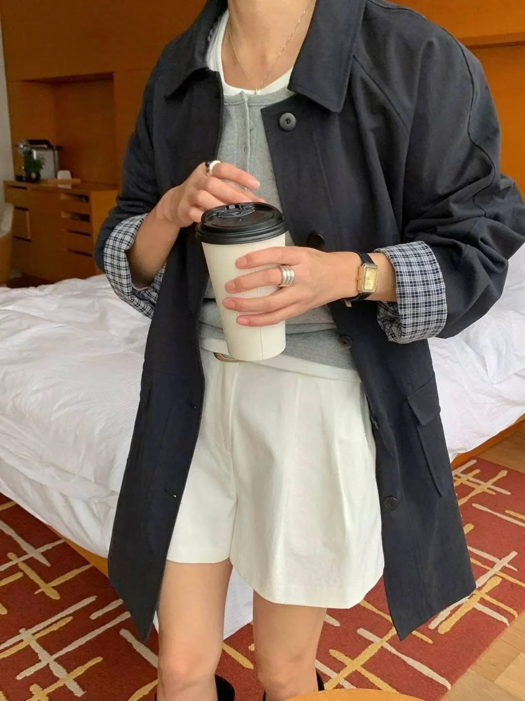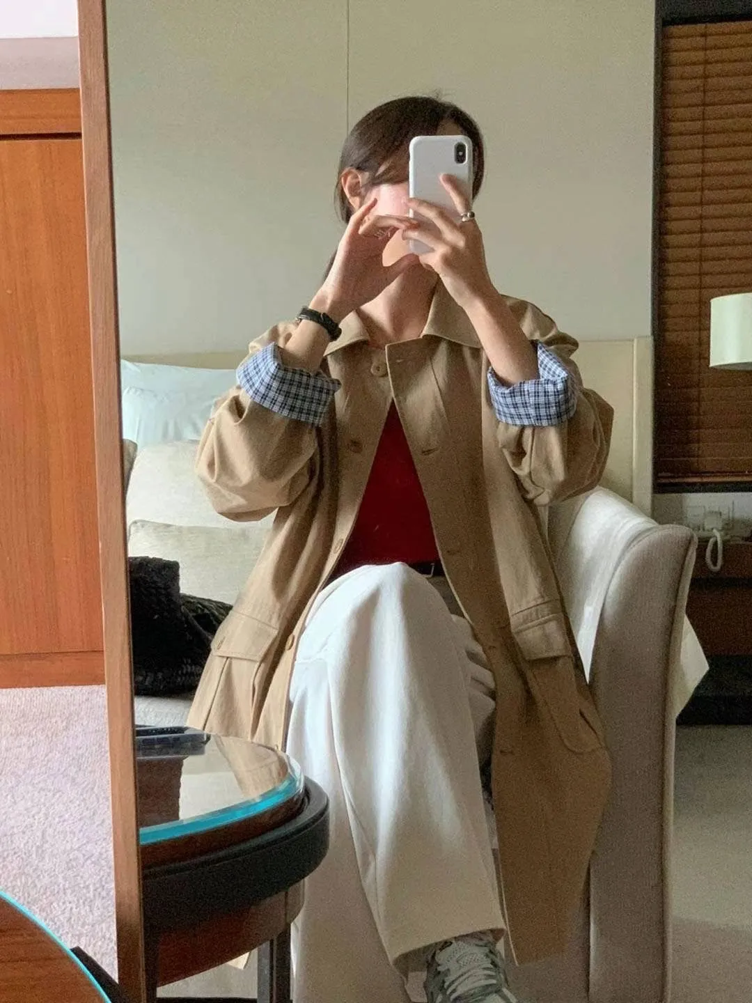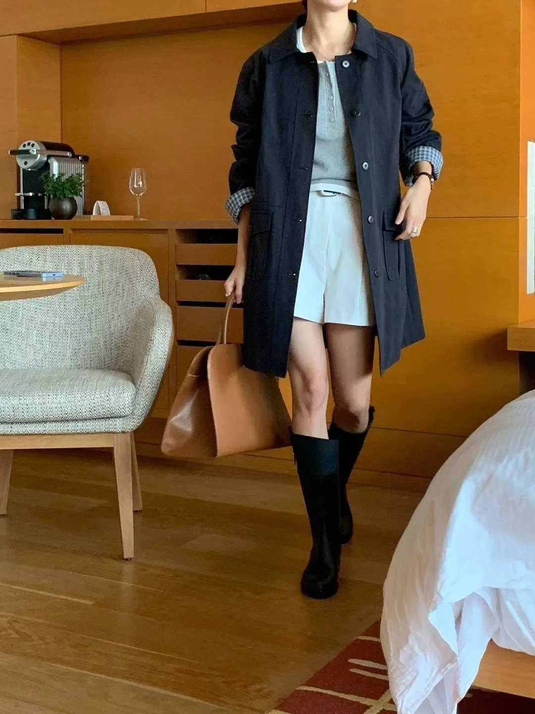 棉 格紋內裡 手袖可外翻設計 有口袋 輕盈不厚重 秋天款
