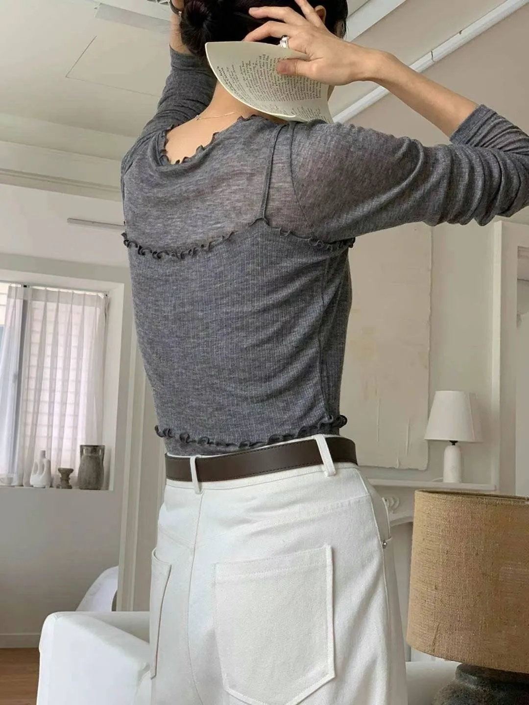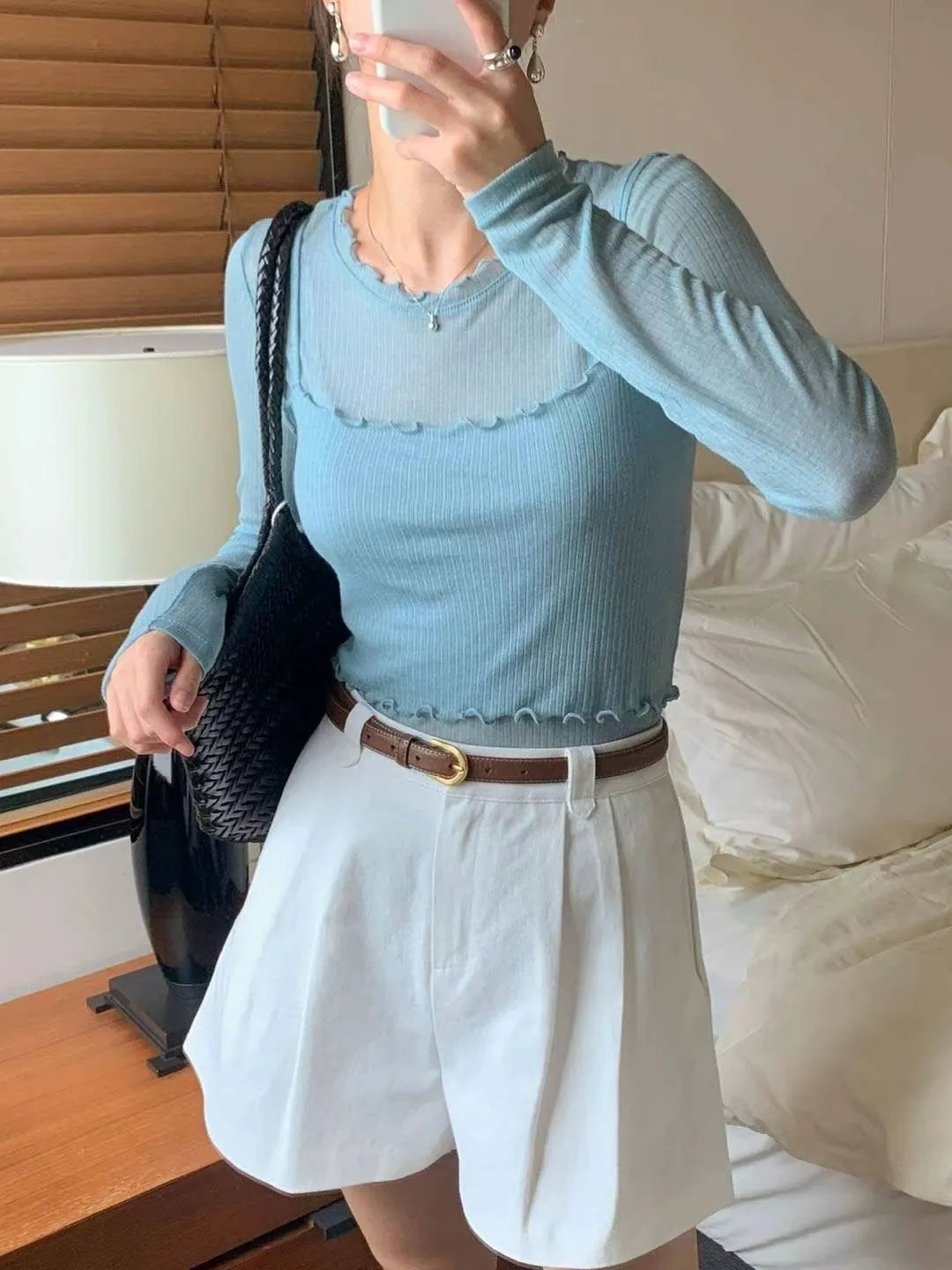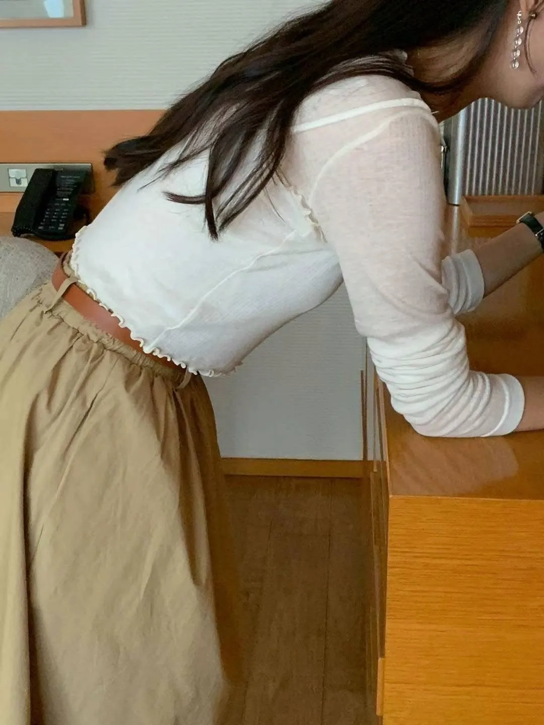 棉+彈力,薄款輕盈 有彈性 米色微透 兩件是可分開的存在