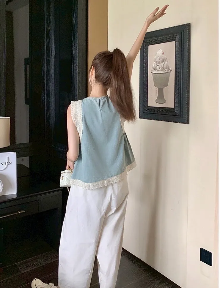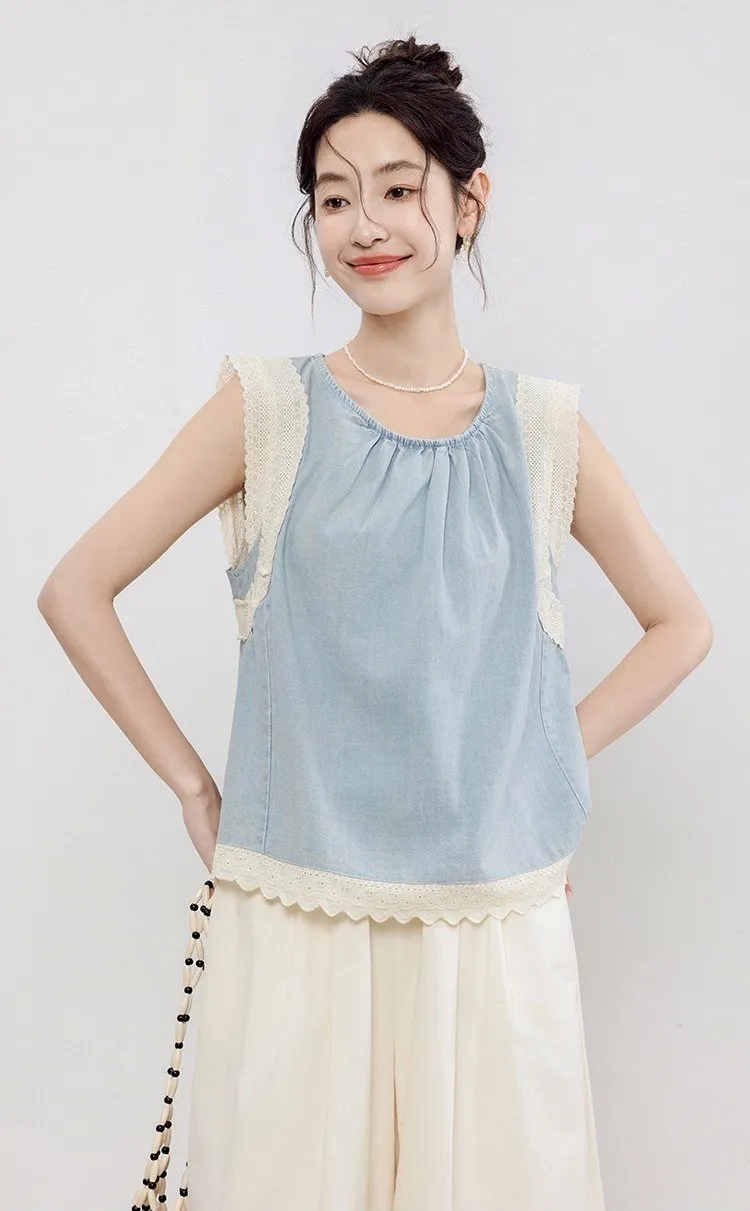 棉 滾邊棉蕾絲 袖口舒適 胸前微皺