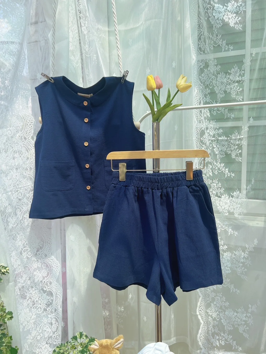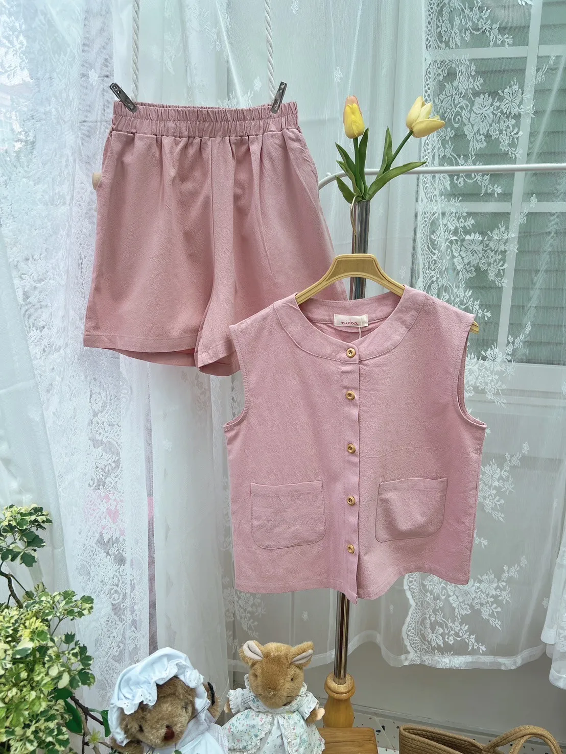 棉+亞麻 材質舒適透氣 釦子穿脫 全腰鬆緊有口袋 夏天合適