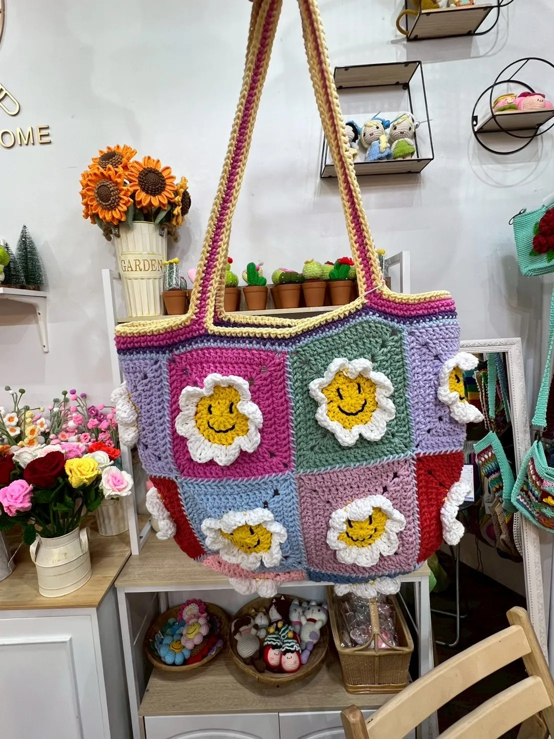 FC106笑臉花彩色棋盤格手工包包 官網價$880 永恆甜甜價$850