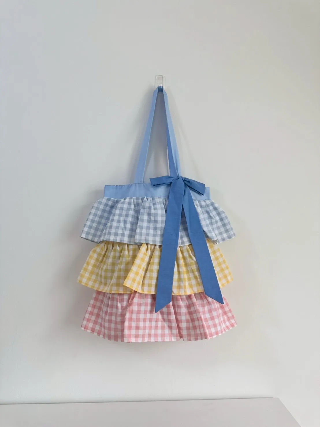 A=藍蝴蝶結+藍黃粉格,B=藍蝴蝶結+藍藍藍裙擺 32*40公分