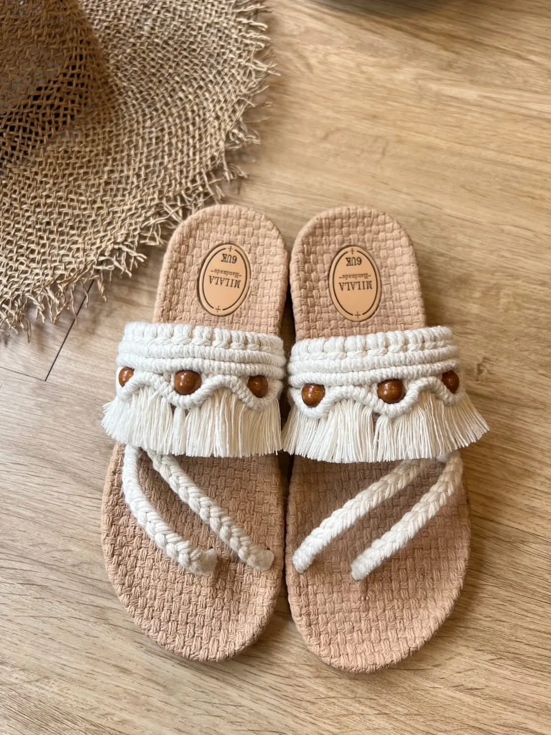 FC182很美珠珠流蘇雙斜編織鞋 米 黃 咖 深藍 淺藍 綠 粉 黑 5 6 7 8 官網價$949 永恆甜甜價$899