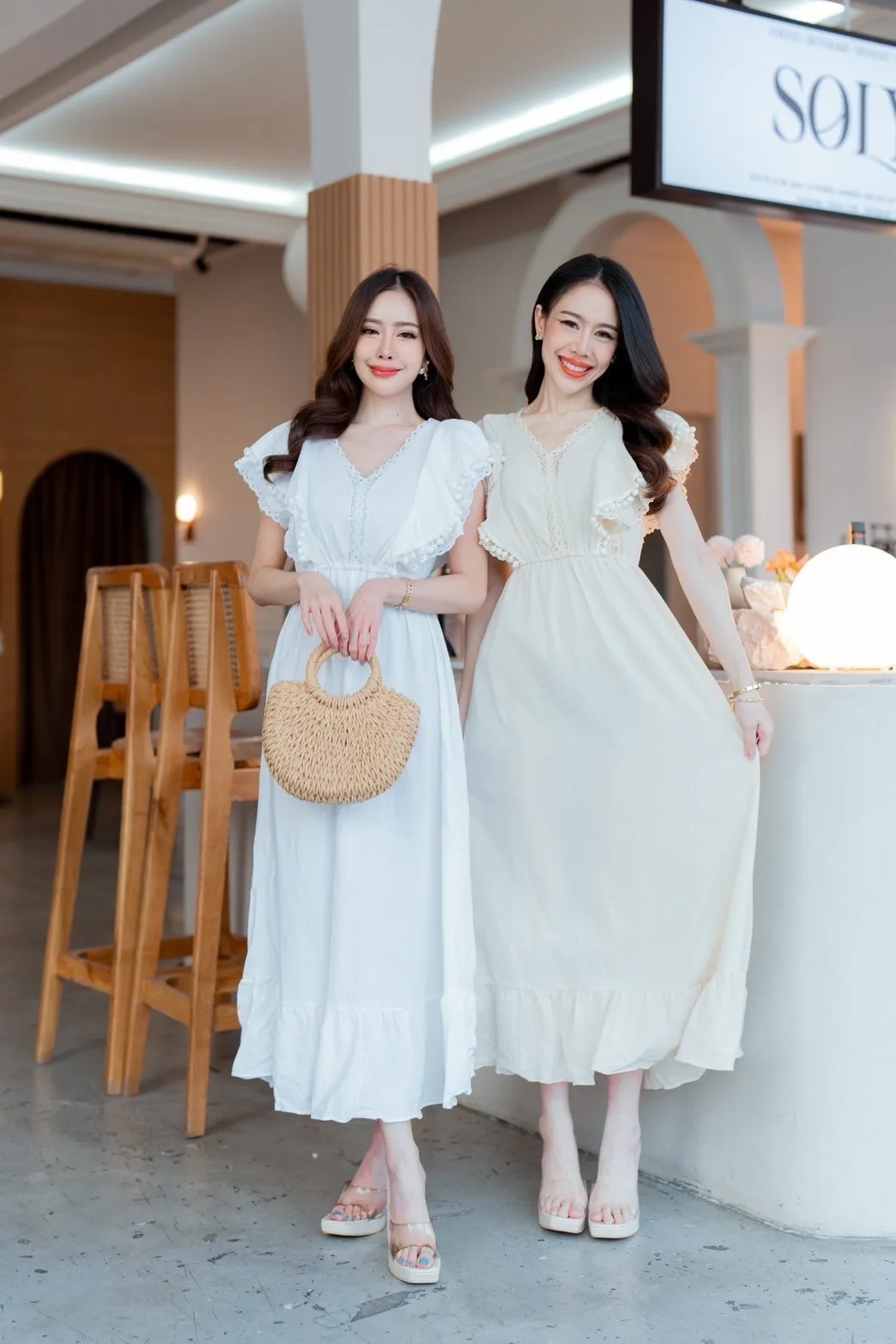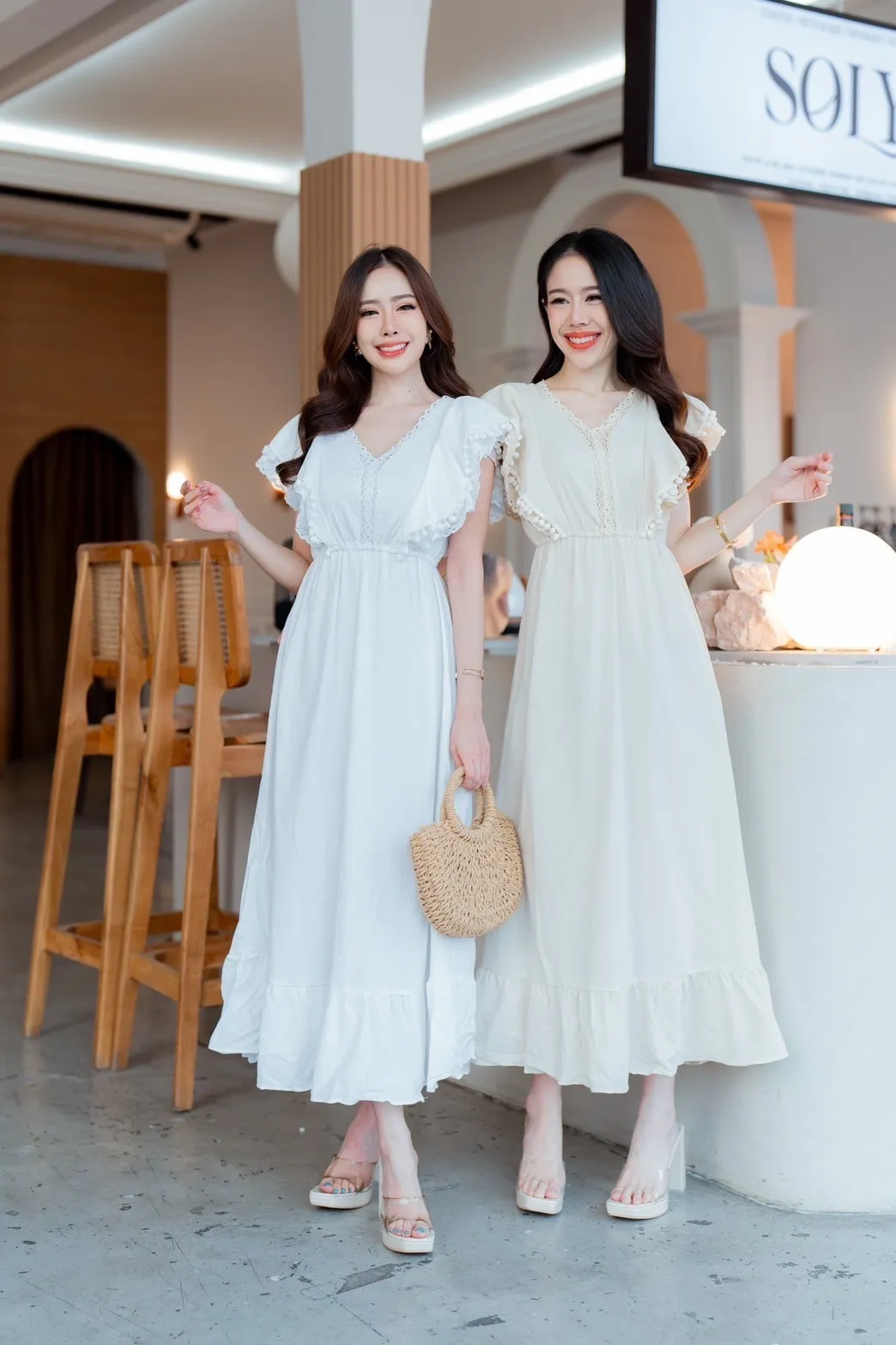 FC242度假蕾絲V領洋裝 白 米 綠 官網價$690 線上價$660 棉 蕾絲 透氣舒適 無內裡不透 L號友善 顯瘦藏腰腹肉 白色現場無實體,直接想像力代購 肩寬32胸寬52臂寬23腰寬22-48臀寬63全長122
