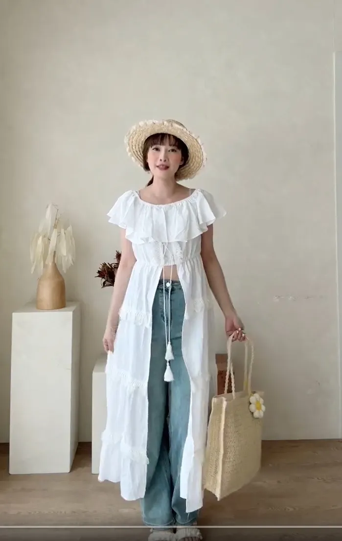 FC243波西米亞度假風女神罩衫 白 米 官網價$650 線上價$620