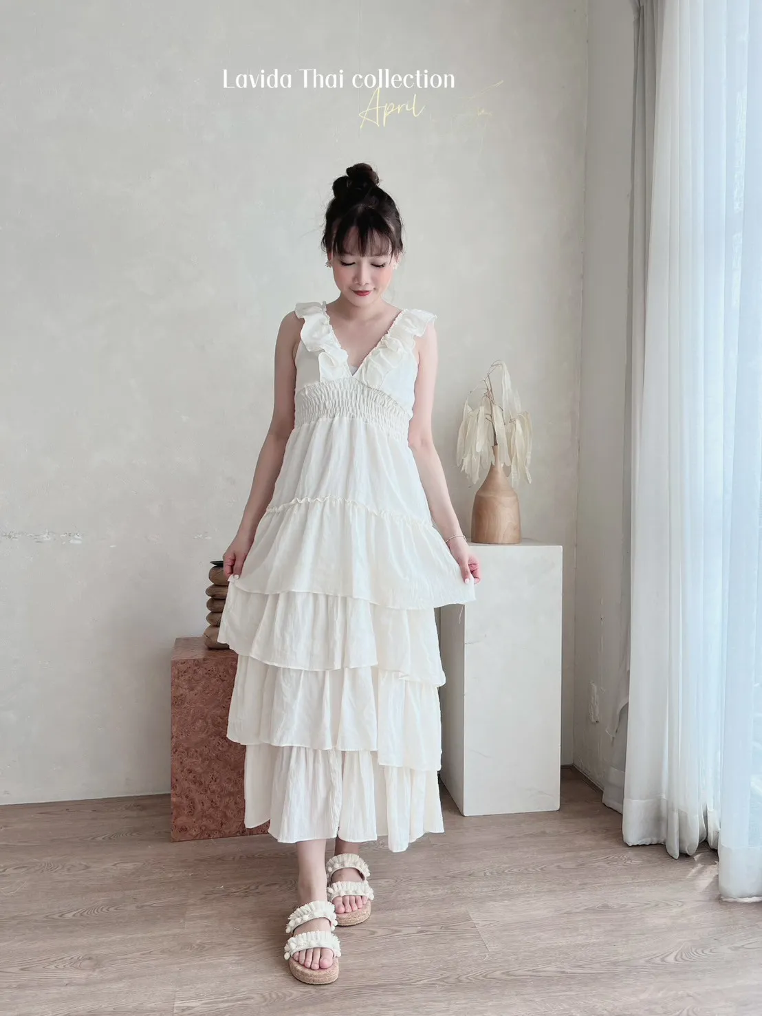 FC259美背綁帶女神V領洋裝(米色長版ten) 官網價$650 線上價$620