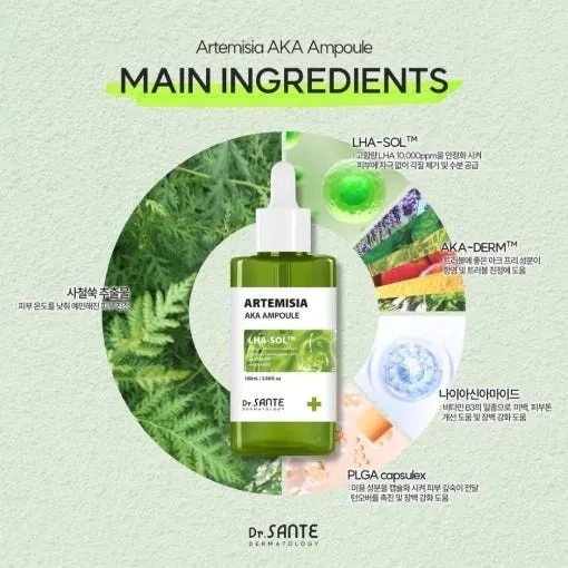 AKA DERM : 核心專利成分,有助於控制皮脂分泌,含67%的艾草萃取,以其鎮靜和減少泛紅的功效而聞名,有助於舒緩受刺激的皮膚。