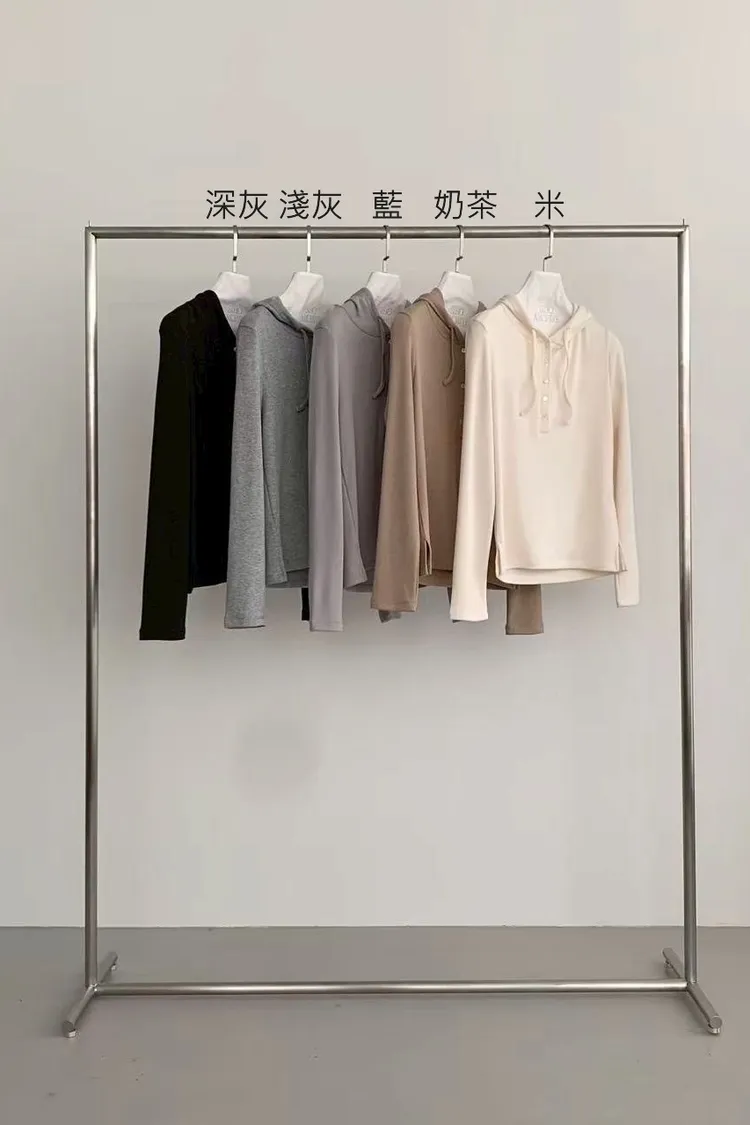 棉+聚酯+彈力 內磨毛 連帽設計 胸前排釦 側面開叉