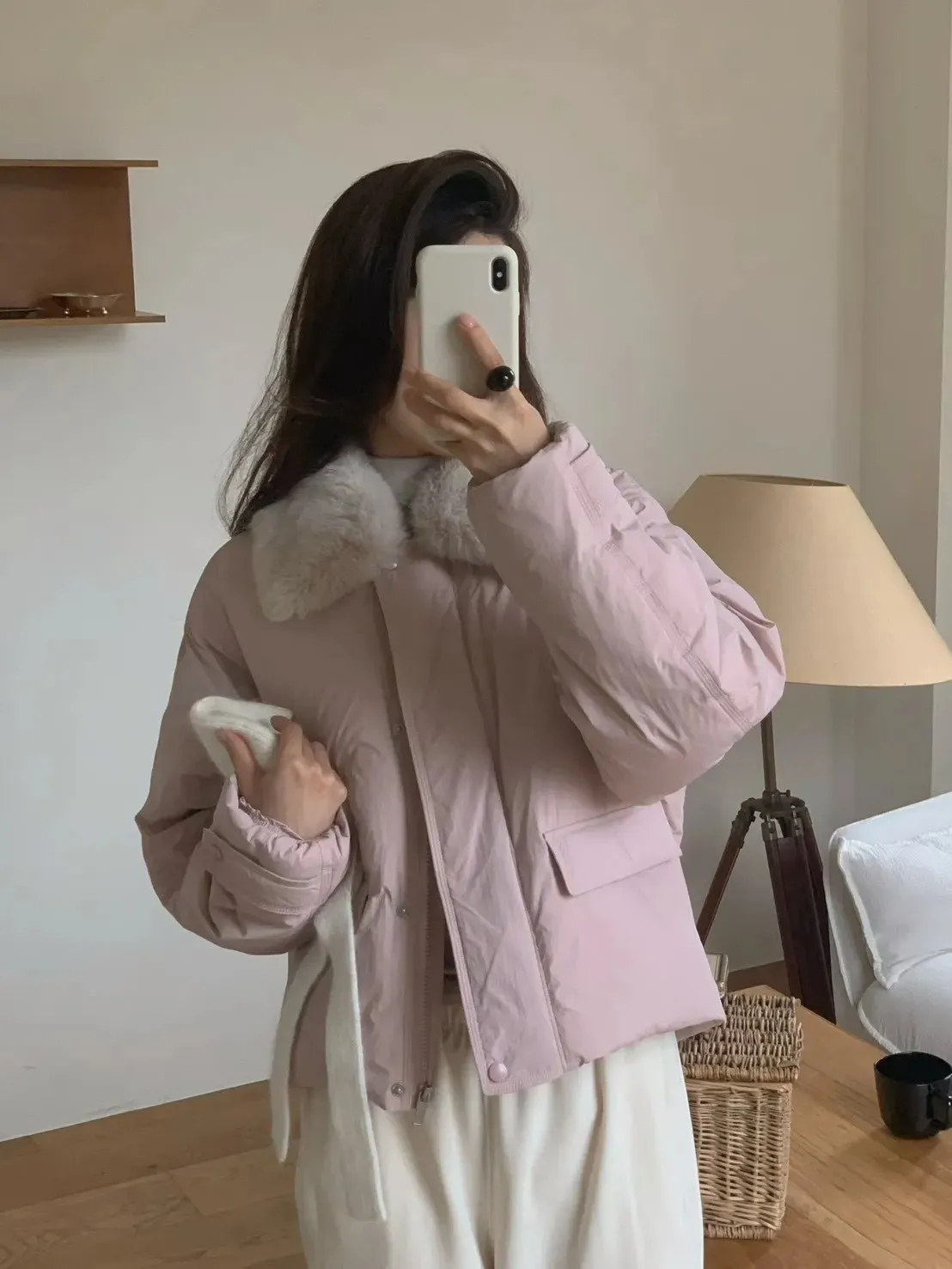 鴨絨80%+羽毛20% 外層尼龍 拉鍊釦穿脫 有口袋 尺寸友善 毛毛領可拆